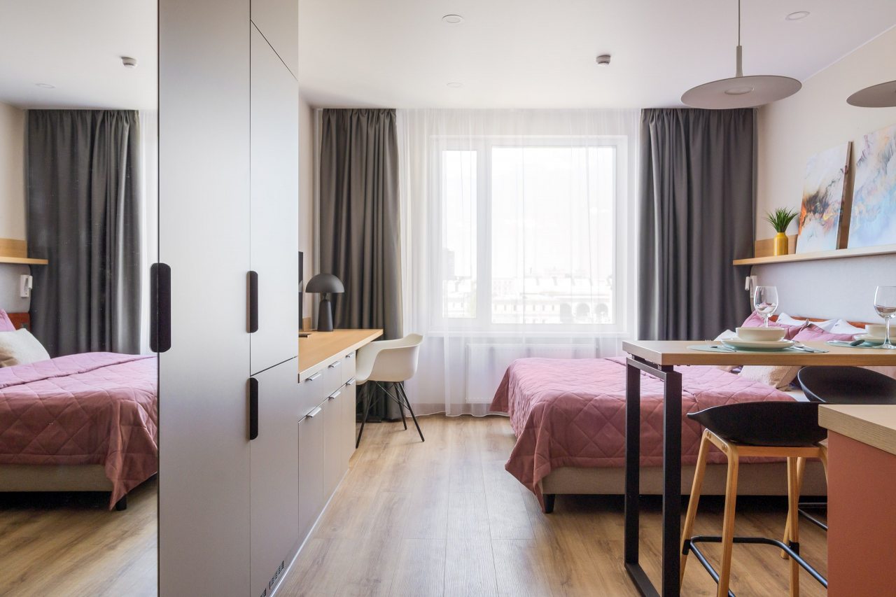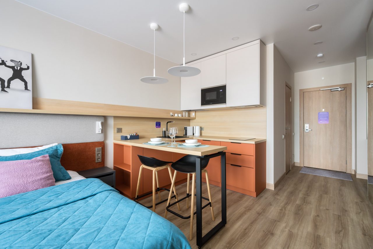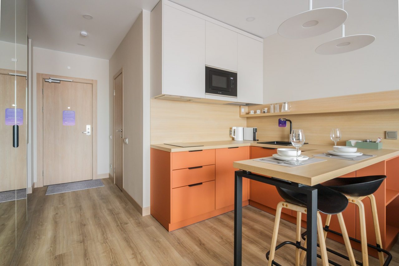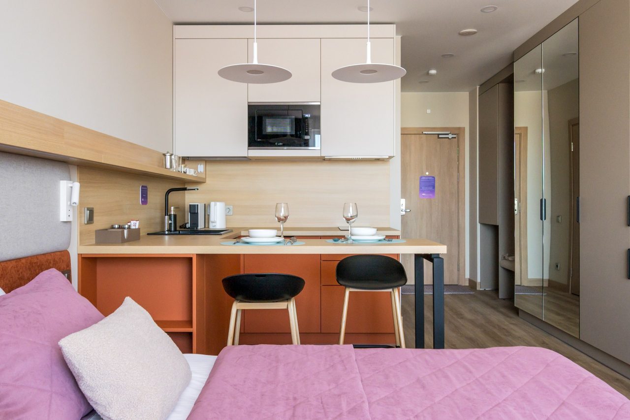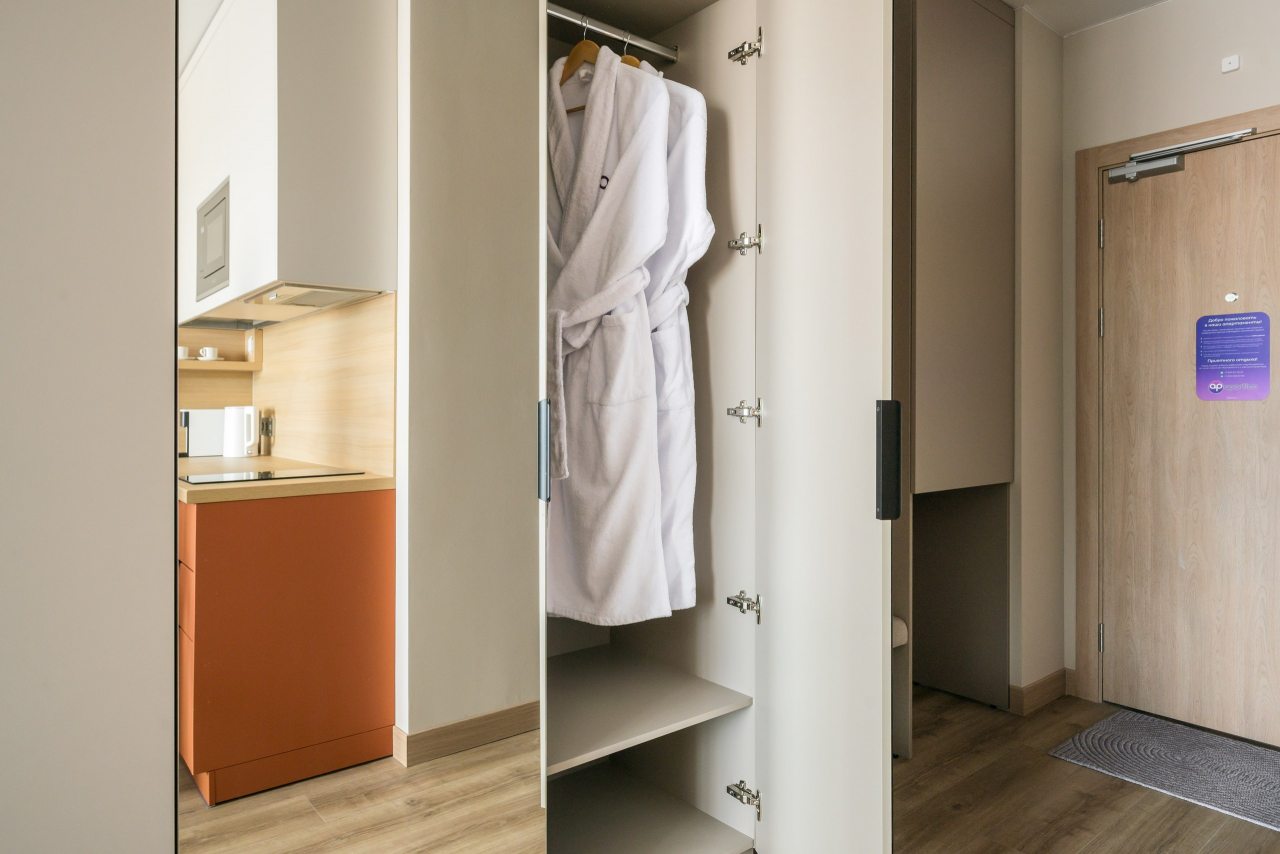 Приезжали в город не несколько дней по рабочим вопросам, чтобы не переплачивать, решили снять с коллегой один номер на двоих. Хочется сказать, что проживанием остались полностью довольны, номер хоть и компактный, но комфортный, со всем необходимым техническим оснащением. На кухне даже есть кофемашина, что не может не радовать, так как не приходится переплачивать в кофейне лишний раз.