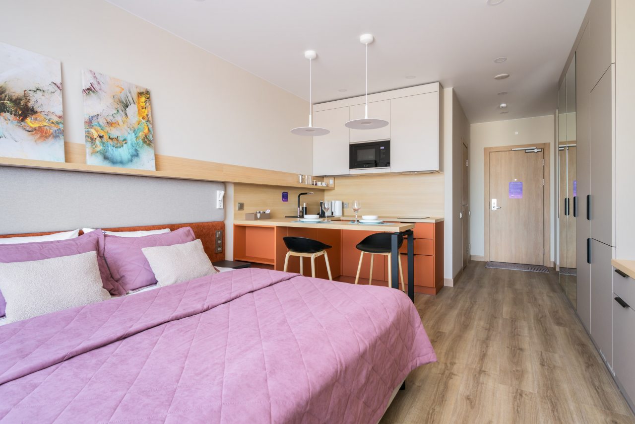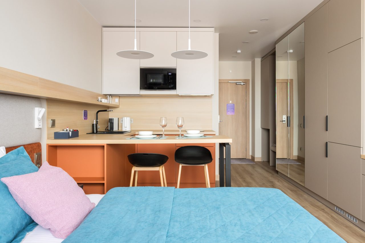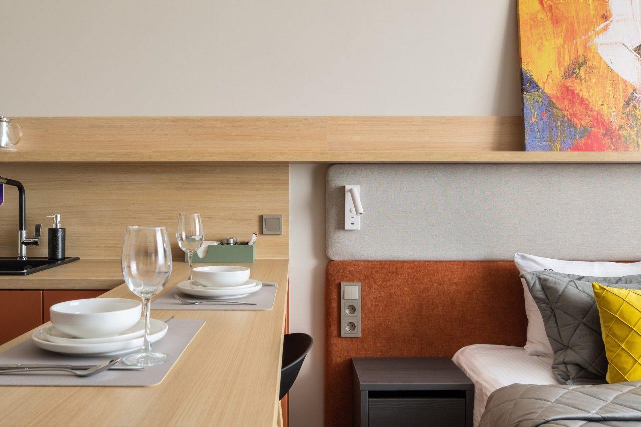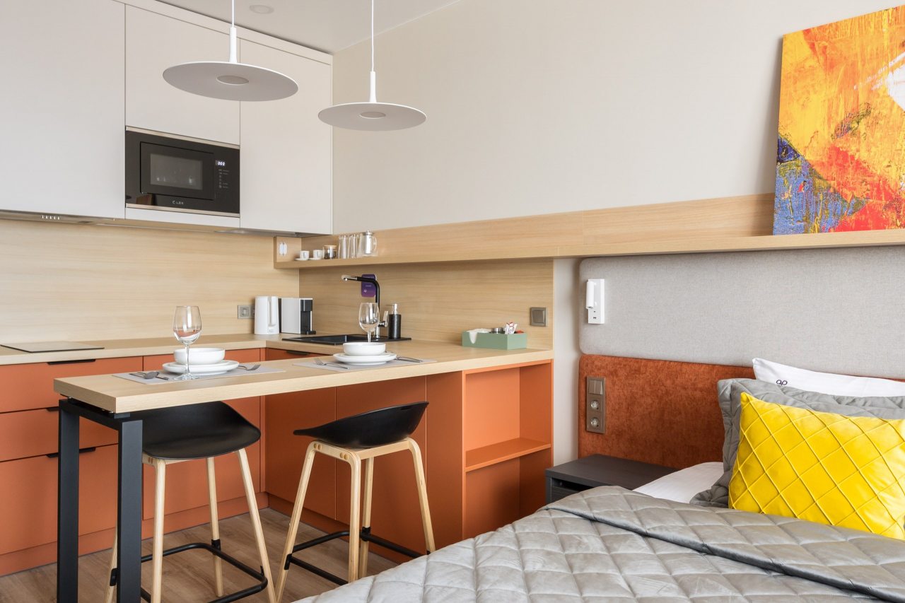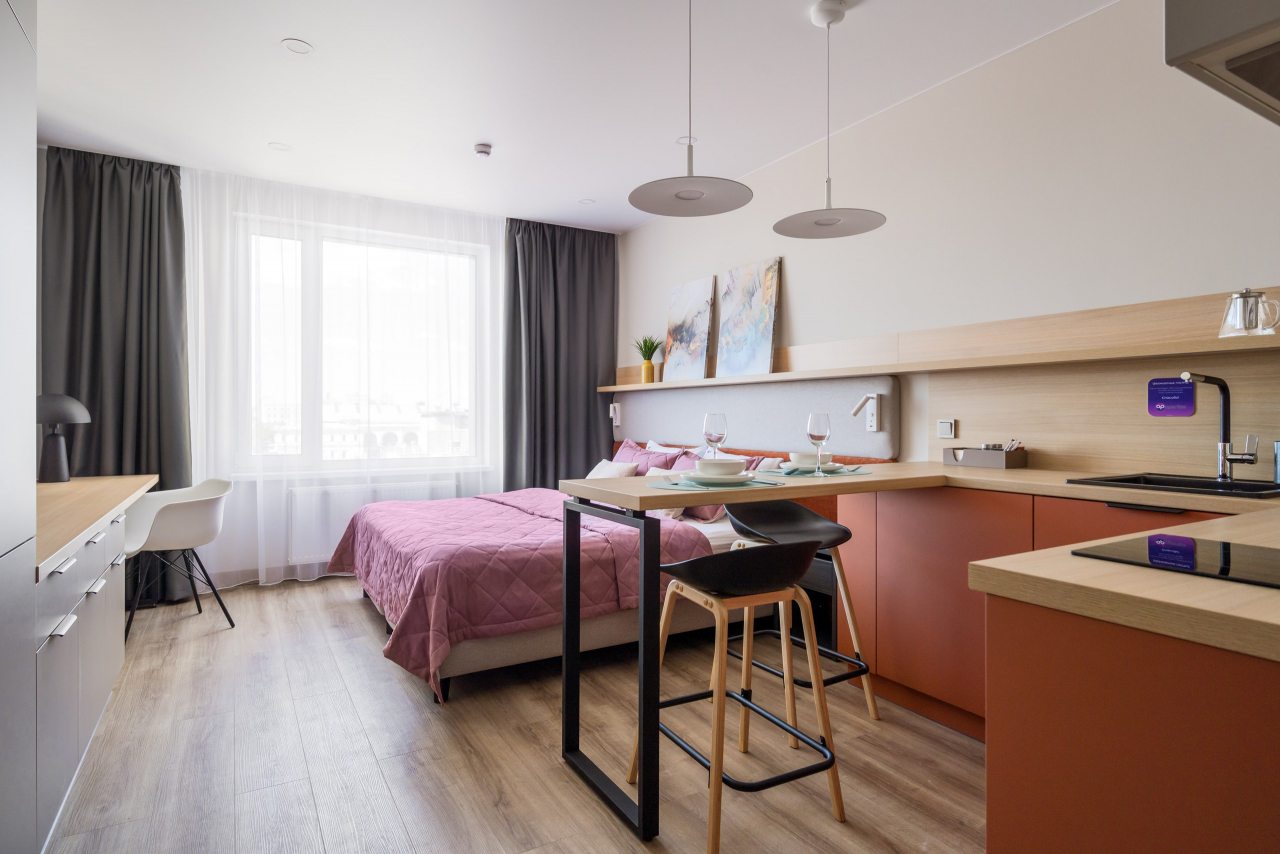 Приезжали в город не несколько дней по рабочим вопросам, чтобы не переплачивать, решили снять с коллегой один номер на двоих. Хочется сказать, что проживанием остались полностью довольны, номер хоть и компактный, но комфортный, со всем необходимым техническим оснащением. На кухне даже есть кофемашина, что не может не радовать, так как не приходится переплачивать в кофейне лишний раз.