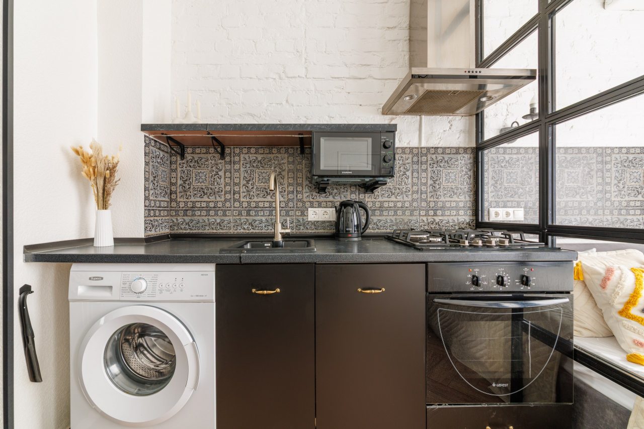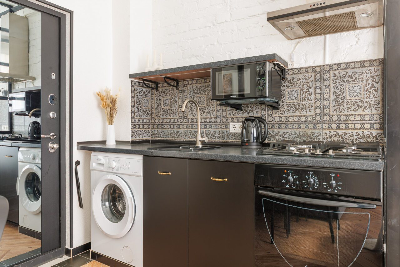 Кухня оборудована плитой, СВЧ-печью, чайником, посудомоечной машиной, обеденной зоной и приборами. Перекусить можно в пиццерии «Додо Пицца».