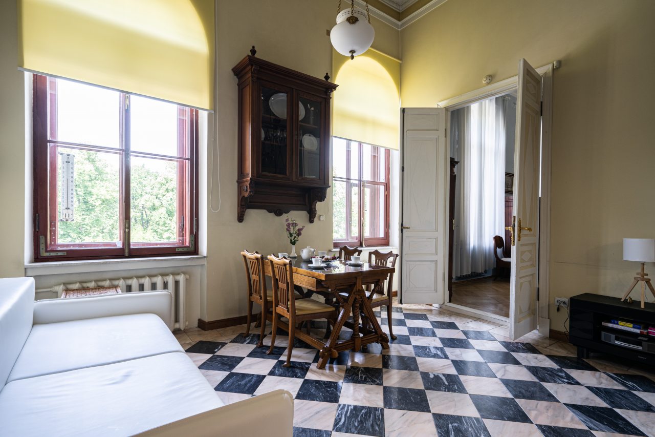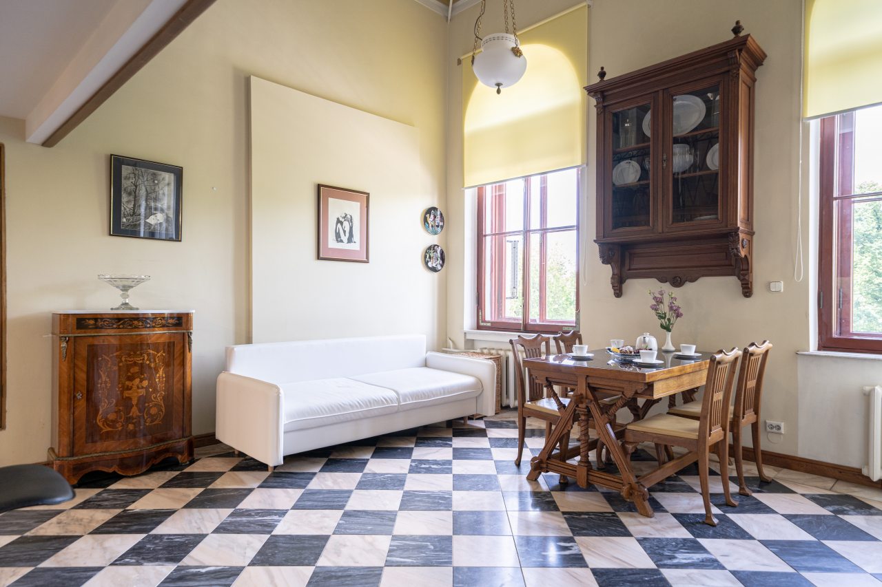 К размещению гостей представлена видовая квартира с эксклюзивным ремонтом, комфортабельной мебелью, современной техникой, ванной комнатой, санузлом. Также имеется библиотека.