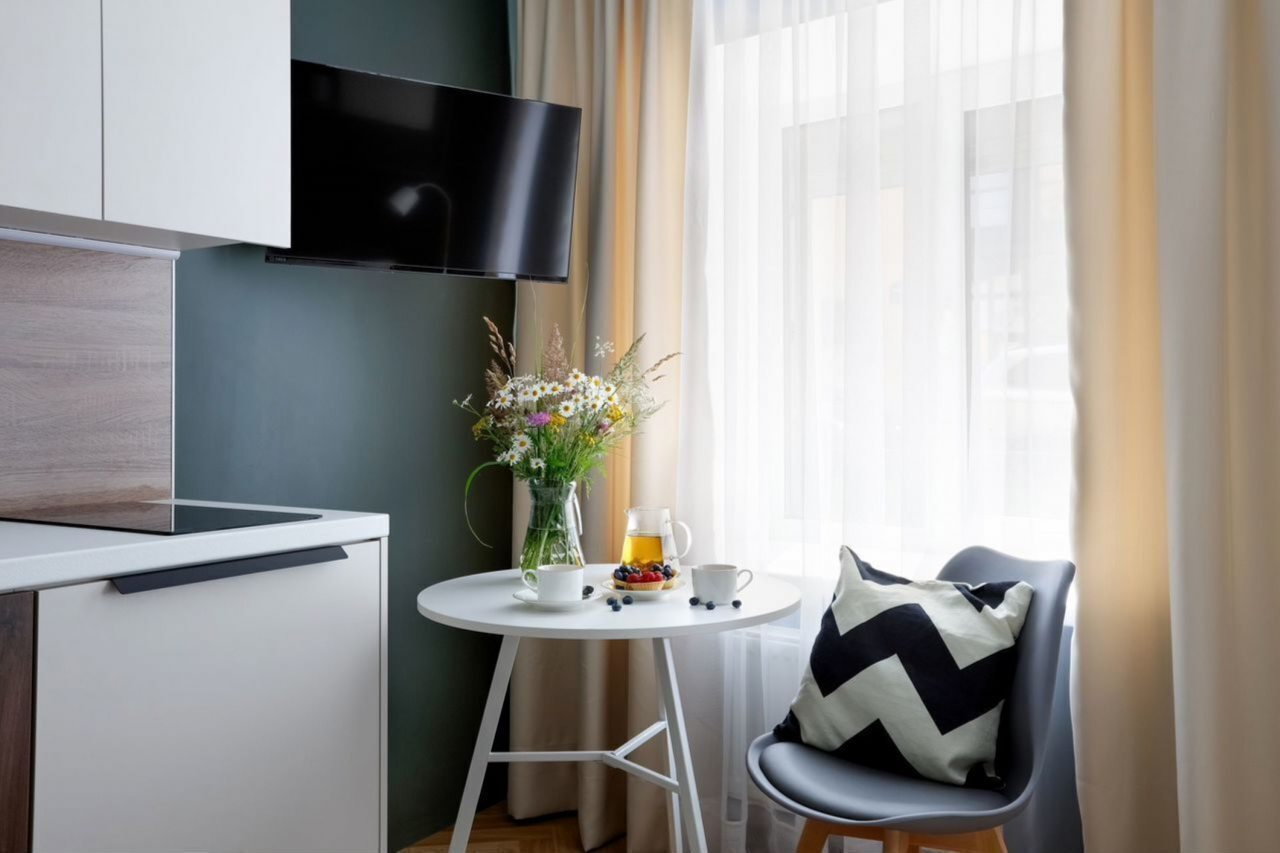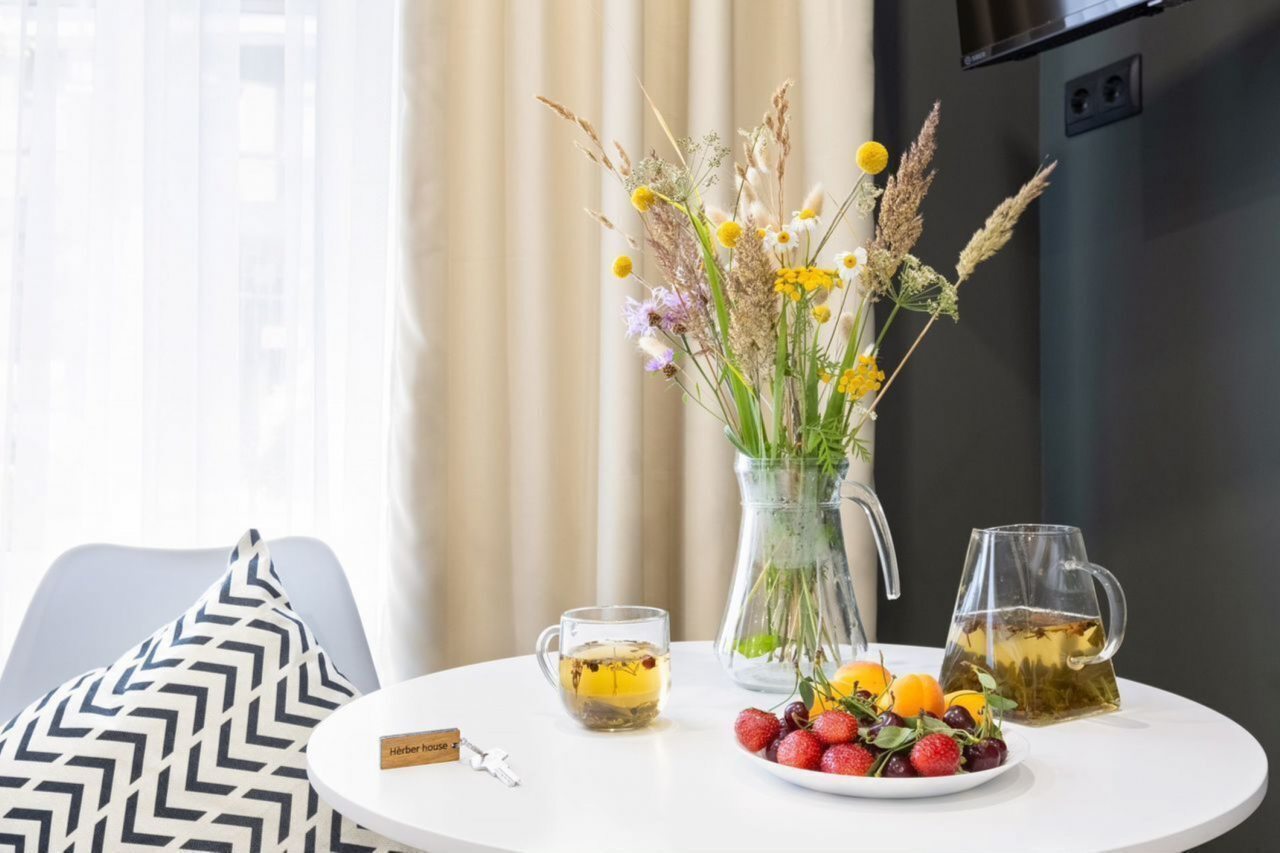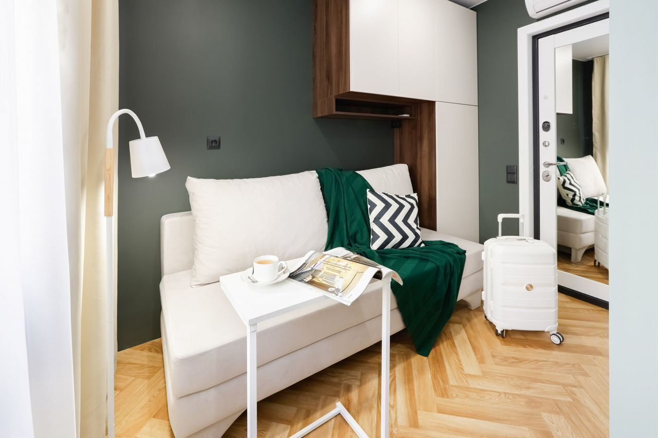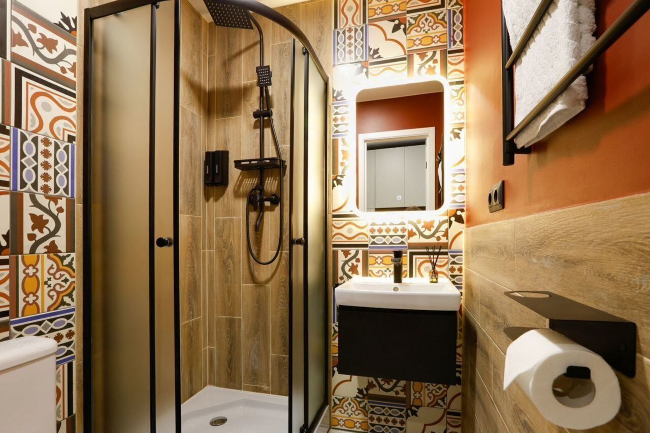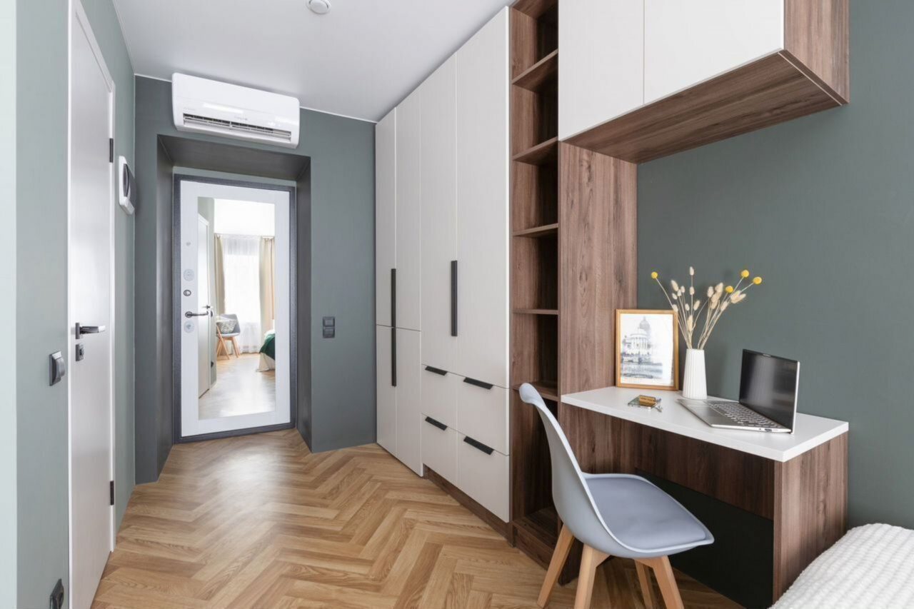 Для проживания и отдыха гостей предоставляются комфортабельные апартаменты со стильным и современным дизайном. Из удобств установлены: сплит-система, зеркало, телевизор и удобная кровать.