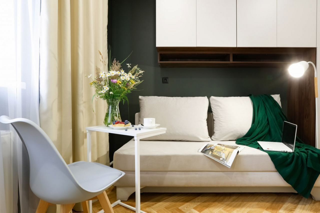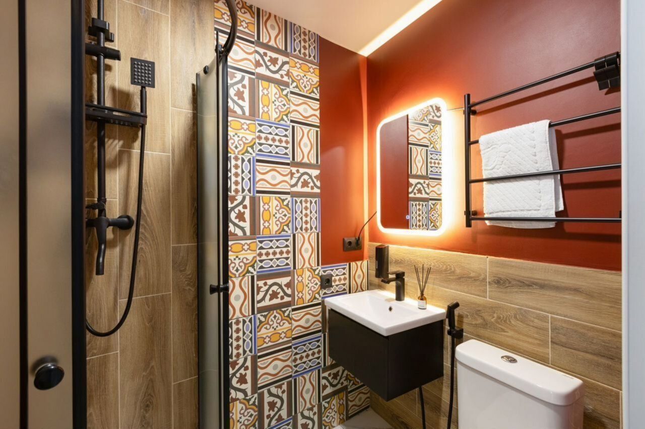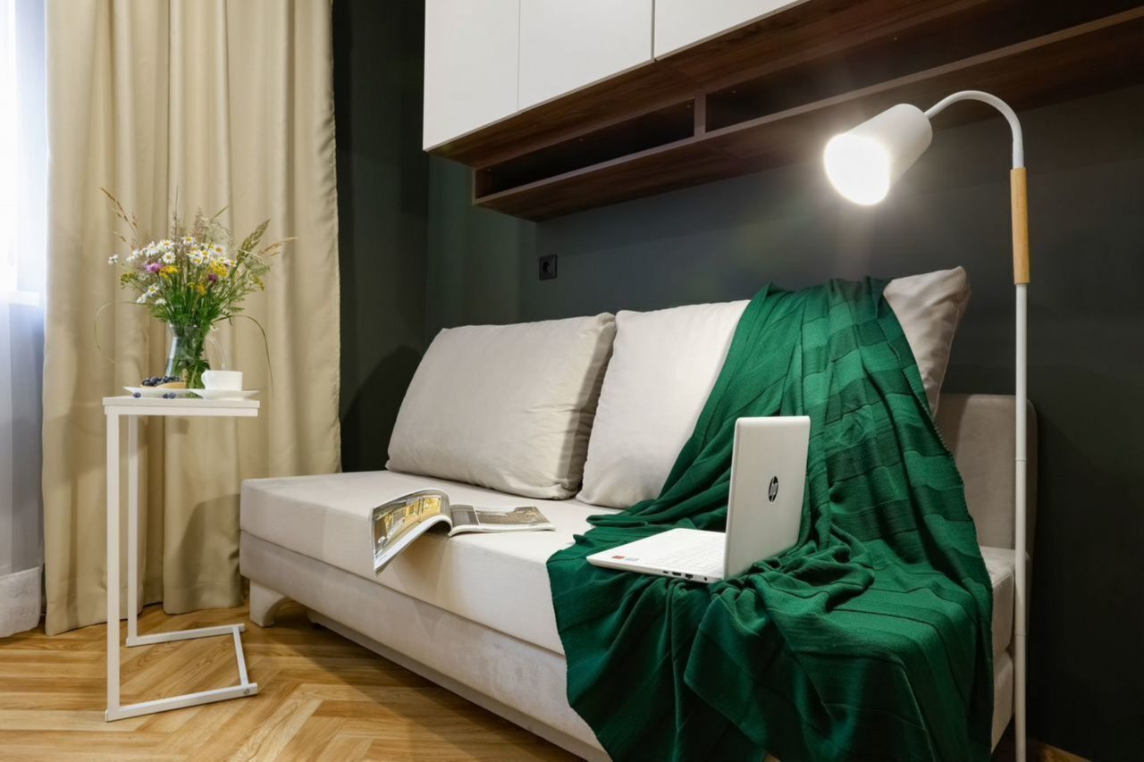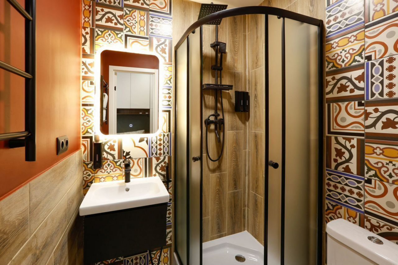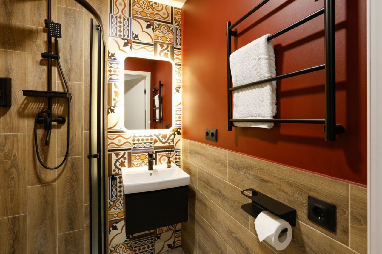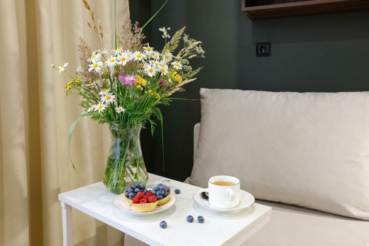 Для проживания и отдыха гостей предоставляются комфортабельные апартаменты со стильным и современным дизайном. Из удобств установлены: сплит-система, зеркало, телевизор и удобная кровать.