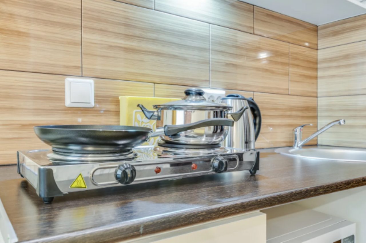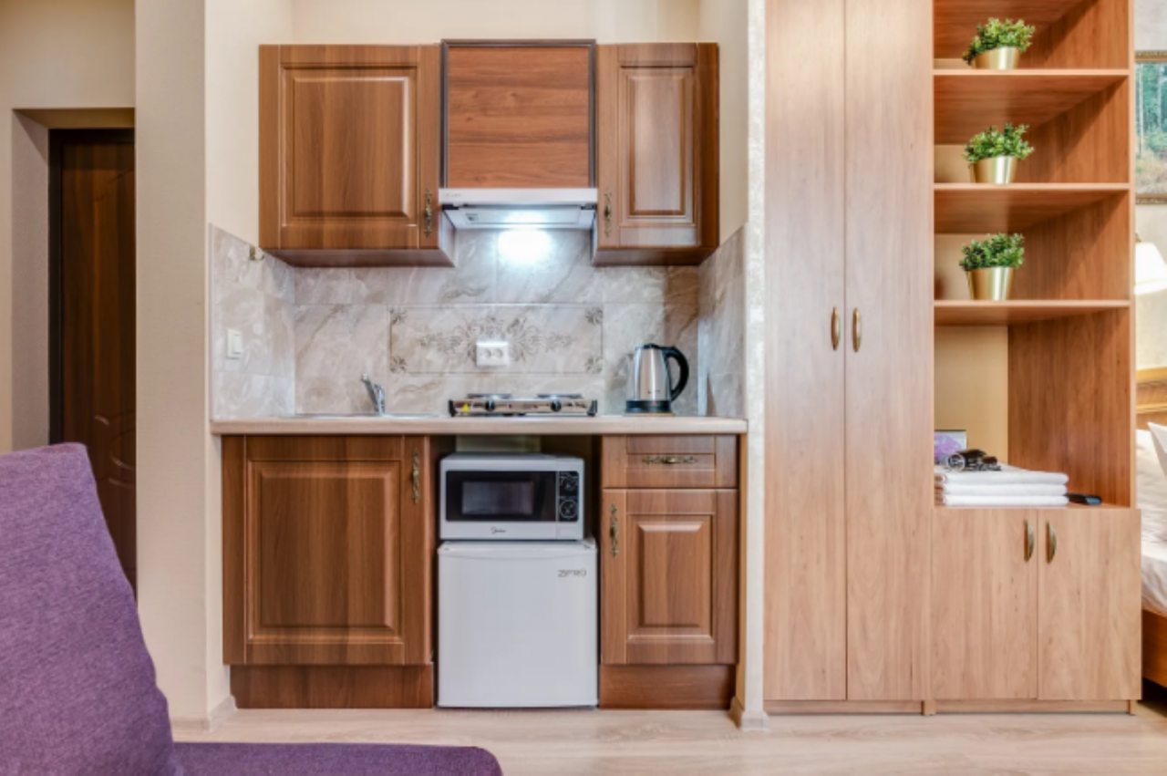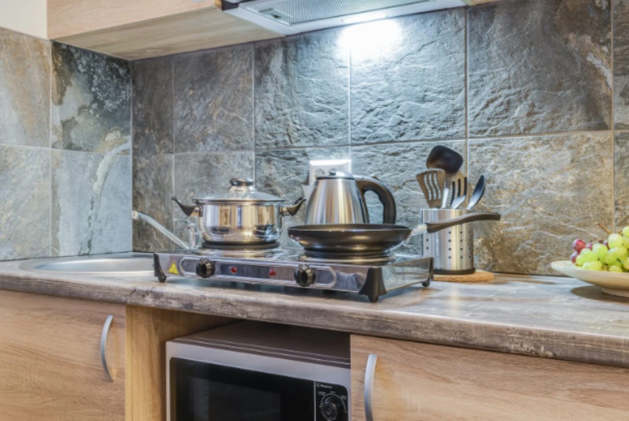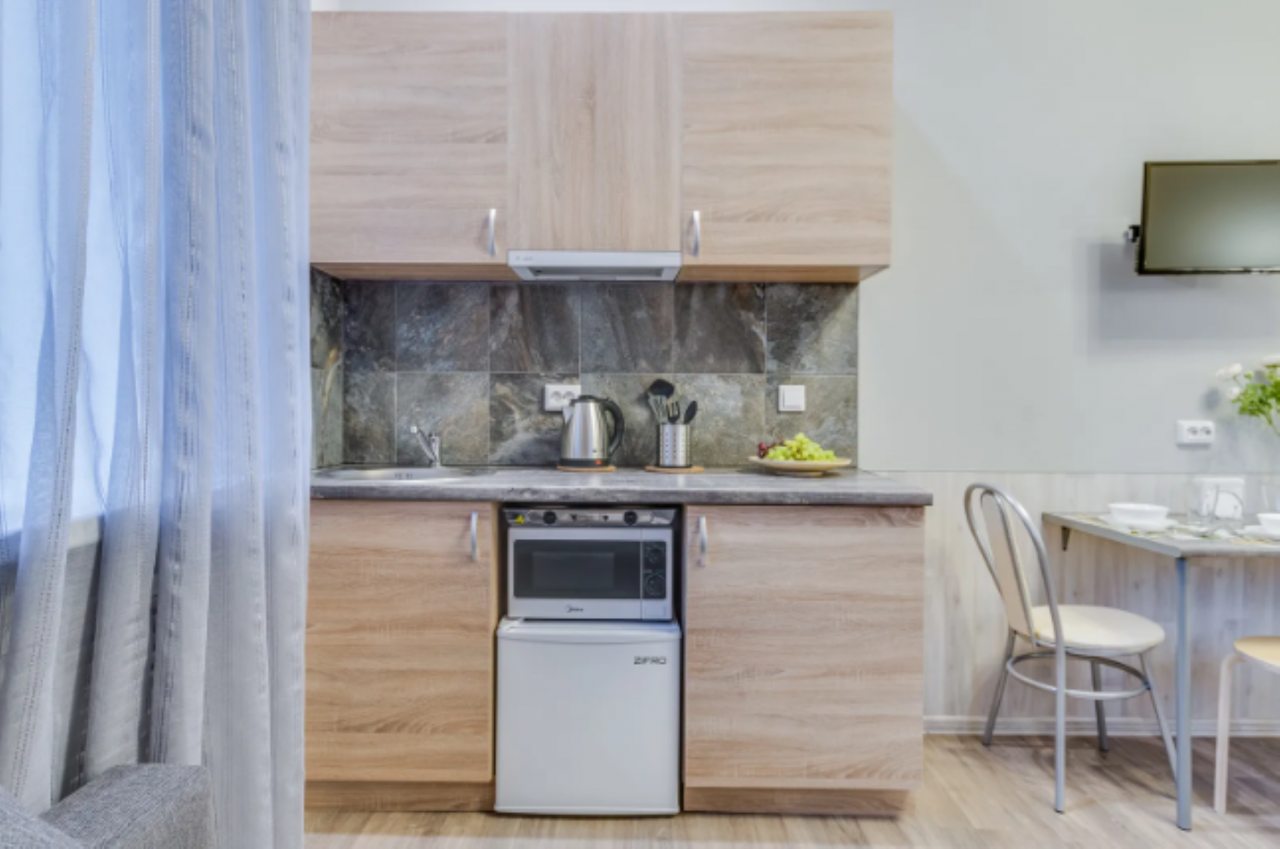 Комплектация кухонной бытовой техники может отличаться в зависимости от категории. В большинстве имеется чайник, холодильник и СВЧ-печь для организации питания.