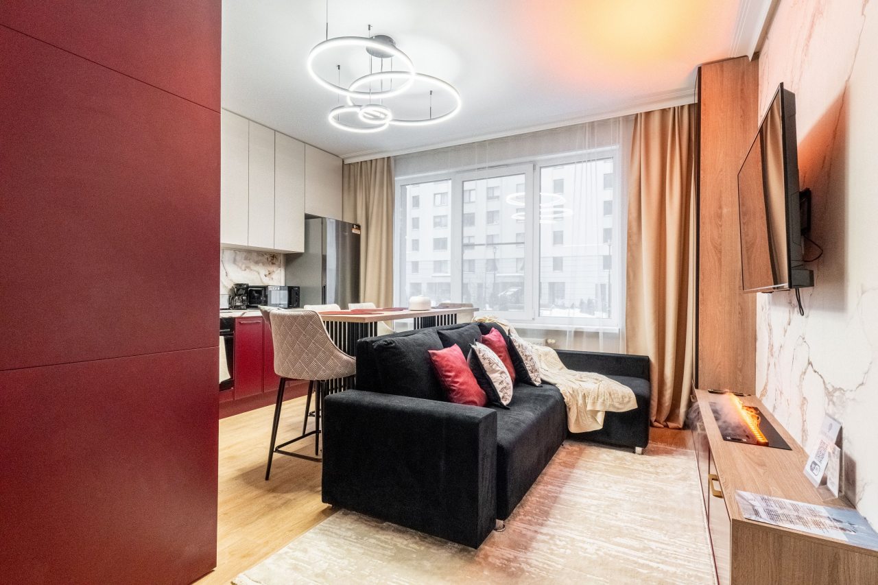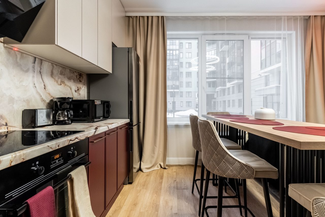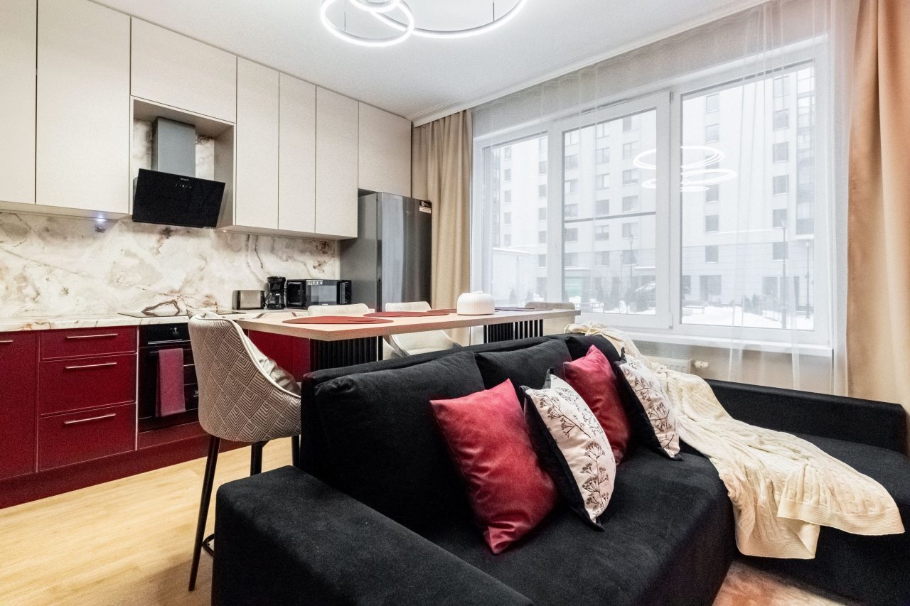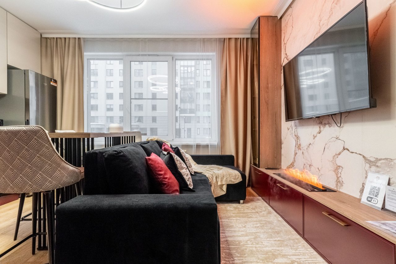 Приехала по работе в город и нашла апартаменты через сайт. Для меня было очень важно расположение квартиры и эта устроила по всем параметрам: дальность от центра, расположение остановки и станции метро, сколько идти до кафе и магазинов. Внутри сделан отличный, современный ремонт. С балкона открываются восхитительные виды северной столицы. Проживать в ней было очень комфортно.