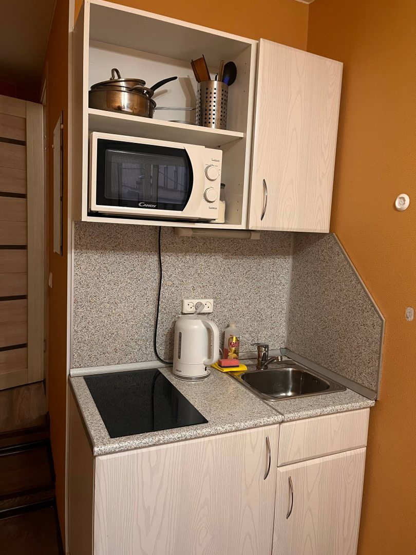 В распоряжении гостей мини-кухня с плитой, микроволновой печью и другой техникой, также имеется посуда и кухонные принадлежности. Через 15 м находится кафе «Фергана».