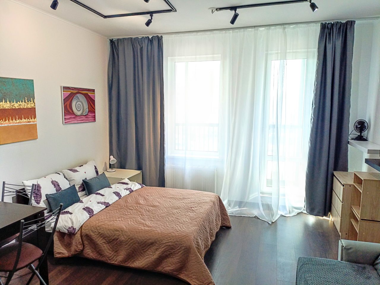 Для проживания подготовлена светлая и современная квартира со следующими удобствами: большая двуспальная кровать, раскладной диван, телевизор, высокоскоростной Wi-Fi. Ванная комната оснащена стиральной машиной и косметическими принадлежностями.