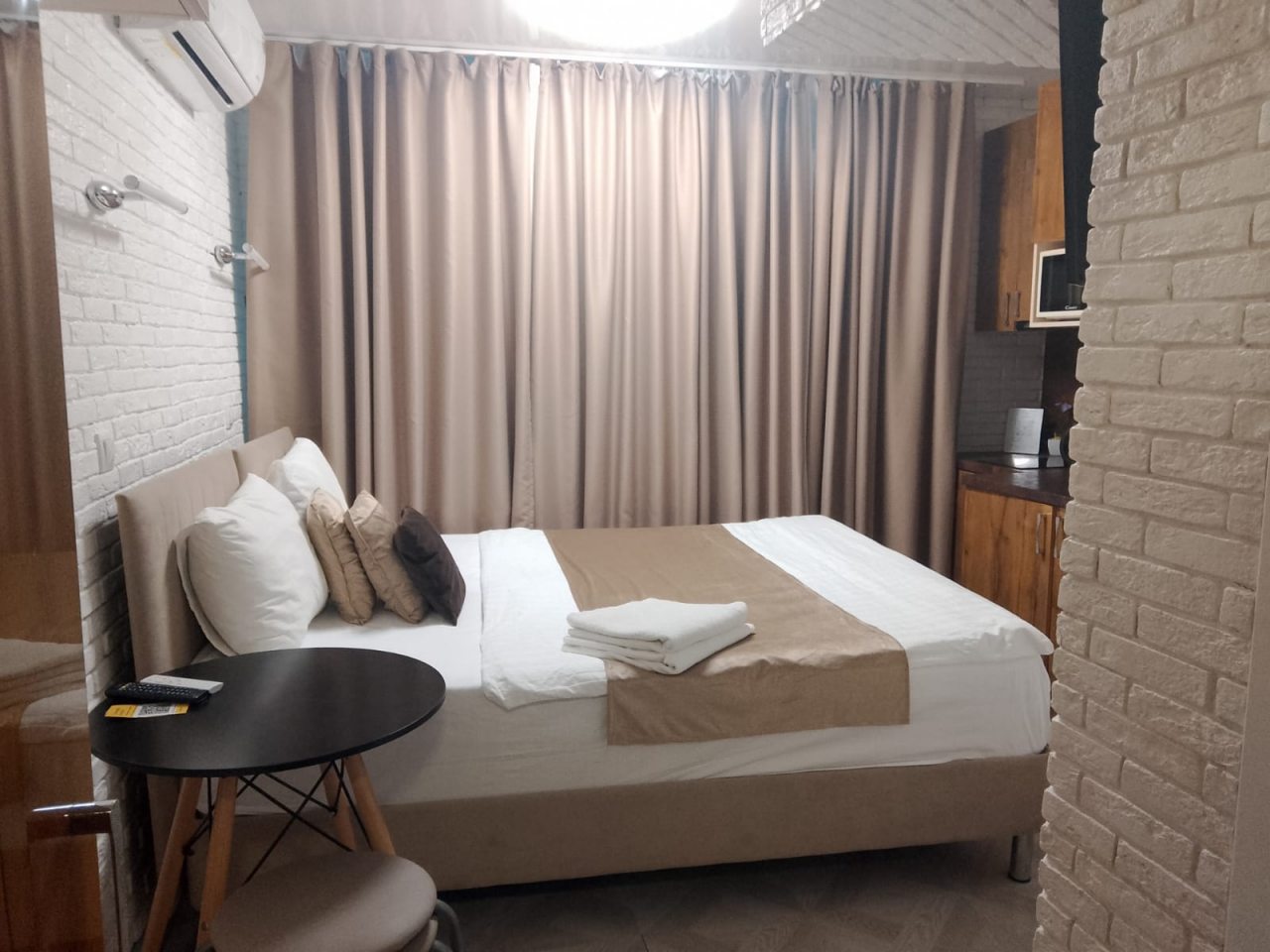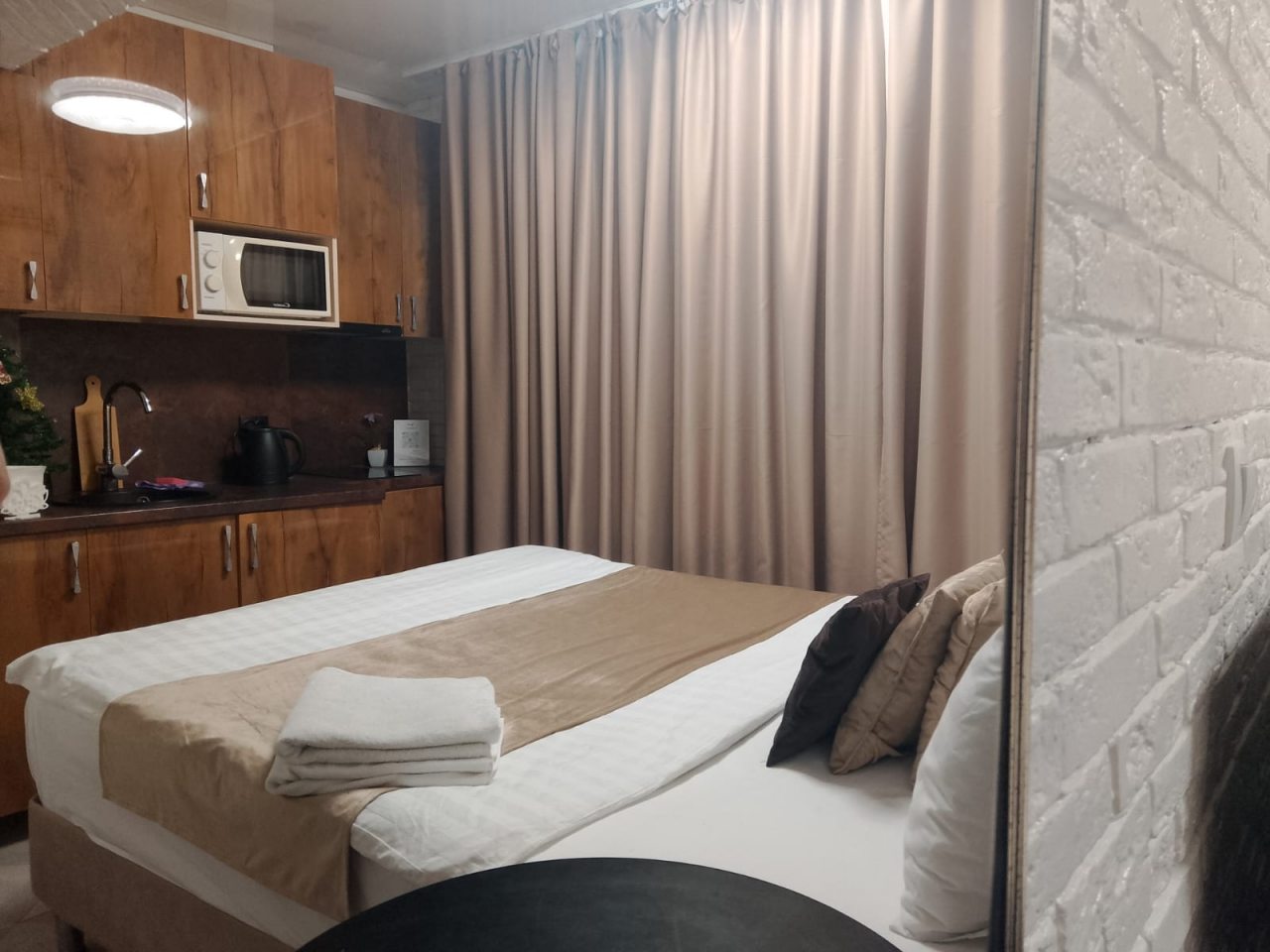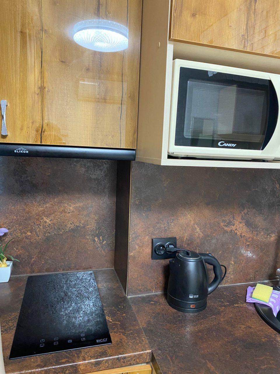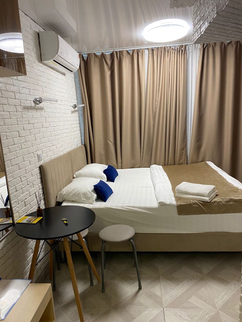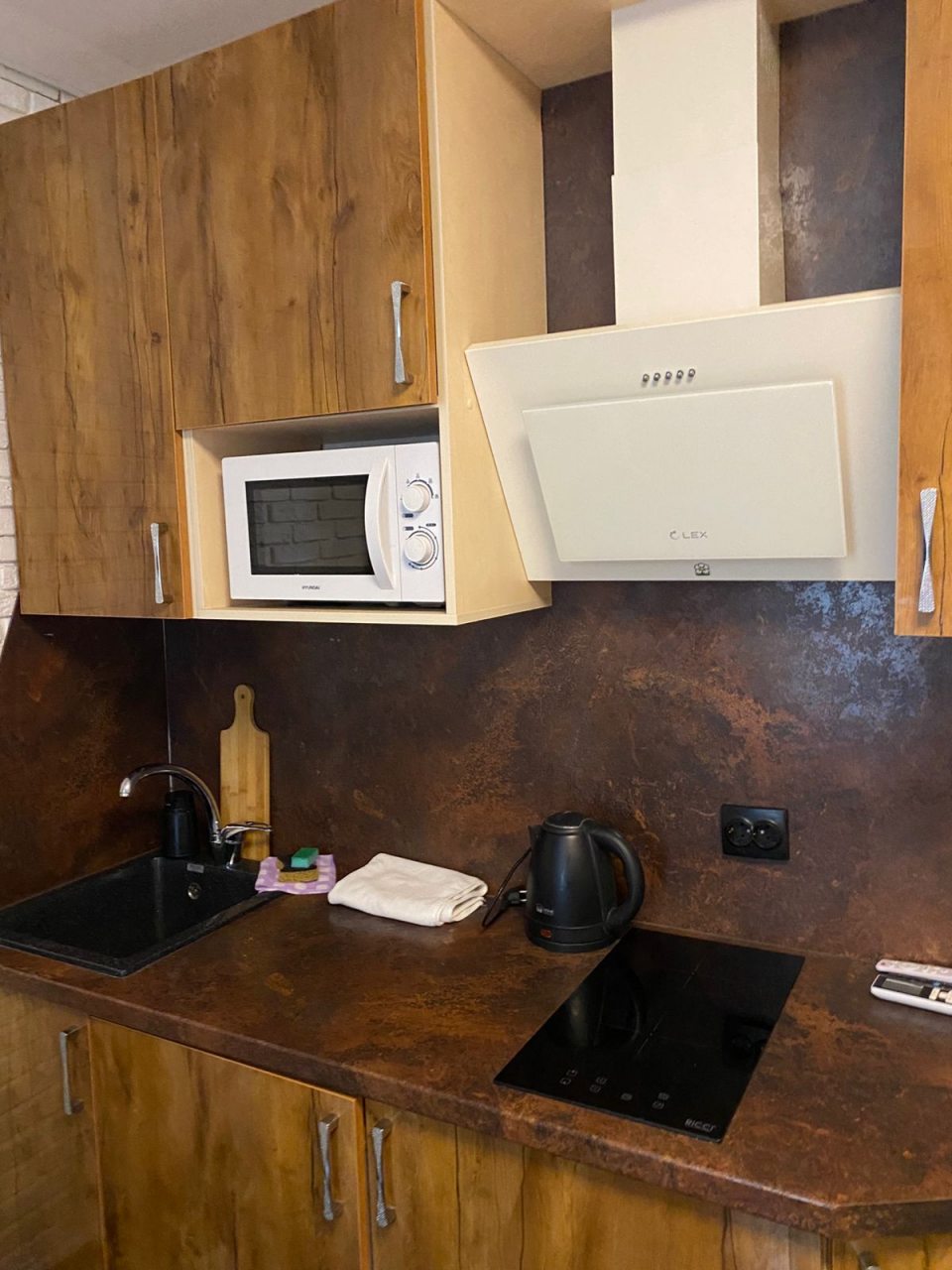 Местонахождение удобное, до достопримечательностей можно добраться пешком. Стоянка находится прямо под окнами гостиницы, на территории жилого комплекса, а ворота открывает администратор через пульт, так что постоянные поездки на автомобиле будут затруднены. Магазин "Пятерочка" располагается буквально за углом, всего в 20 метрах. Кухня оборудована индукционной плитой, встроенным мини-холодильником и стиральной машиной. В наличии электрический чайник, микроволновая печь и посуда для двоих. Также предоставляются утюг и компактная гладильная доска.