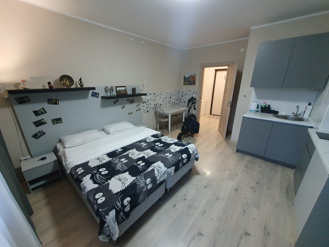 Отличная студия, очень уютно. Все необходимое есть. Получила удовольствие от проживания. Удобное расположение. Необходимые магазины рядом. Прекрасная транспортная развязка в шаговой доступности. Часто приезжаю в Питер,теперь останавливаться буду только в этом отеле. Спасибо