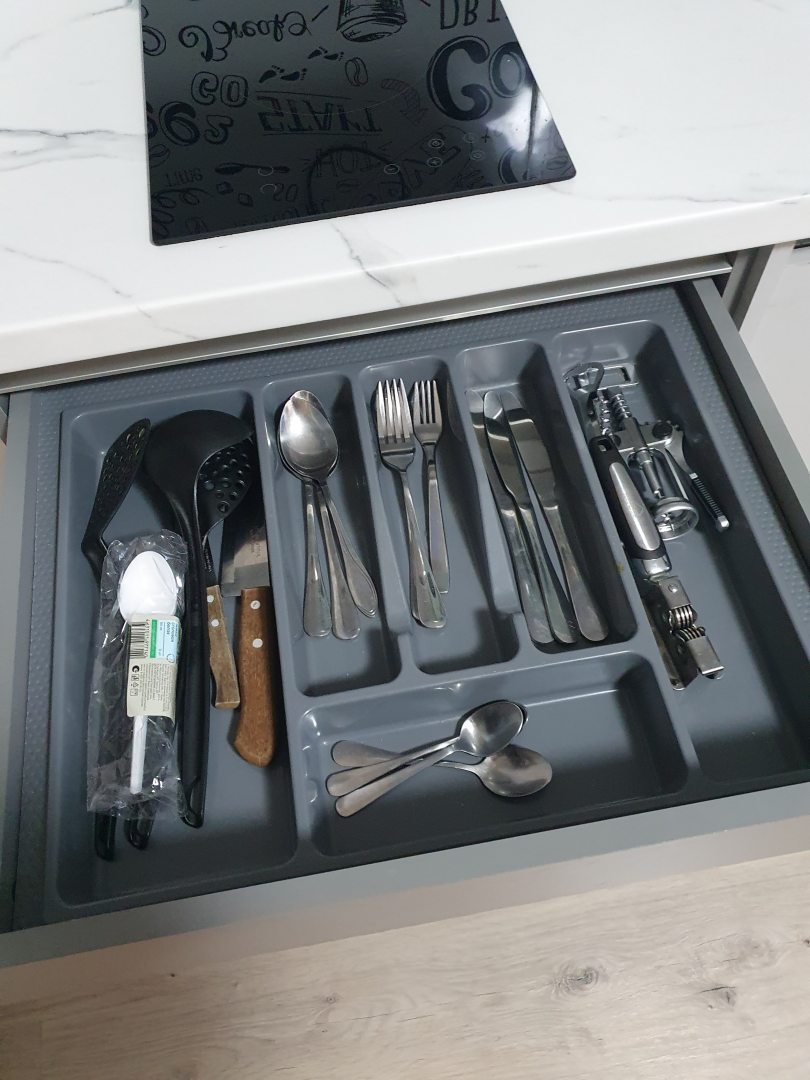 Кухня полностью оборудована бытовой техникой, посудой и полотенцами. Также имеется сахар и соль.