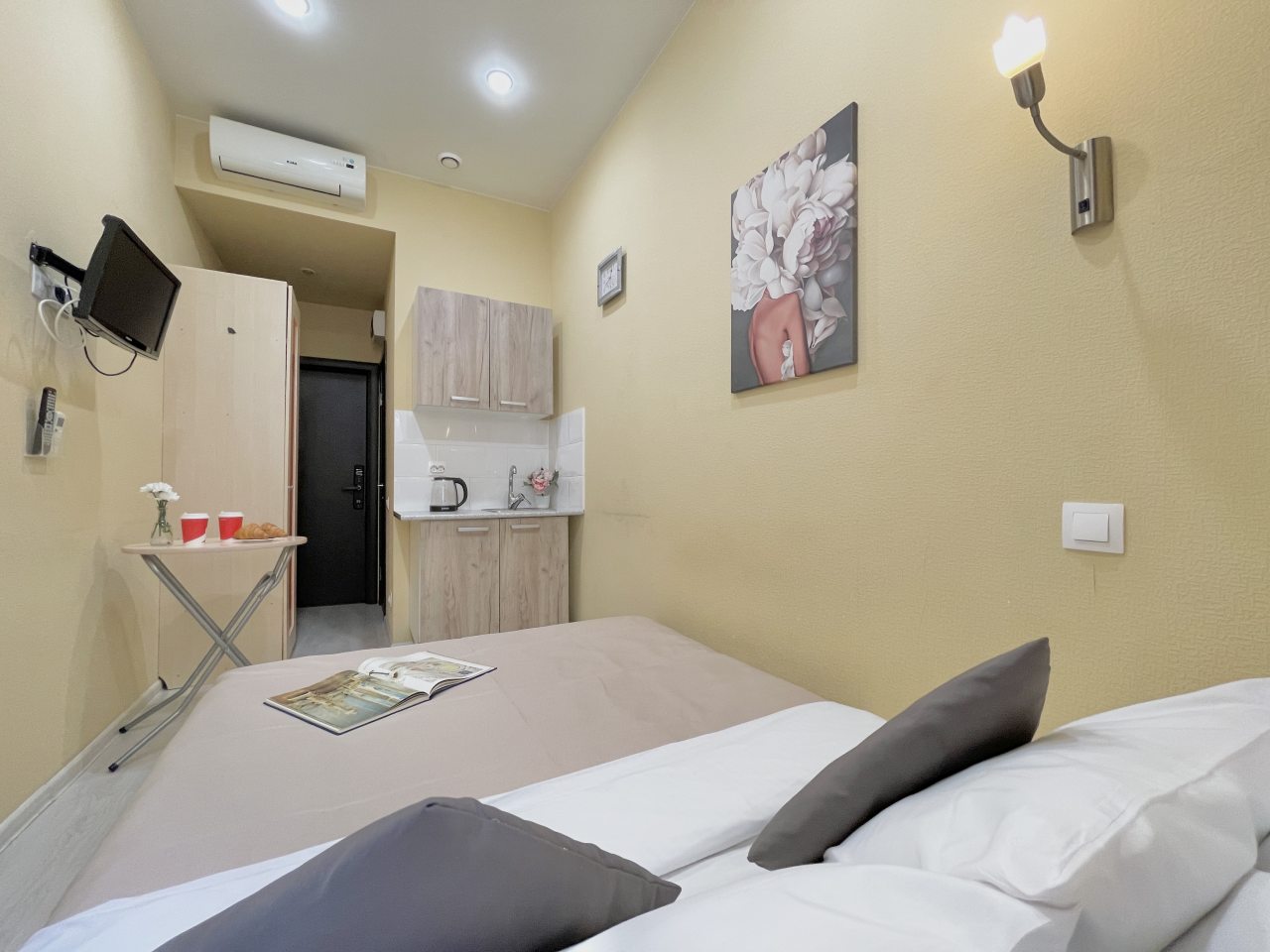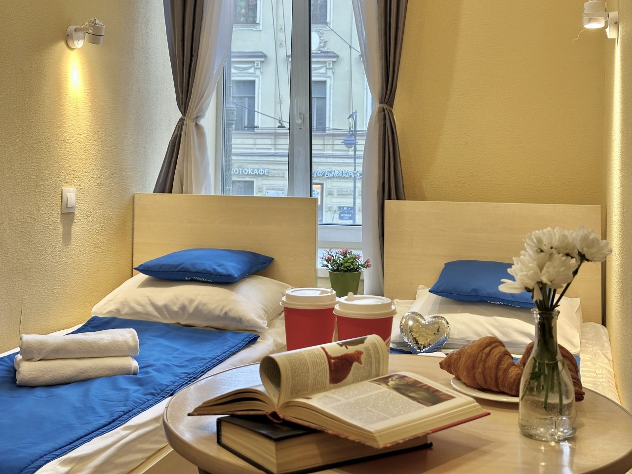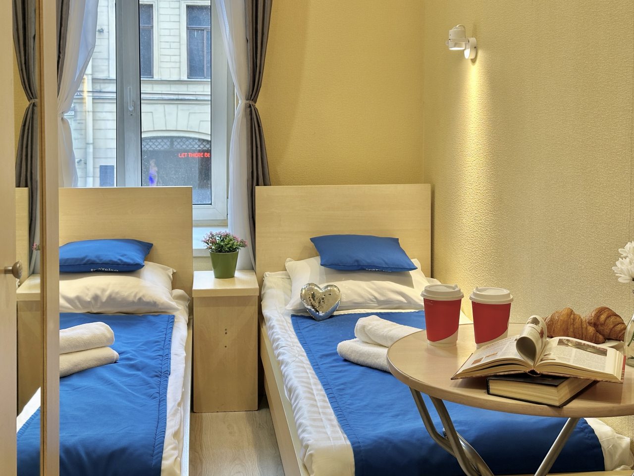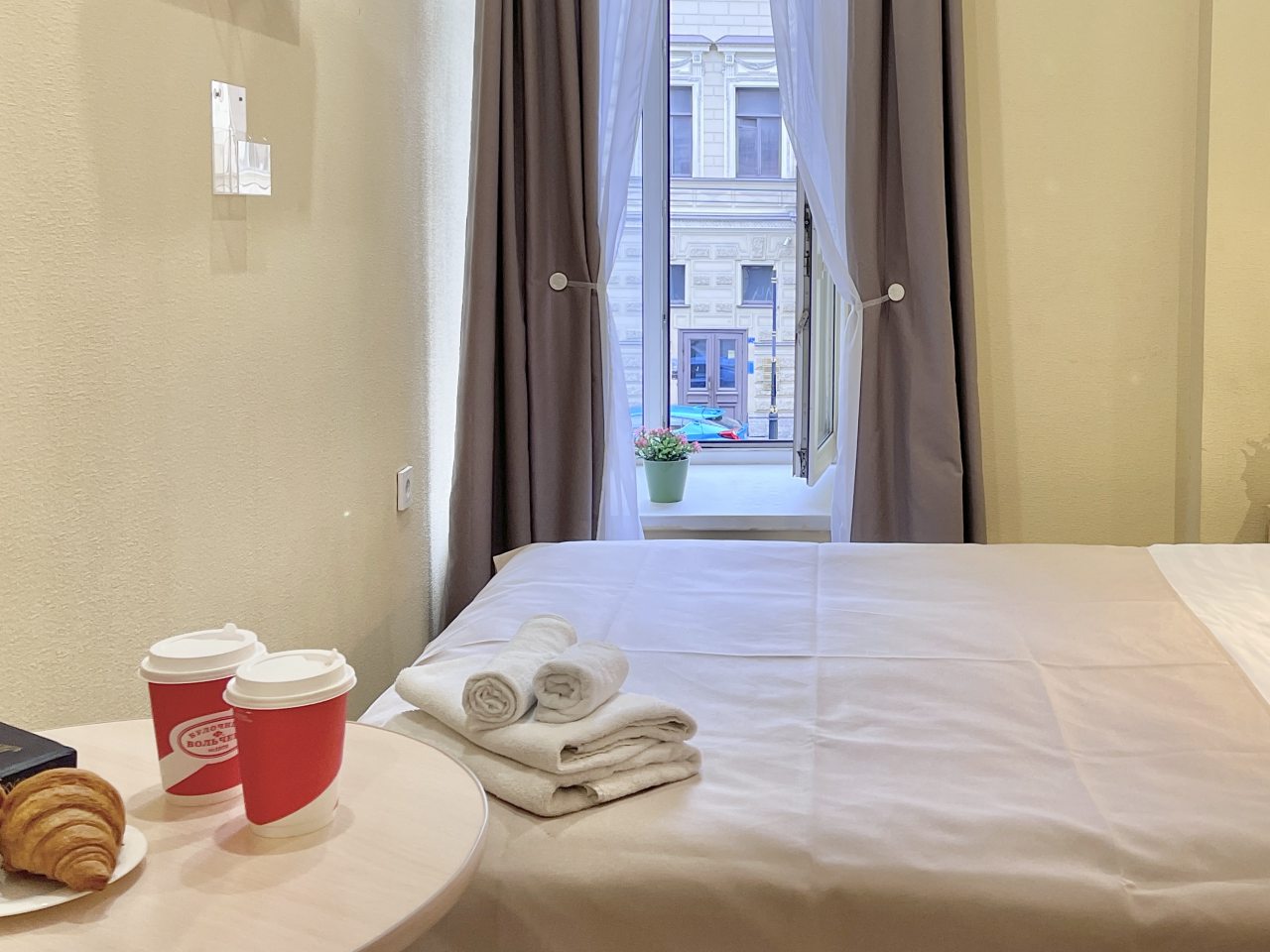 Замечательное расположение. Одна минута и ты на Невском проспекте. В номере чисто, есть кондиционер, холодильник, чайник. Если есть желание готовить еду в номере, то можно воспользоваться электроприткой. Все достопримечательности поблизости, недалеко продуктовый магазин, столовая, метро.