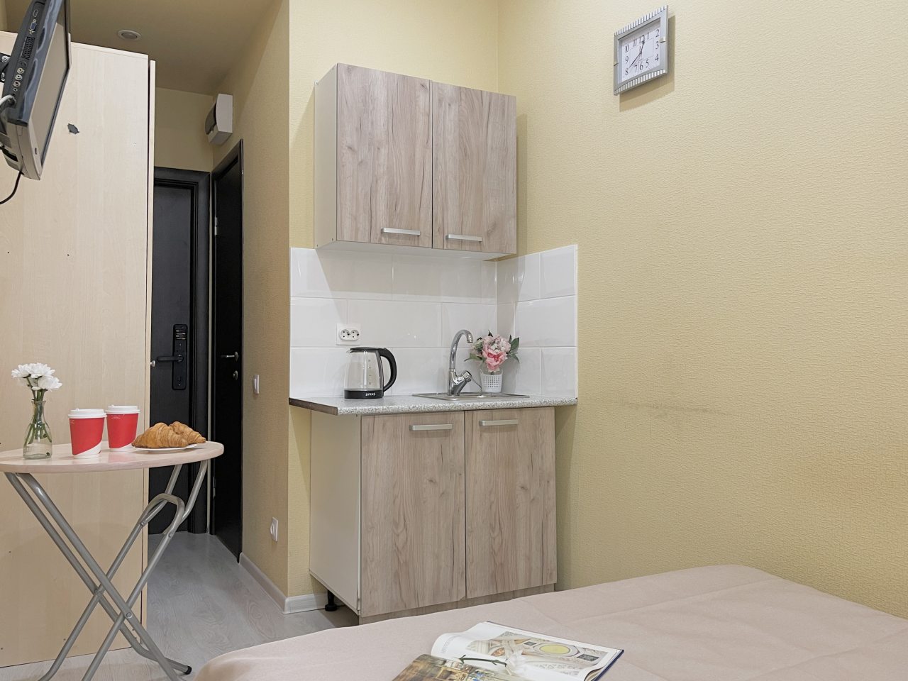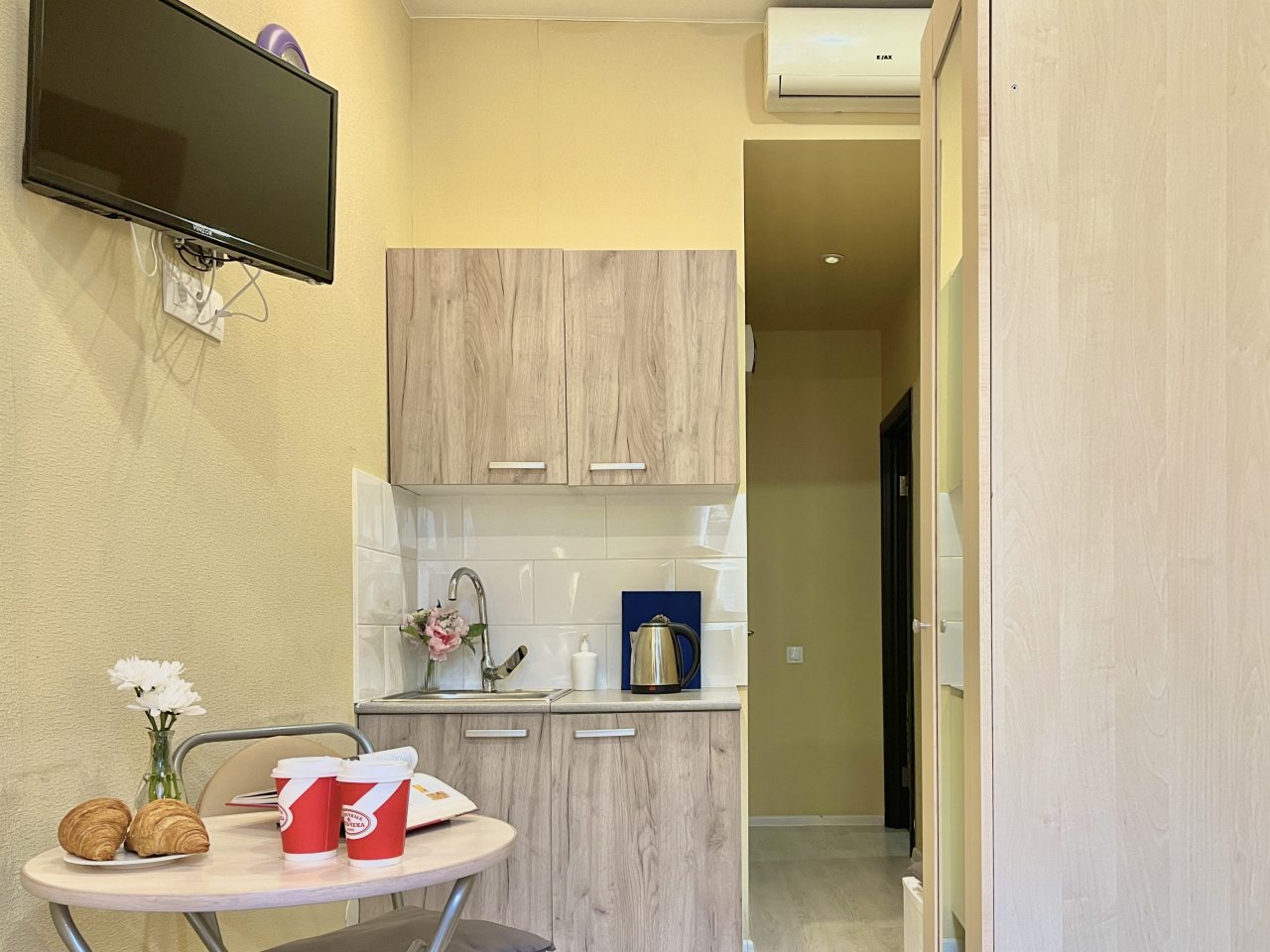Мини-кухня располагается в апартаментах, на ней гости найдут оптимальный набор предметов и бытовой техники для приготовления пищи. Поблизости продуктовые магазины, кафе и рестораны.