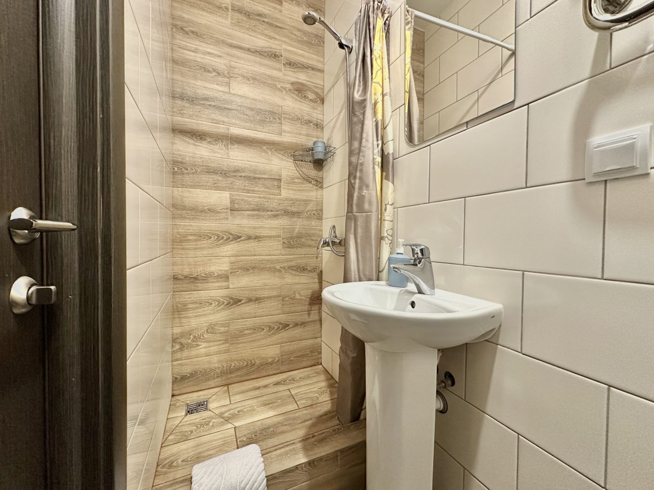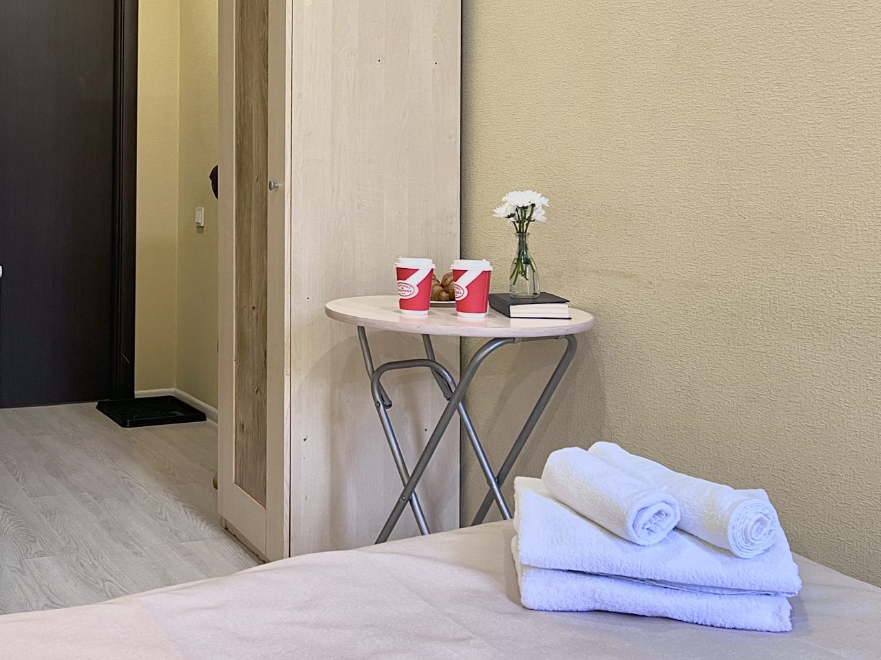 Очень удобное место расположение. На этаже несколько номеров. Все есть от плиты до кондиционера. Полотенца, чайник, посуда, телевизор все есть.