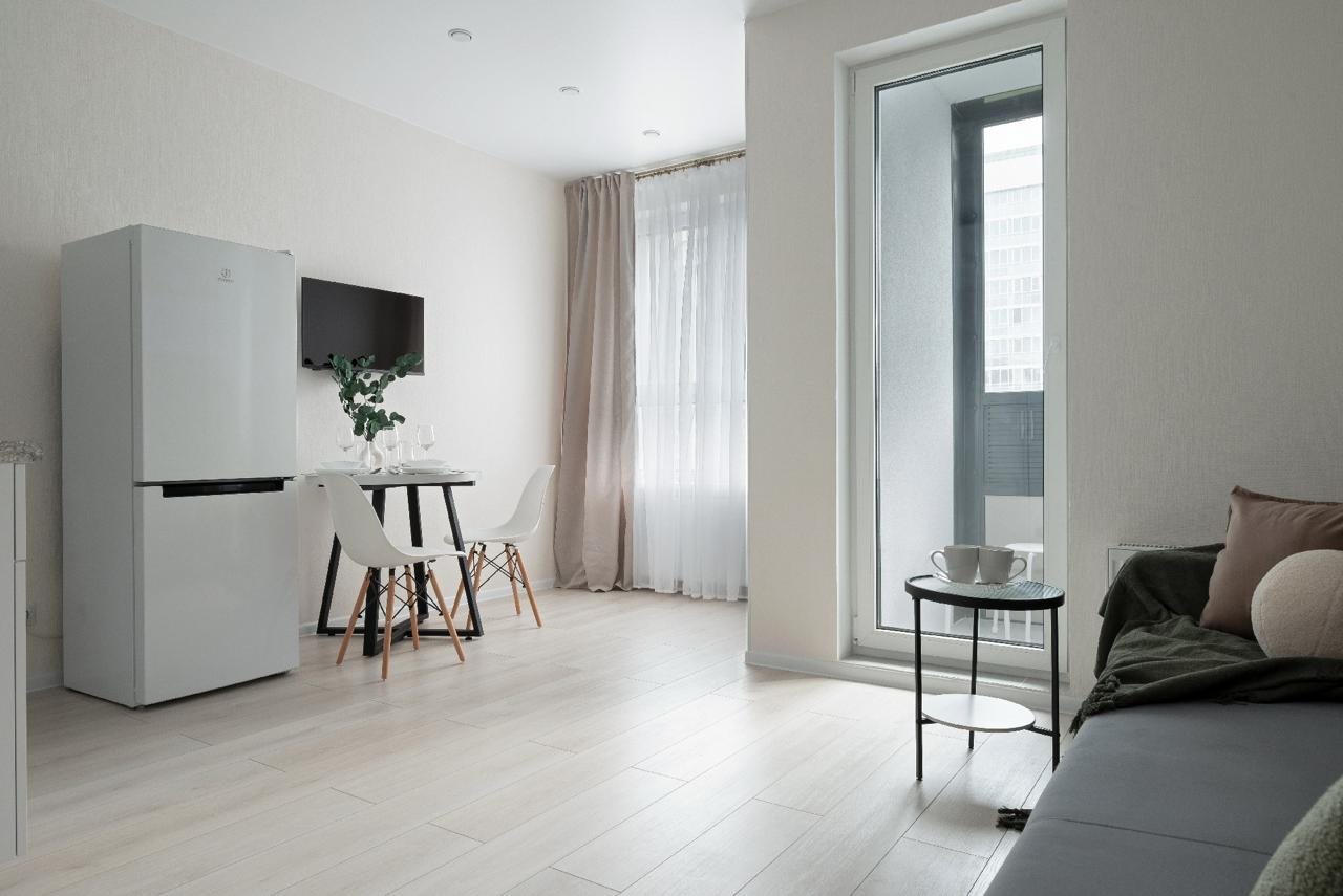 Светлые апартаменты оснащены всем необходимым для комфортного пребывания, например: диваном, телевизором, шкафом, гладильными принадлежностями, кухонной зоной, собственной ванной комнатой и лоджией. Санузел оборудованы современной сантехникой, стиральной гигиеническими средствами. Доступна точка Wi-Fi.
