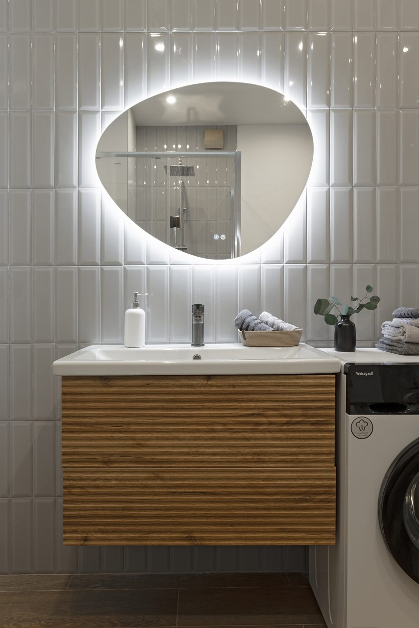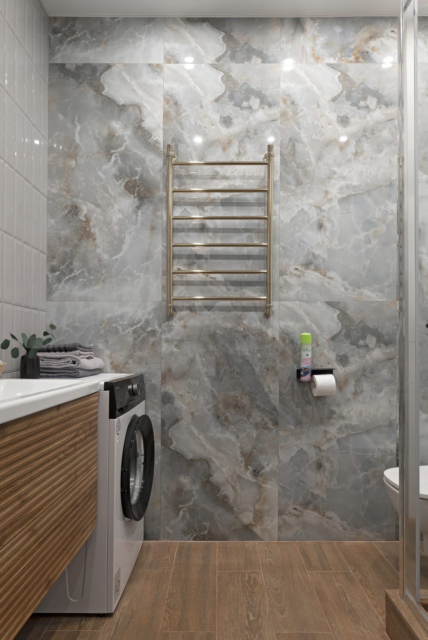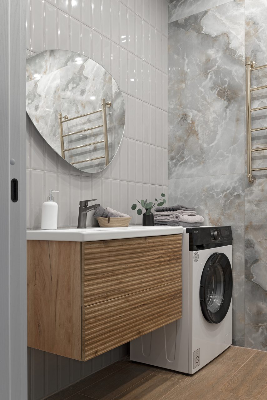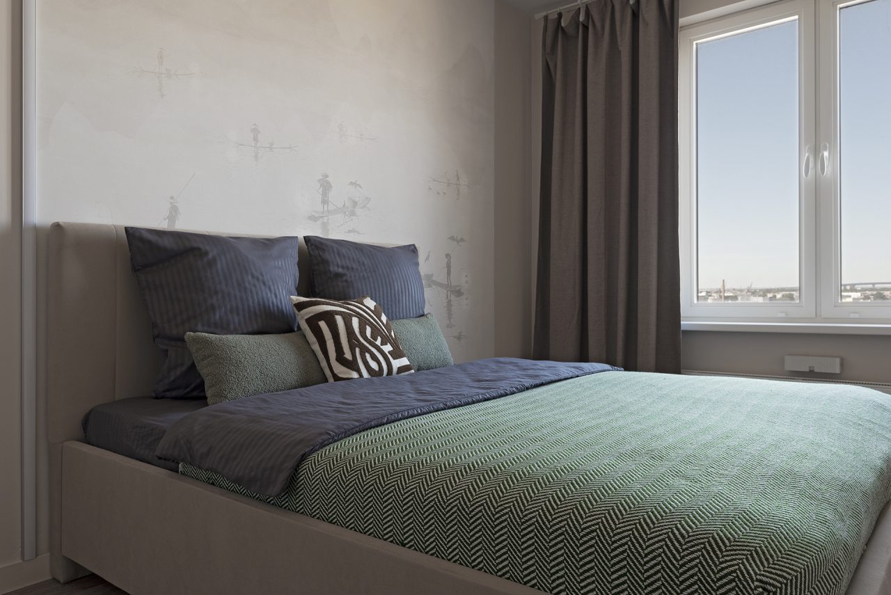 Внутри всё продумано для полноценного отдыха и проживания, включая двуспальную кровать с качественным матрасом, мягкий и удобный диван, вместительный шкаф, а также санузел со стиральной машиной и необходимой сантехникой.