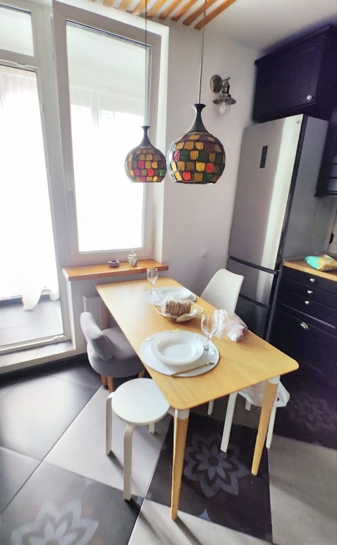 Потрясающие апартаменты. Очень понравился их интерьер. Он такой яркий и свежий, если сравнивать с постоянной серостью и минимализмом. Расположение квартиры нам подошло. Постельное белье было чистым и свежим.