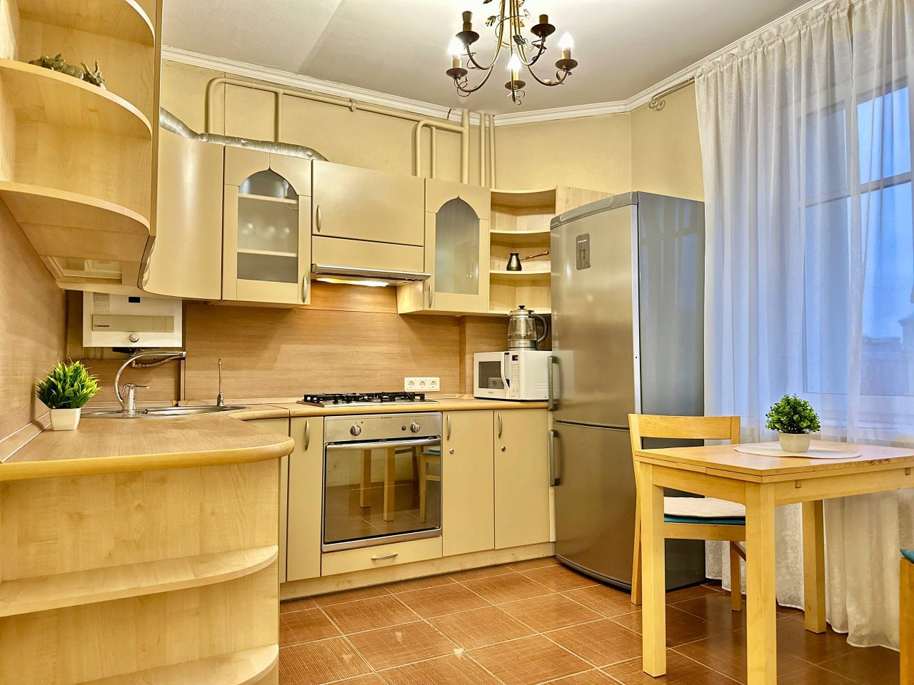 Приехала по рабочим делам на пару дней в Питер и решила на это время снять эти апартаменты. В квартире достаточно место, чтоб чувствовать себя комфортно. Красивая люстра. Кухня просторная. Кровать удобная.