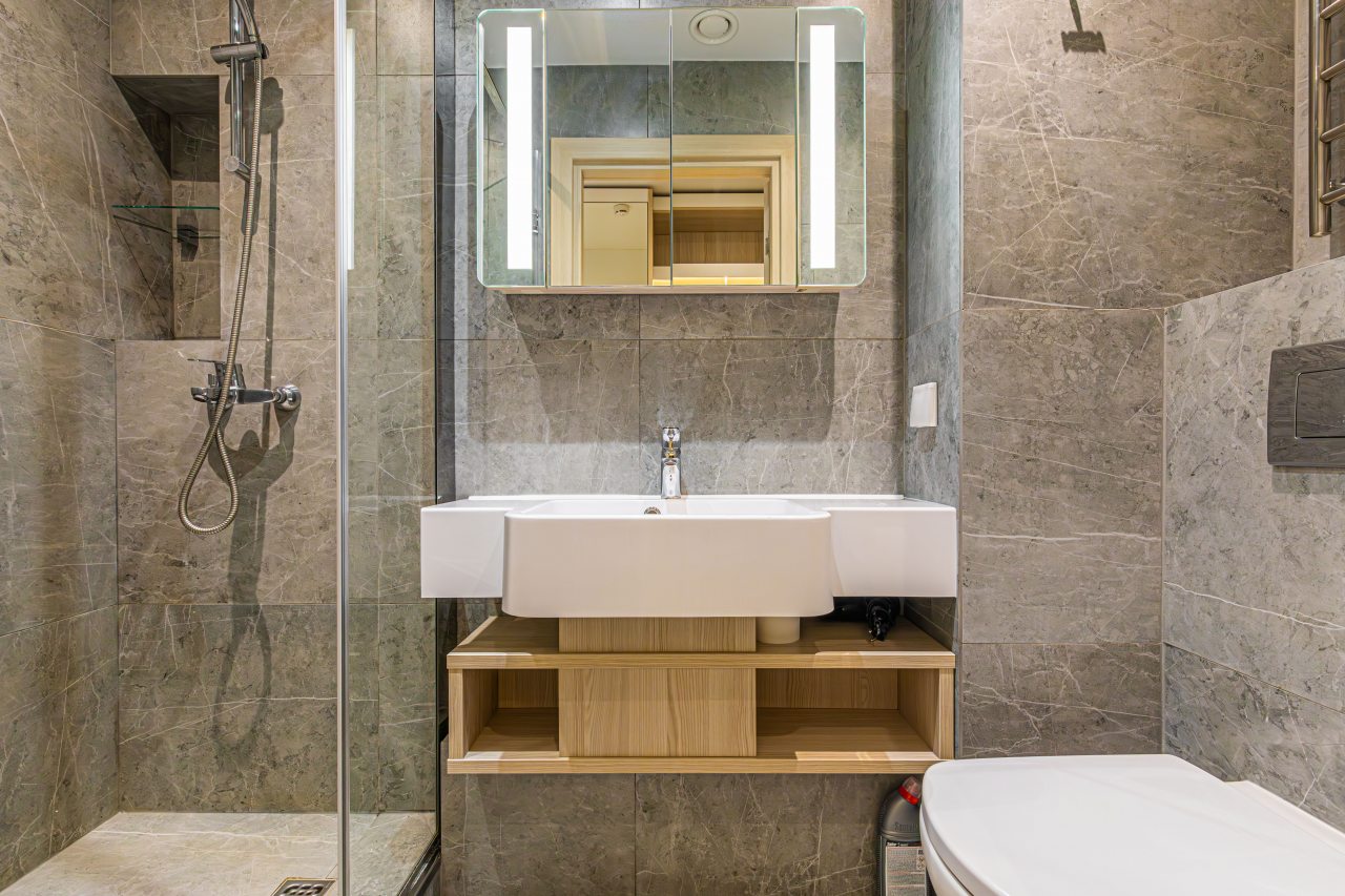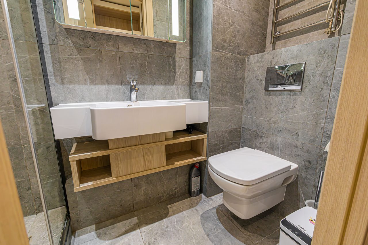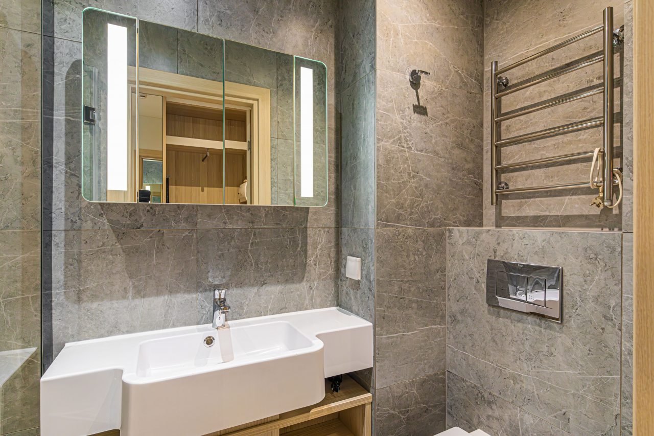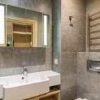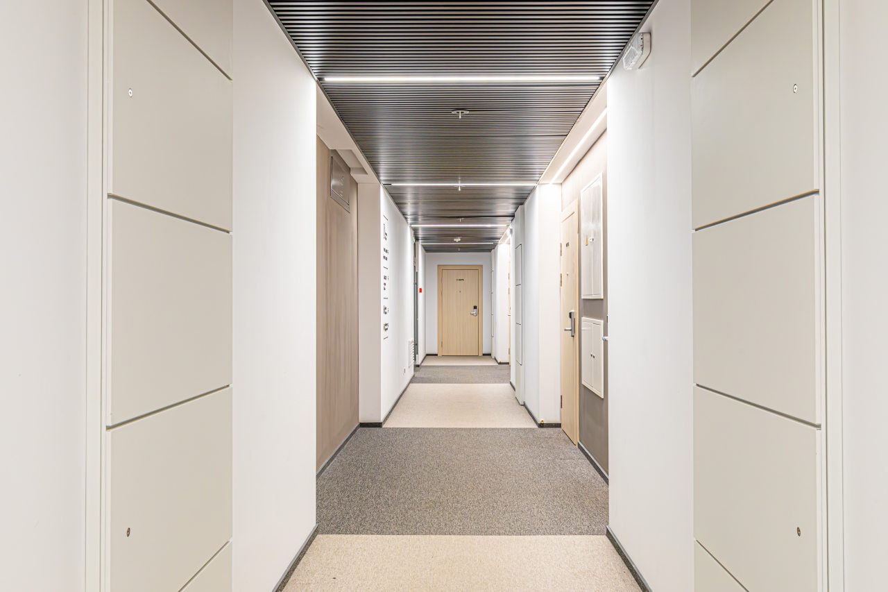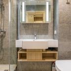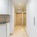 Кухня оборудована стильным гарнитуром, микроволновой печью, электрочайником, варочной панелью, вытяжкой. Пообедать можно в одном из ближайших кафе.