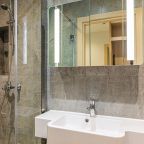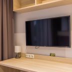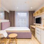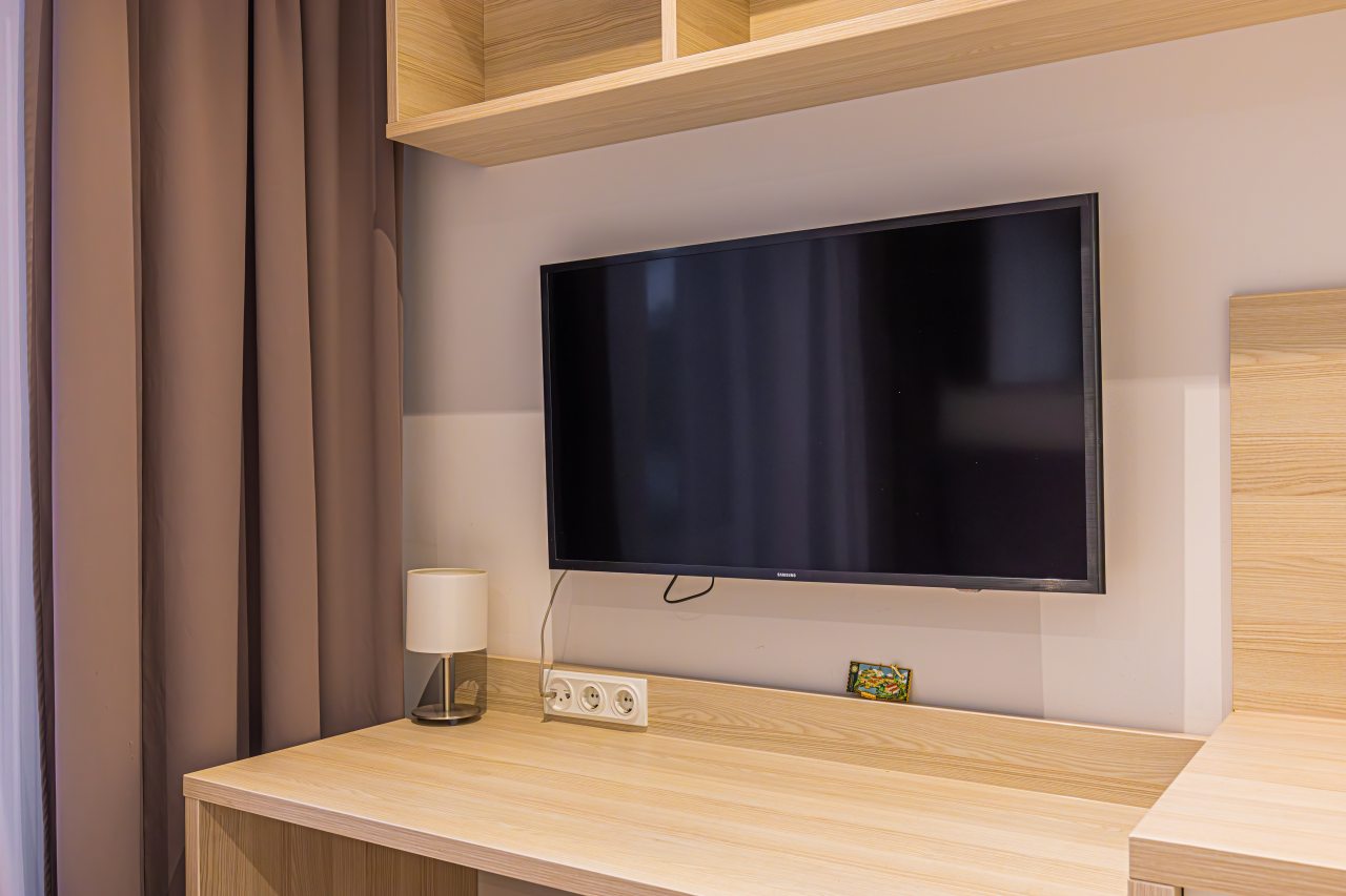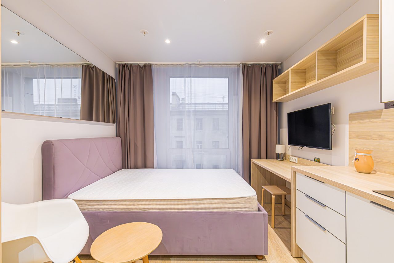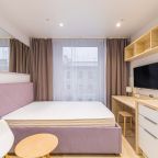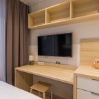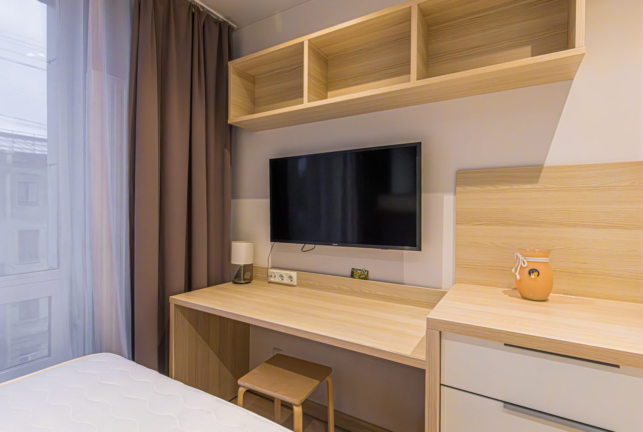 Уютные апартаменты оснащены двуспальной кроватью, затемненными шторами, письменным столом, телевизором с кабельным телевидением, шкафом, высокоскоростным интернетом, кухонной зоной и собственной ванной комнатой с качественной сантехникой.