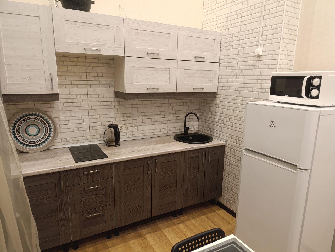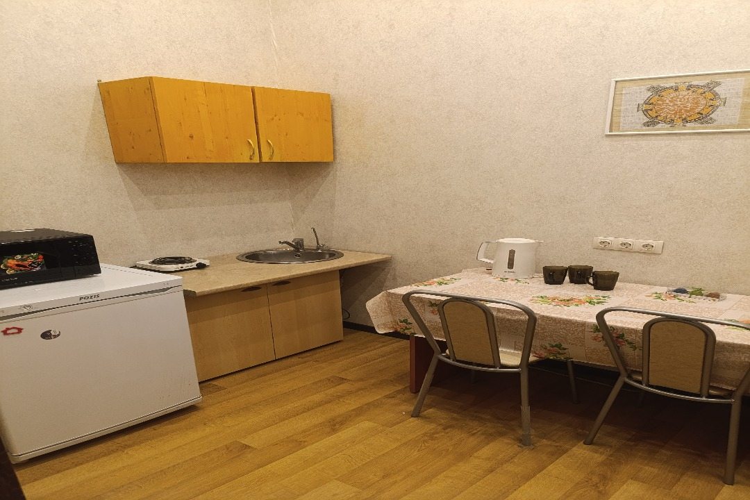 Кухонная зона оборудована электроплитой, микроволновой печью, холодильником, электрочайником, посудой. В шаговой доступности кофейня, ресторан, кафе, бистро, кондитерская, продуктовый магазин.