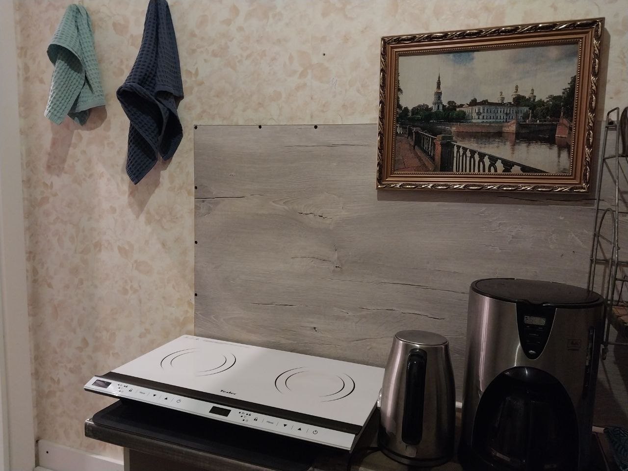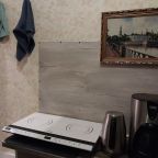 Общая кухонная зона оснащена микроволновой печью, кофемашиной, раковиной, холодильником, электрической плитой, чайником и комплектом посуды. В доступности от апартаментов находится большое количество заведений, где можно вкусно пообедать.