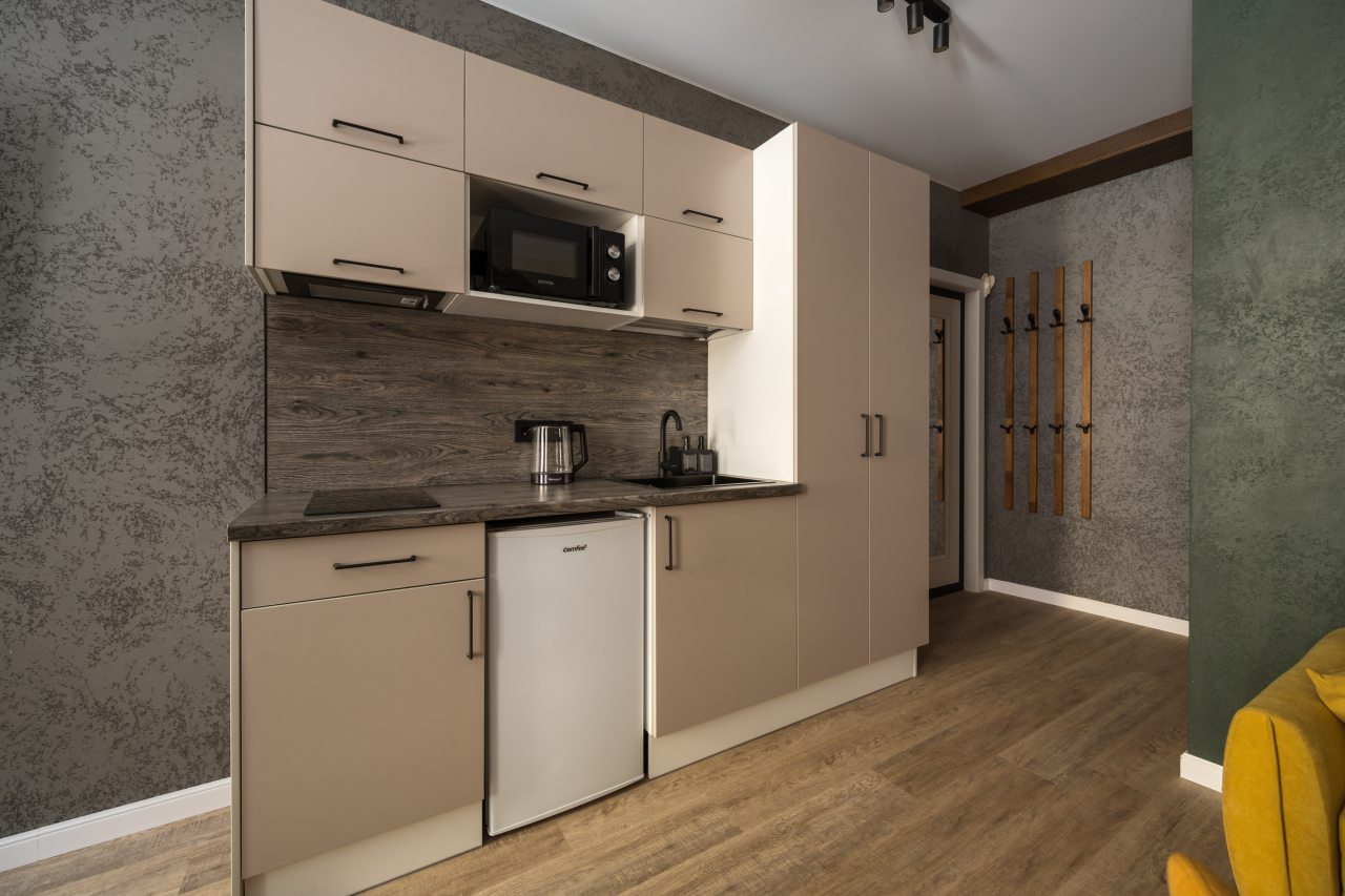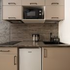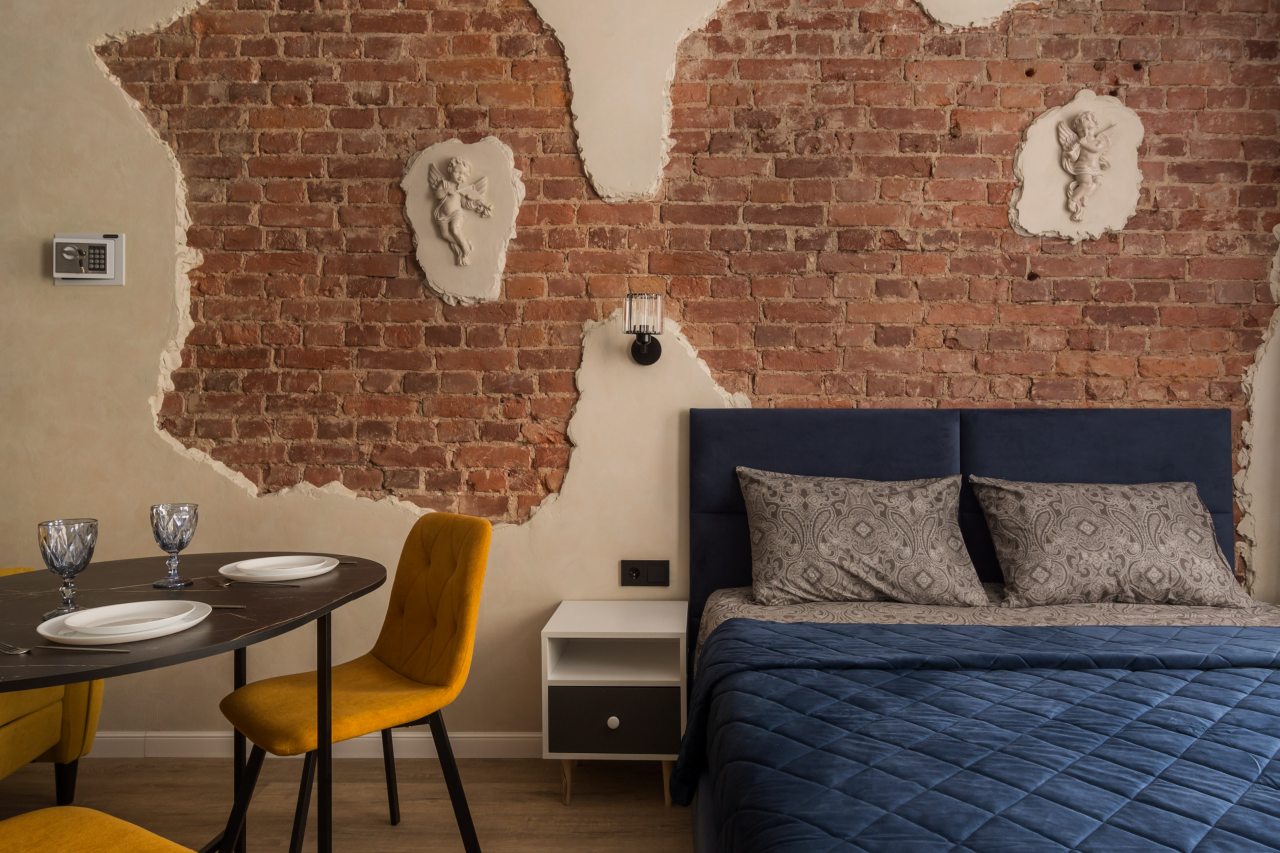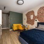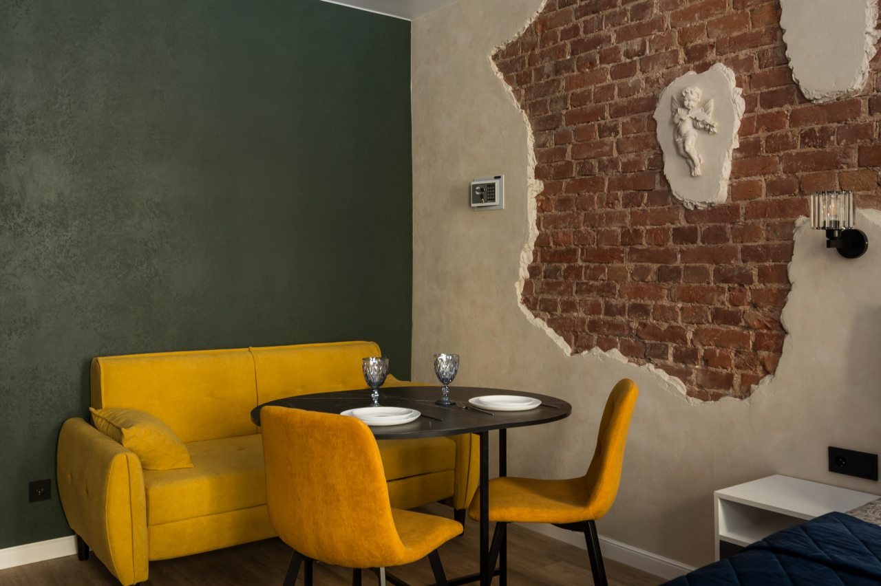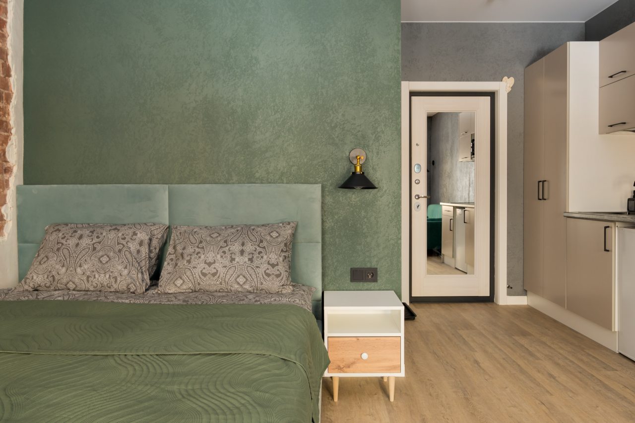 К размещению предлагаются уютные студии с современным ремонтом, которые оборудованы удобными кроватями с чистым комплектом постельного белья, сейфом, диваном, шкафом, телевизором, wi-fi, кухонной зоной и собственной ванной комнатой. Санузел оснащен качественной сантехникой.