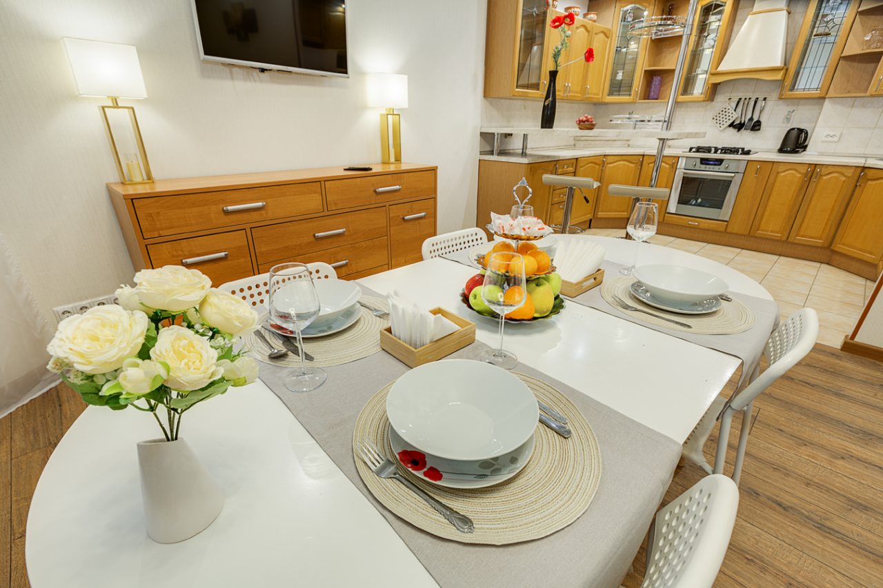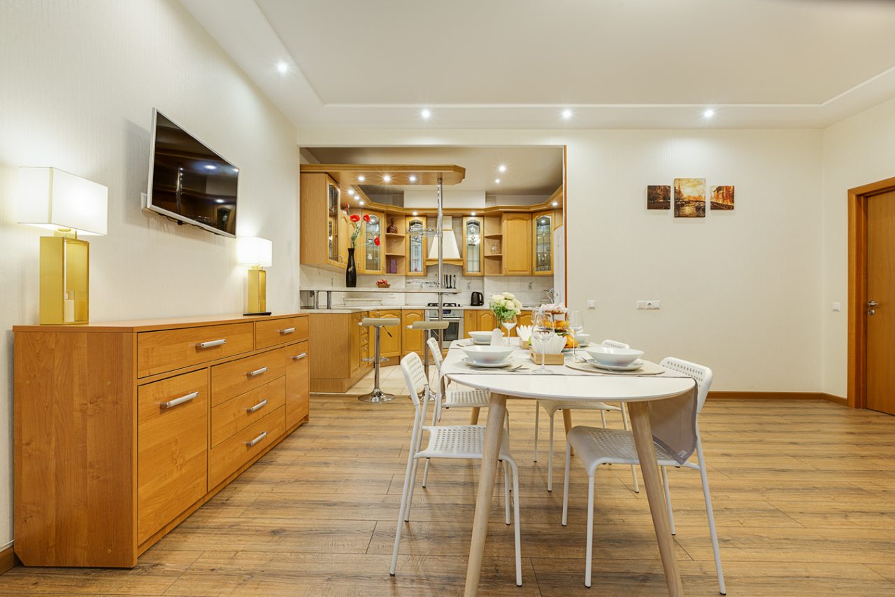 Кухня укомплектована бытовой техникой и посудой. Организовать питание можно за барной стойкой или обеденным столом. В доме работают популярные заведения европейской и азиатской кухни.
