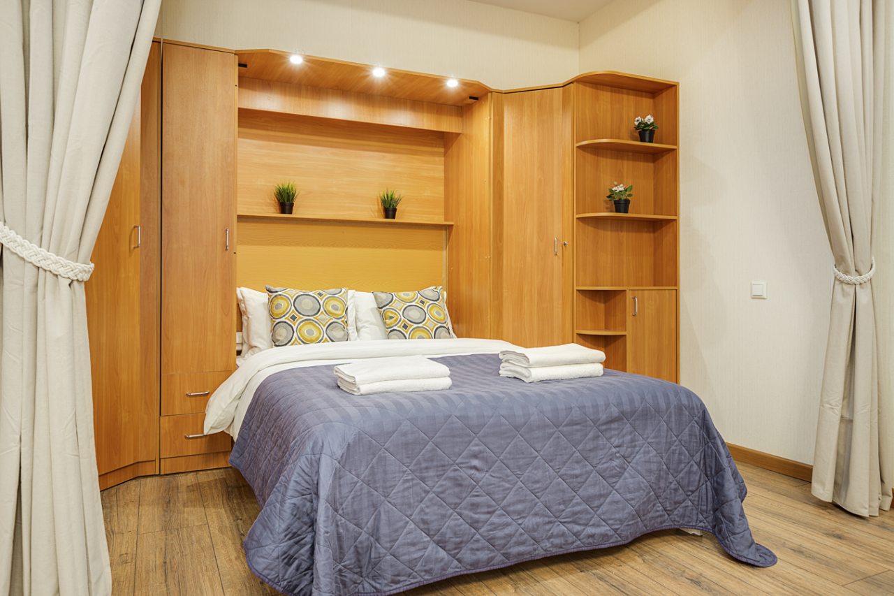 Просторная квартира обустроена двуспальной кроватью и диваном, телевизором, Wi-Fi, феном, стиральной машиной. Предоставляется набор полотенец и средств гигиены.