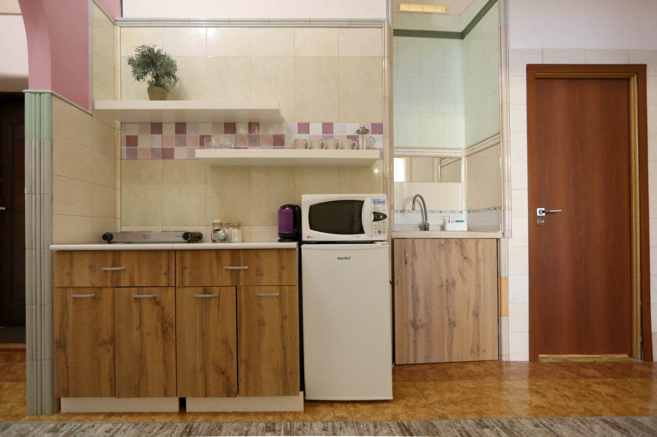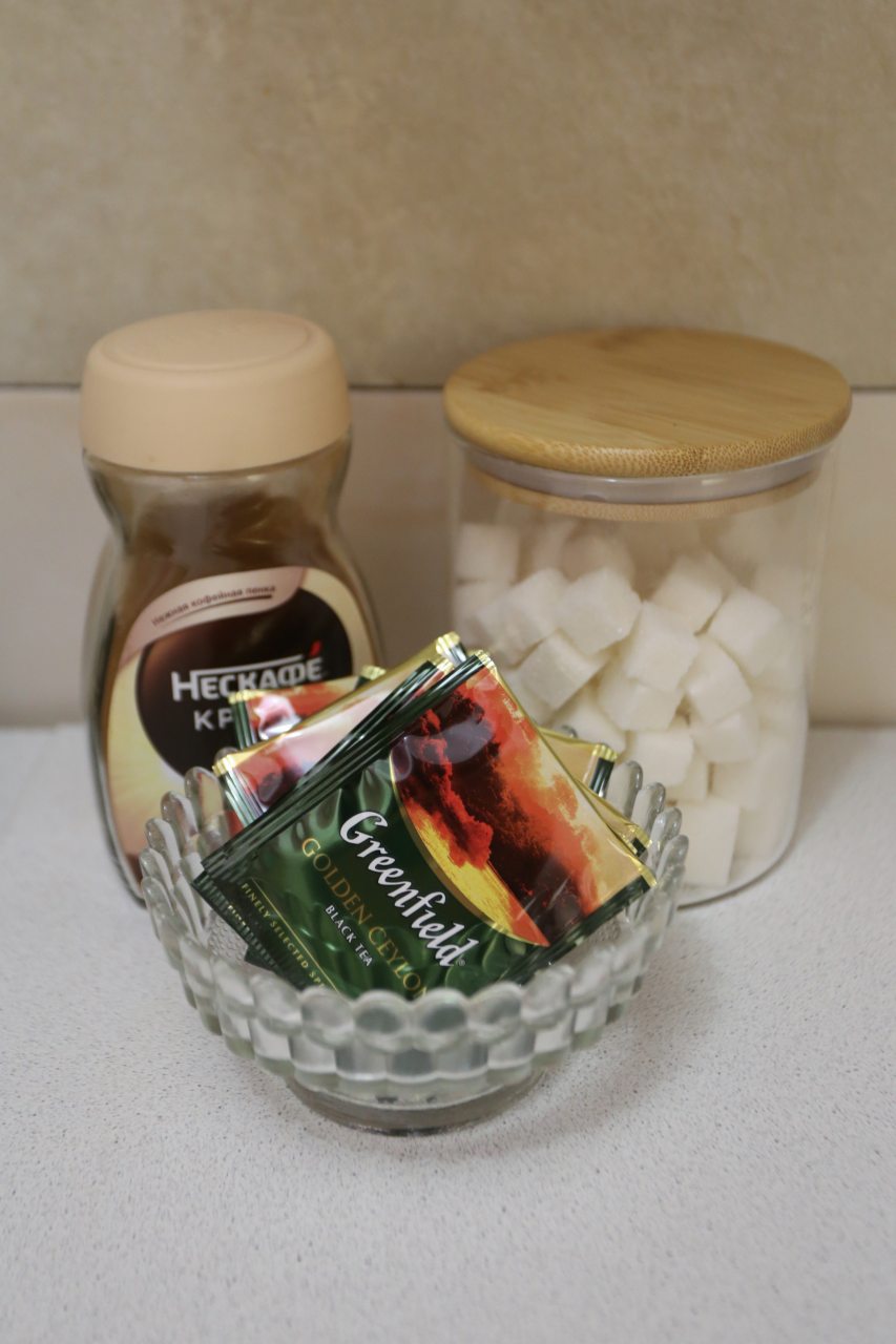 Кухонная зона укомплектована чайным набором, плитой, холодильником и СВЧ-печью, чтобы вы могли порадовать себя любимой едой и напитками в любое время.