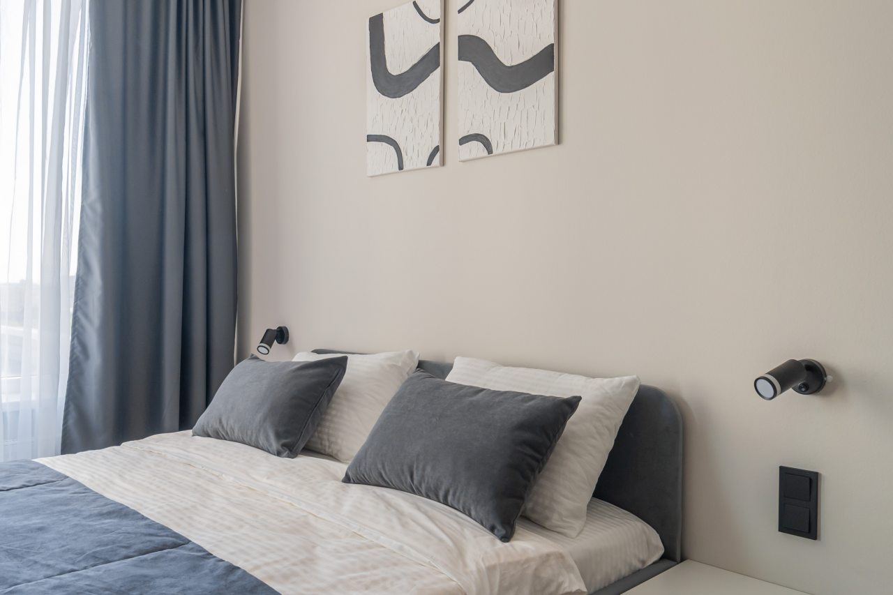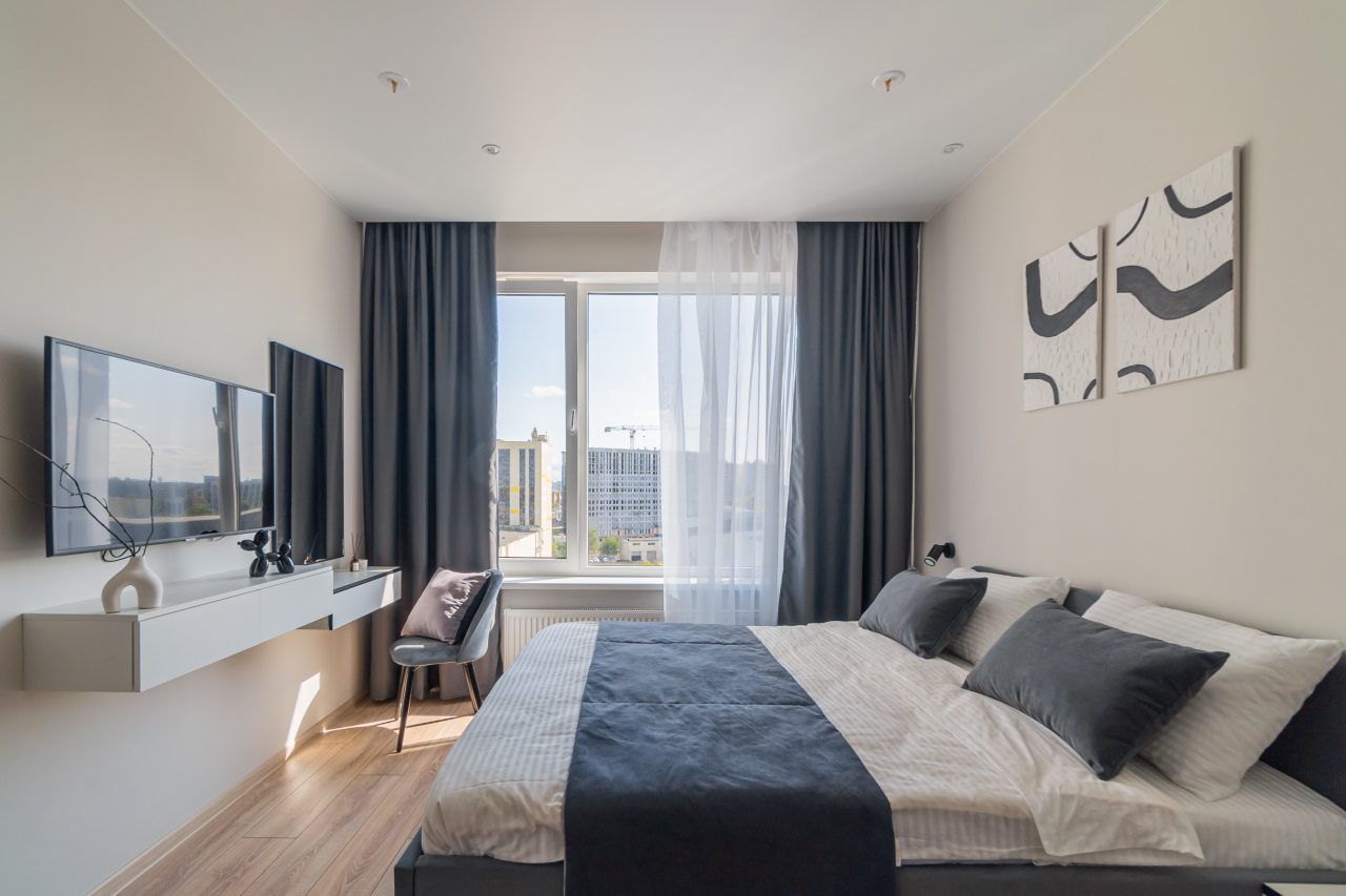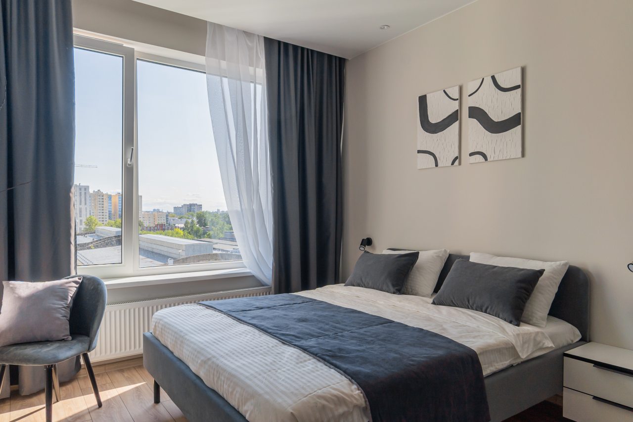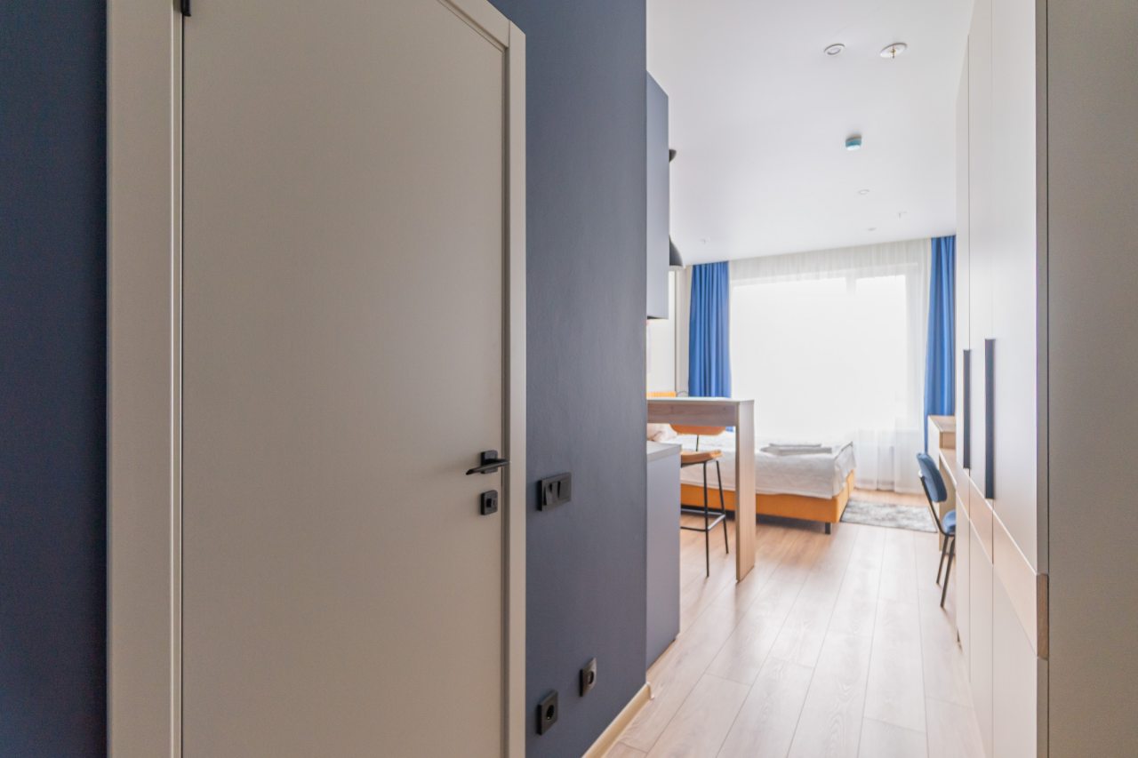 К пребыванию предложены комфортабельные апартаменты, выполненные в современном стиле с использованием приятных оттенков цветовой палитры. Они оснащены: удобной двуспальной кроватью с белоснежным постельным бельем, телевизором, столом, прикроватными тумбочками, ванной комнатой. При необходимости можно воспользоваться гладильными принадлежностями.
