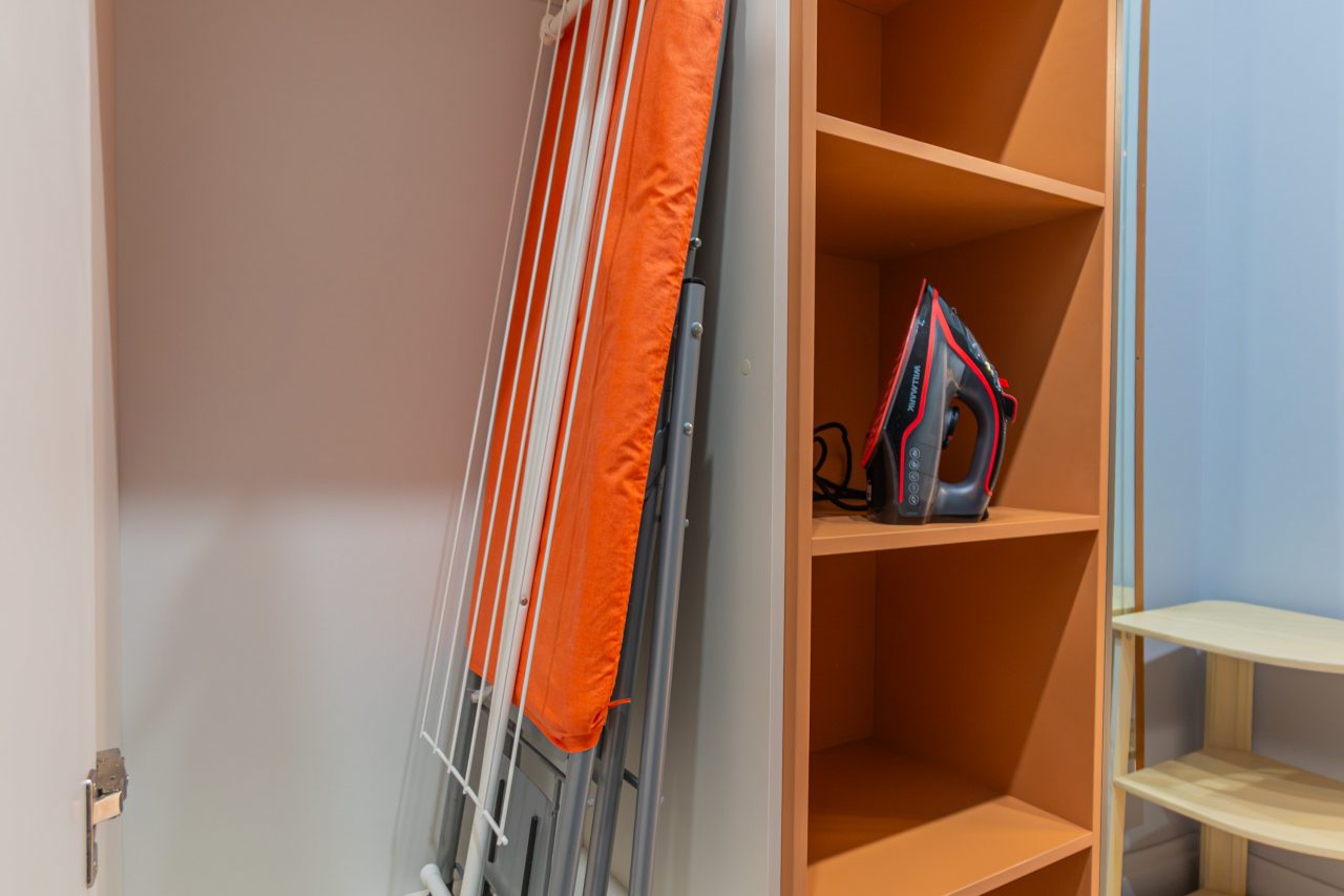 Внутри всё продумано для комфортного отдыха и проживания, включая кровати с удобными матрасами, плотные шторы для качественного сна, вместительные шкафы, стиральную машину, кондиционер, мягкий диван, а также полотенца, фен, гигиенические средства и душевую.