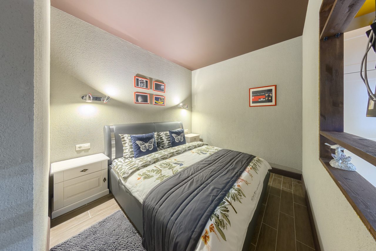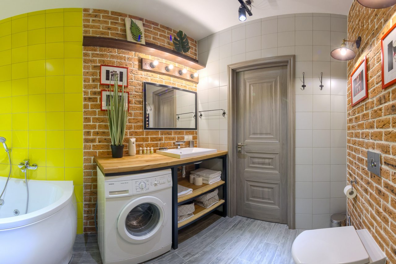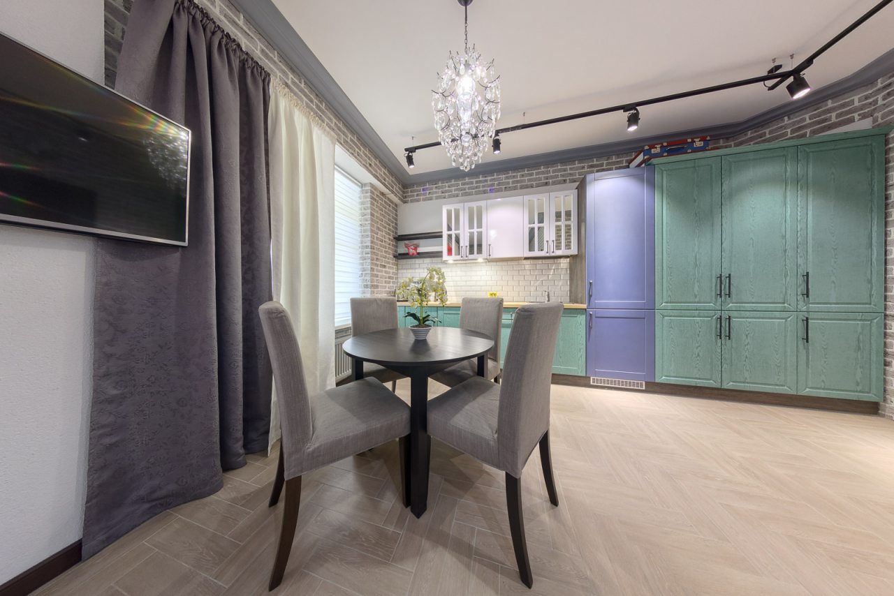 Для проживания предлагаются различные по стилистике апартаменты с яркими акцентами. Внутри каждых — всё необходимое для комфортного отдыха и проживания, в том числе удобные кровати, стиральная машина, мебель для хранения вещей. В санузле может быть душевая или ванна.
