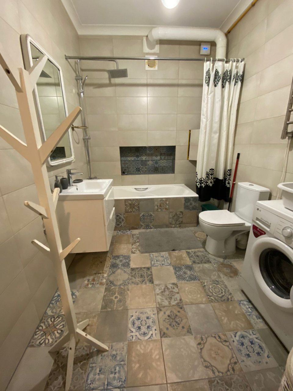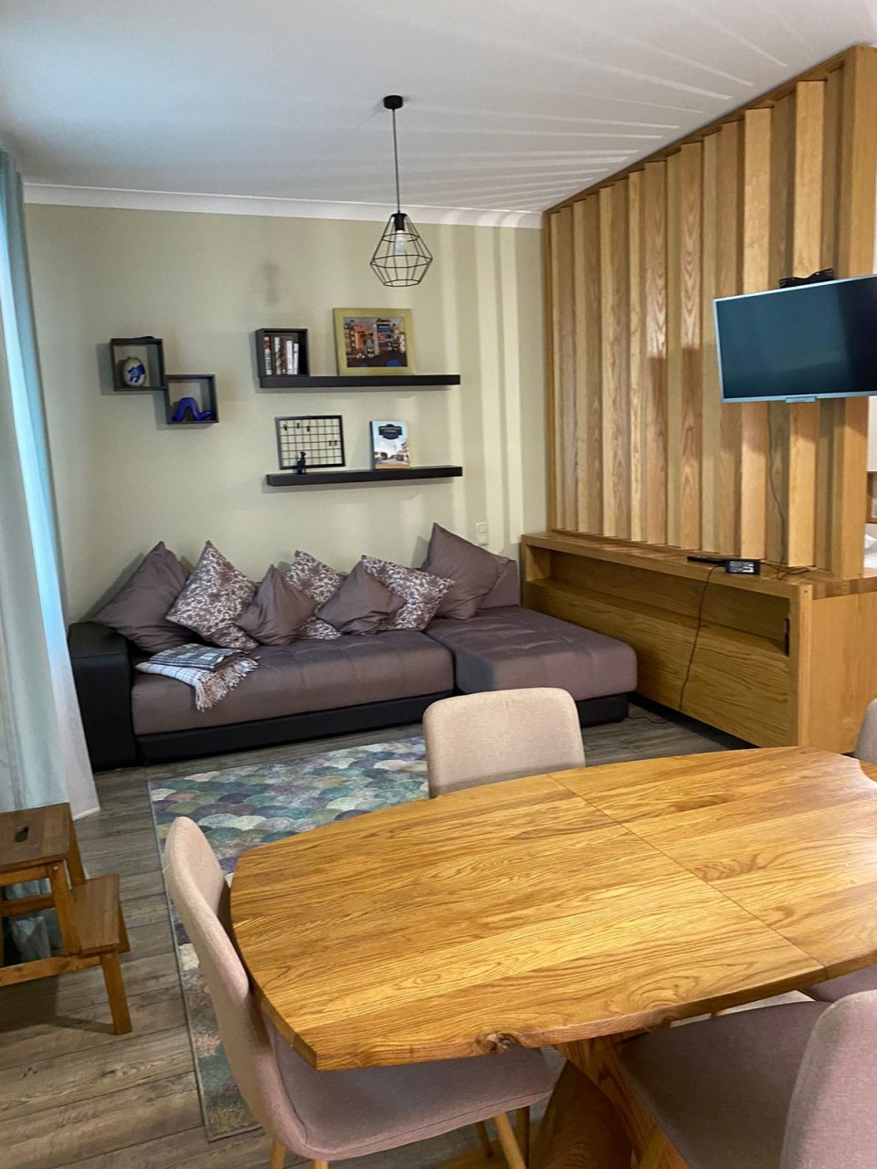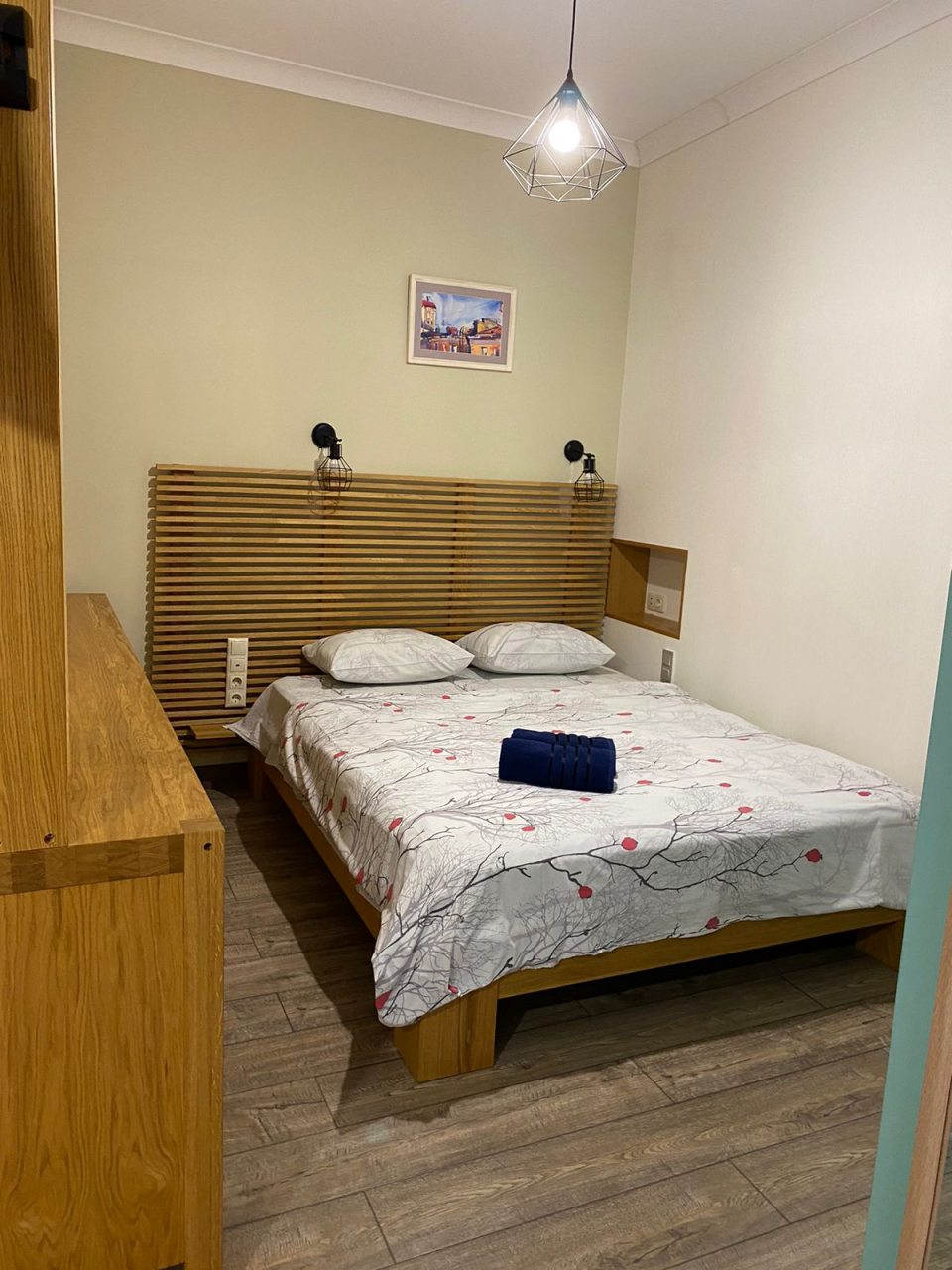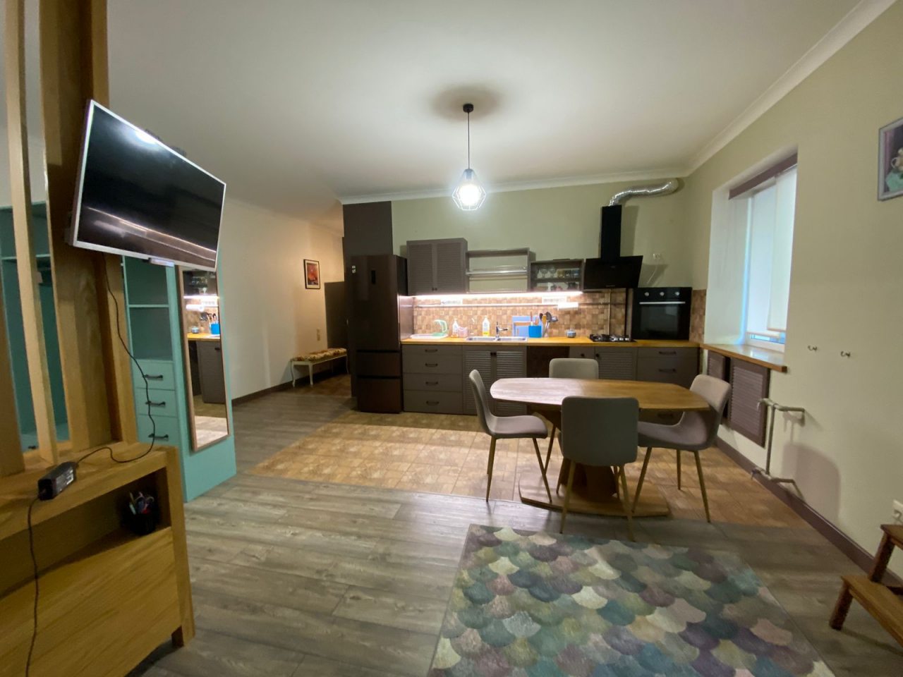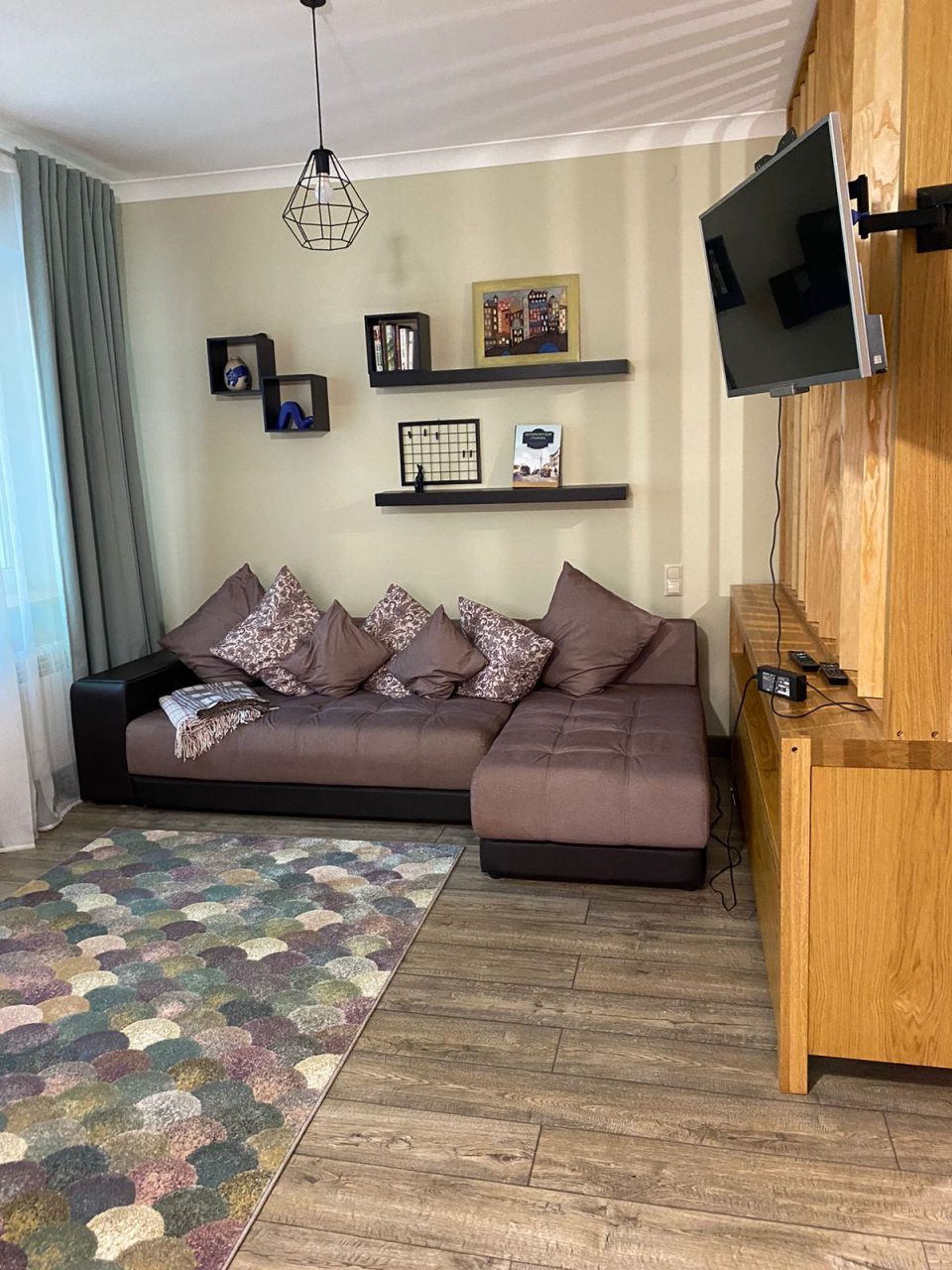 Это хороший вариант для размещения небольшой компанией, так как в наличии есть двуспальная кровать и удобный диван, а также телевизор, полотенца, стиральная машина, полноценная ванна.