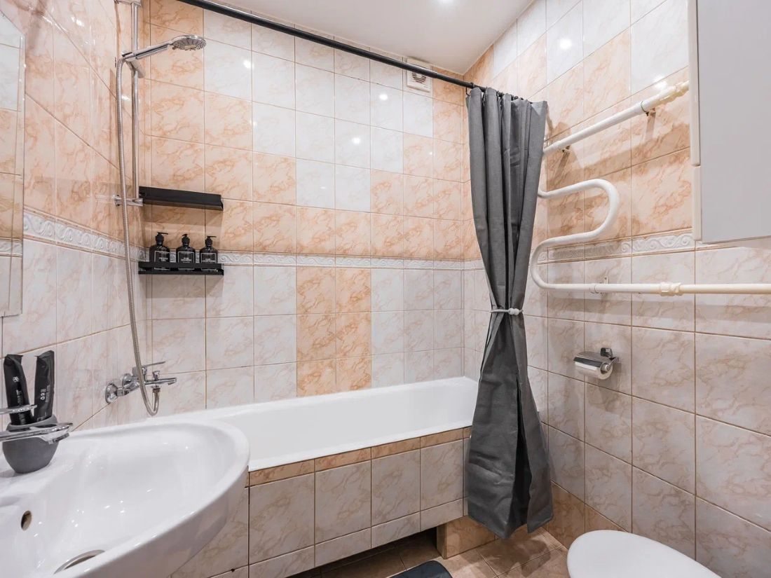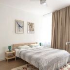 Внутри имеется большая и удобная двуспальная кровать, кондиционер, шкаф, прикроватные лампы, плотные шторы, мягкий диван, ЖК-телевизор, стиральная машина, а также ванная комната со средствами для личной гигиены.