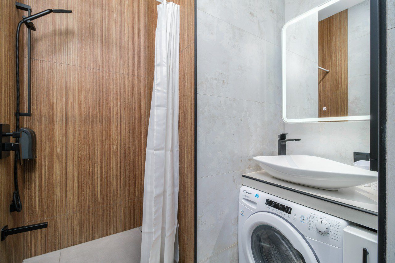 Уютные апартаменты с современным ремонтом оборудованы удобной кроватью с комплектом чистого постельного белья, шкафом для хранения вещей, прикроватной мебелью, кондиционером, гладильными принадлежностями, телевизором и точкой высокоскоростного интернета. Ванная комната укомплектована сантехникой, водонагревателем, стиральной машиной, средствами личной гигиены и феном.