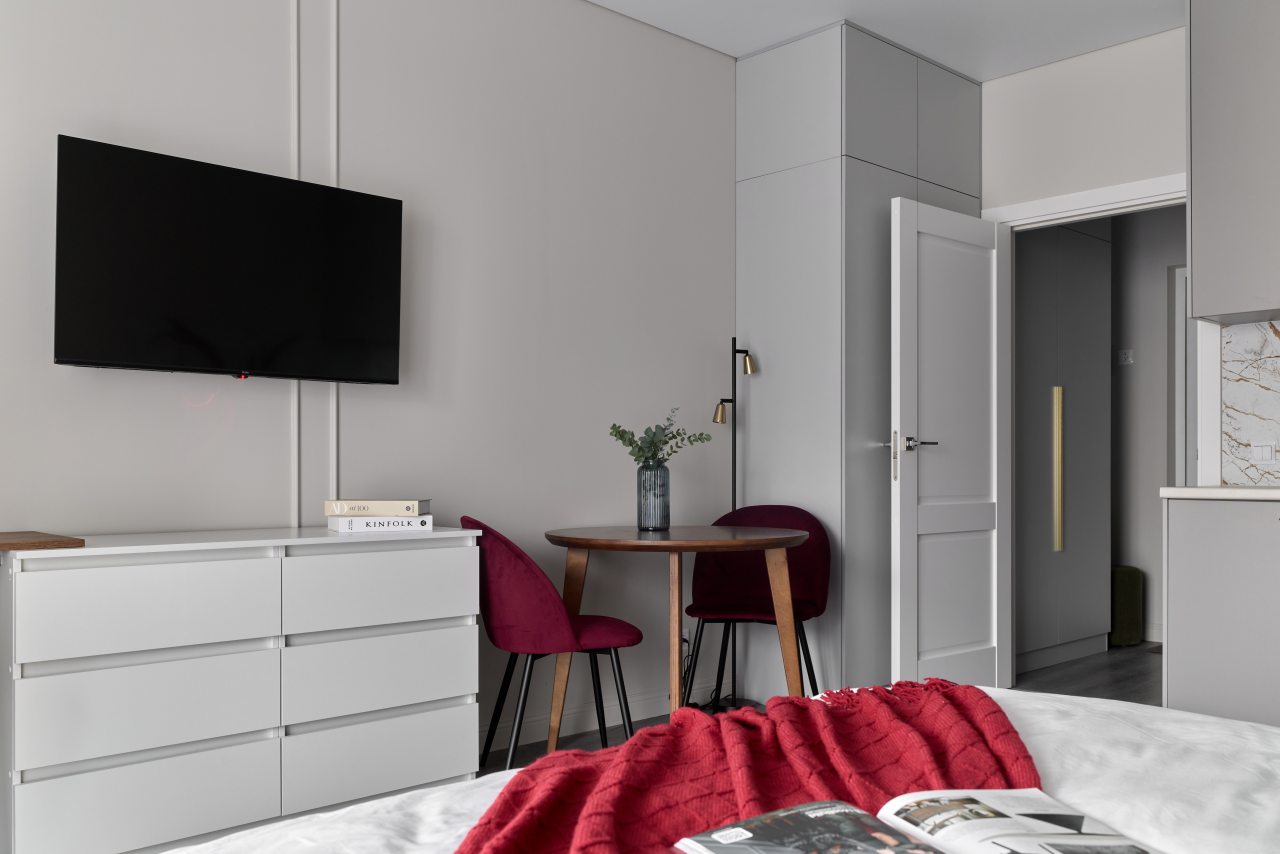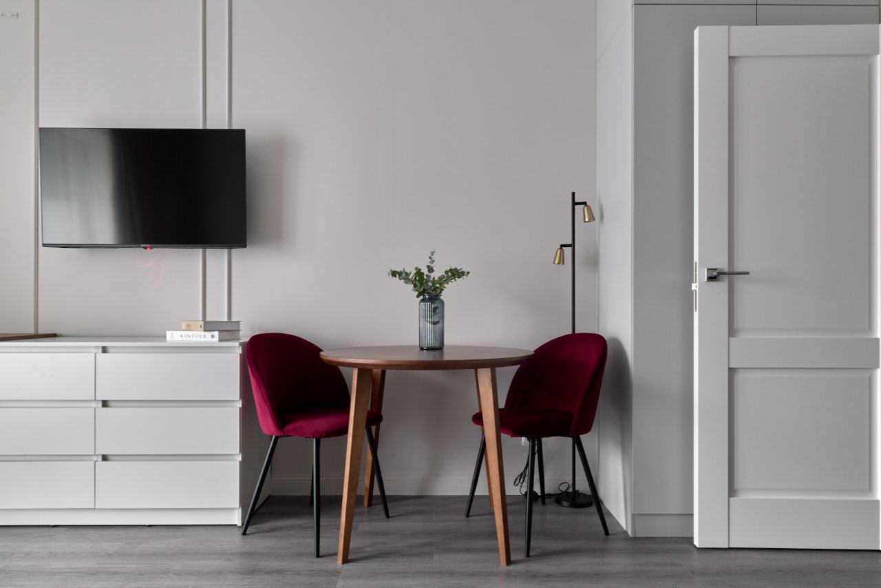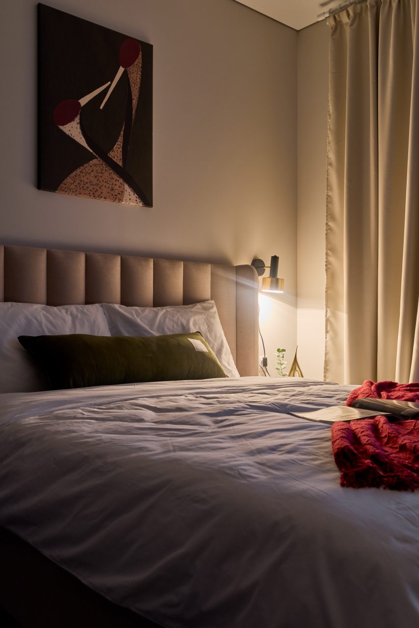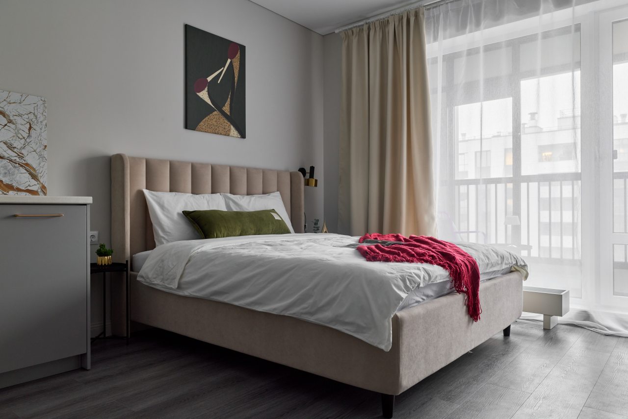 Апартаменты с современным ремонтом оснащены удобной двуспальной кроватью, розетками возле спального места, письменным столом, комодом, ЖК-телевизором, wi-fi, балконом с видом на внутренний двор и др. Санузел оборудован комплектом качественной сантехники и стиральной машиной.