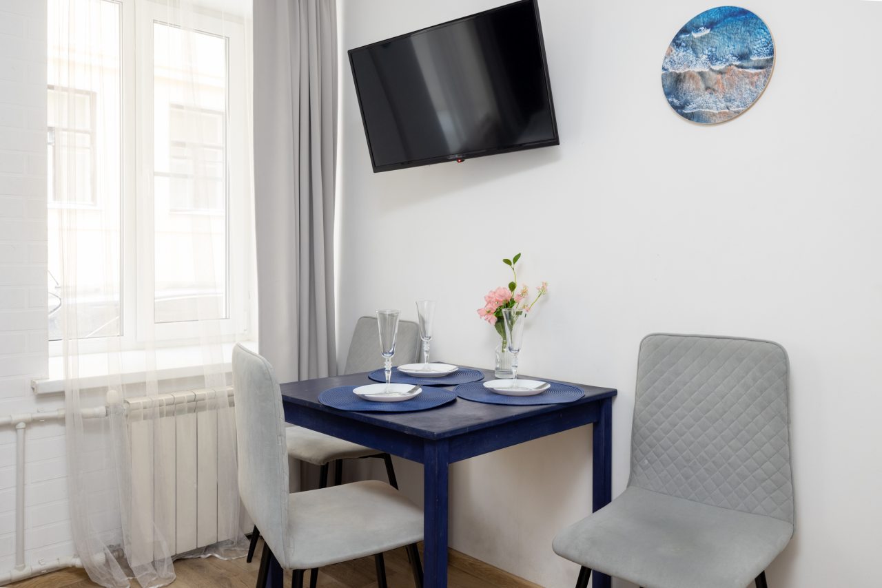 Отличная обстановка в квартире. Подойдет для компании путешественников. Тут можно самому готовить себе завтраки и другую еду, холодильник есть, стабильный интернет. Хочется отметить и приемлемую цену, которую установили владельцы за ночь съема. Хороший вариант для Питера.
