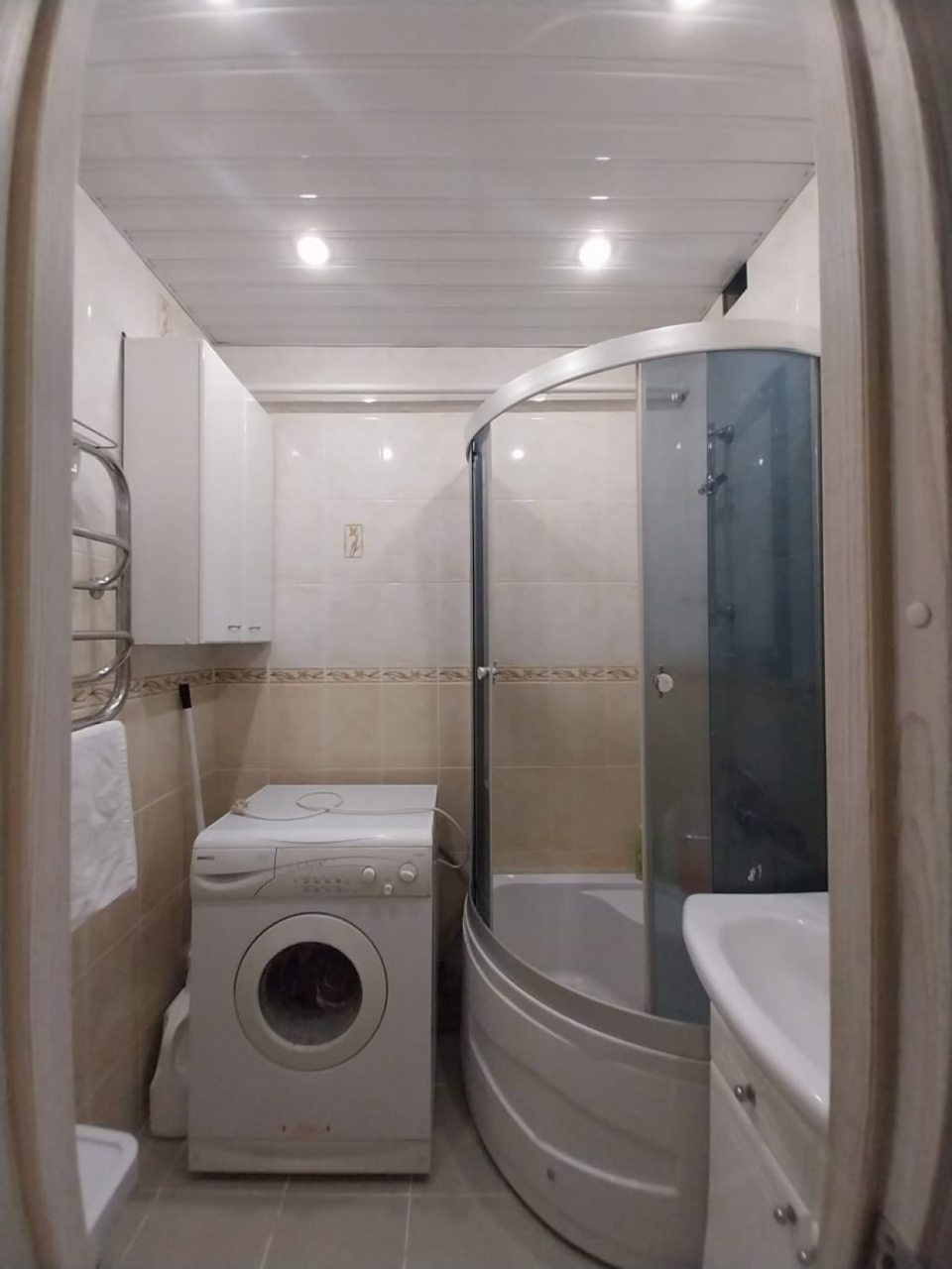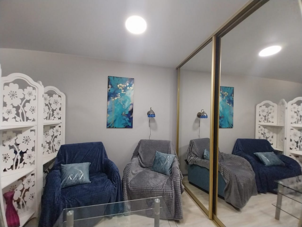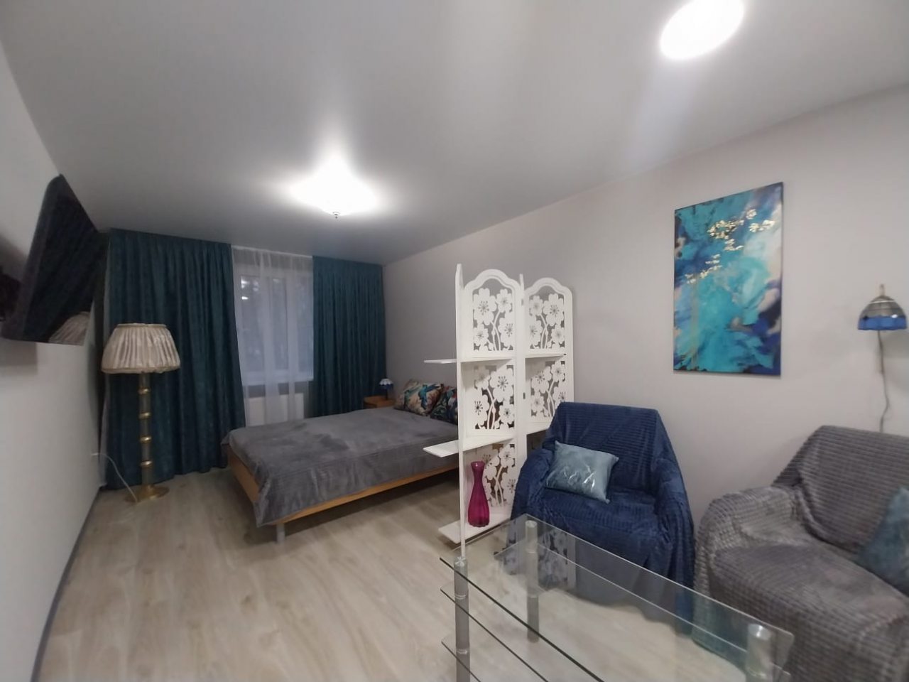 Внутри гостей ожидает удобная двуспальная кровать, затемненные шторы для качественного сна, телевизор, мягкие кресла, вместительный шкаф-купе, раздельный санузел с душевой и стиральной машиной.
