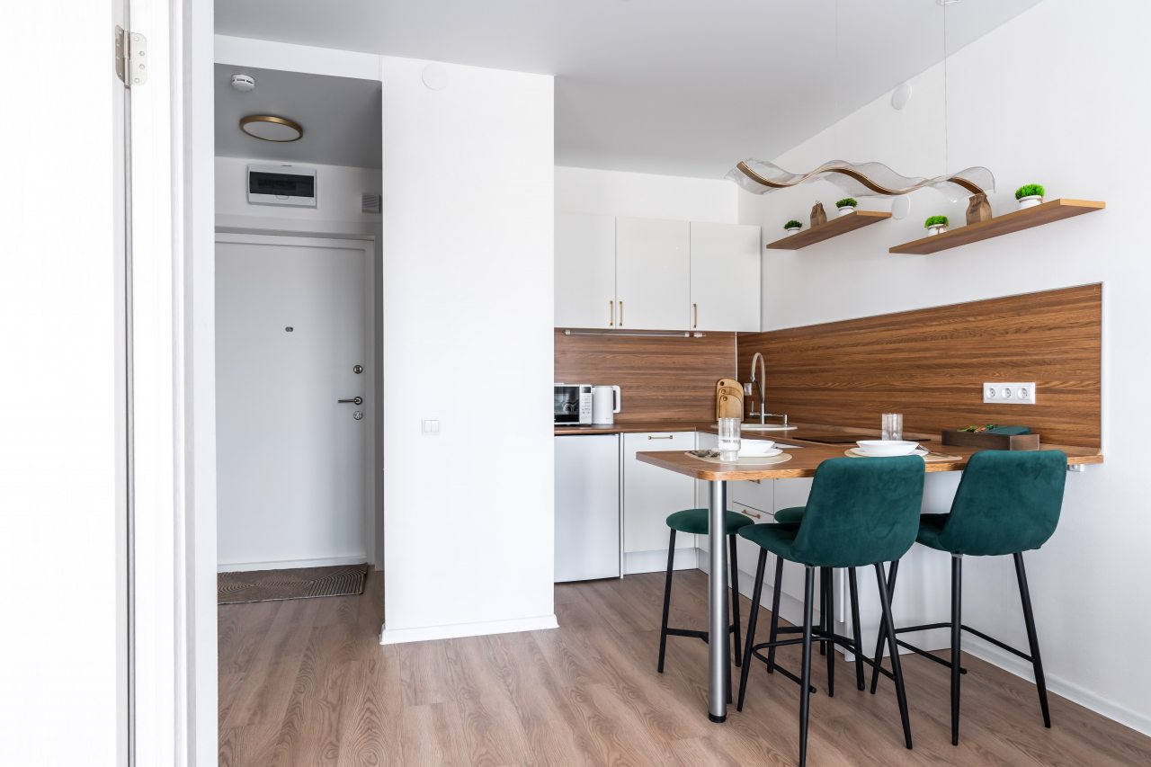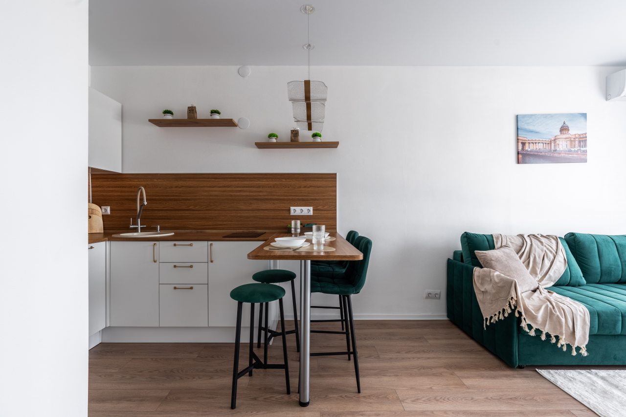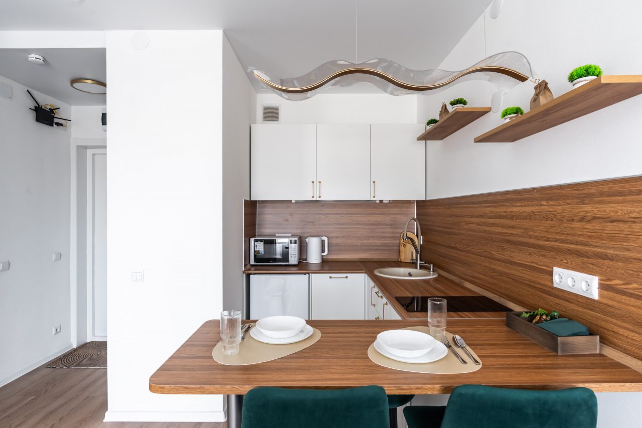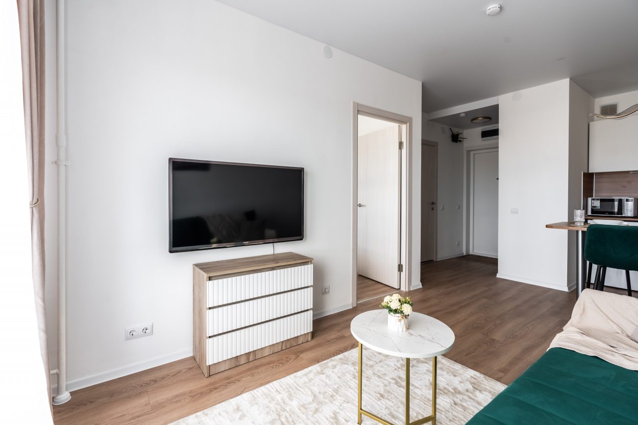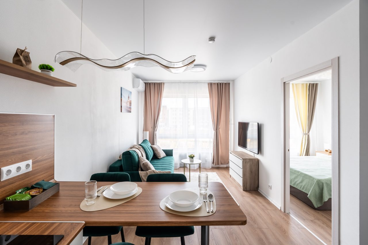 Стильные, красивые, современные, чистые, уютные, комфортные для проживания - все это про данные апартаменты. Отдельная радость - это посудомоечная машина. В целом пространство очень эргономичное, каждый предмет на своем месте. Расположение для меня было удобным.