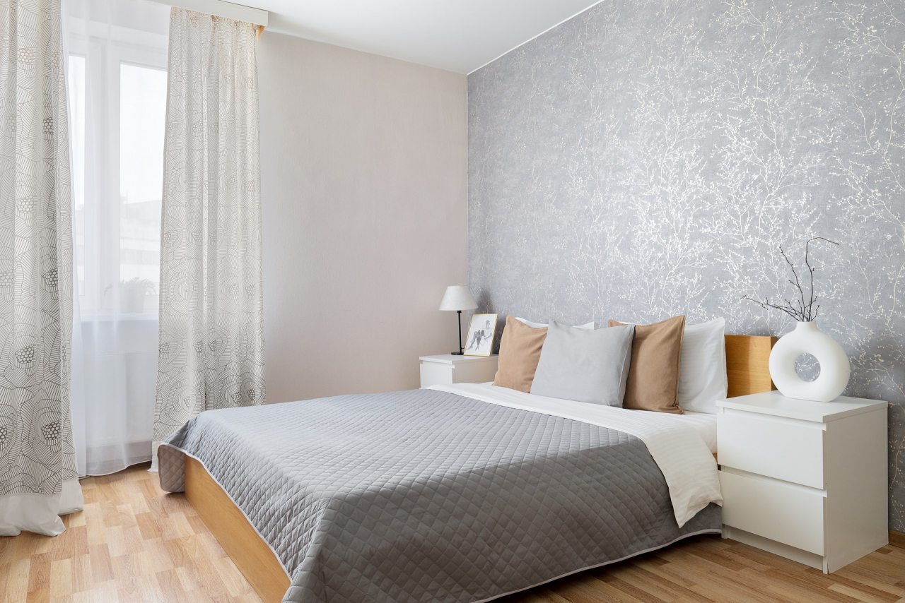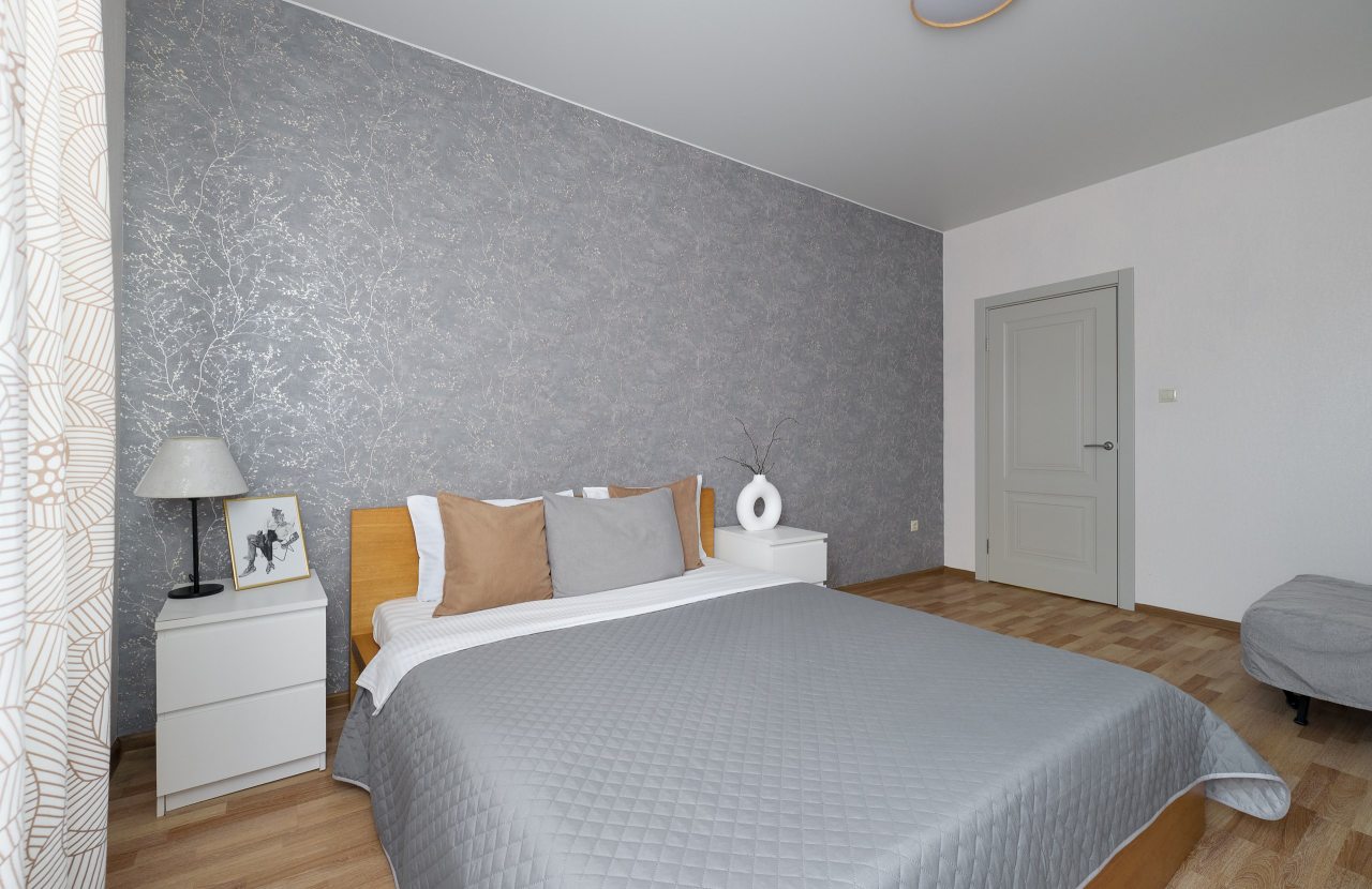 Просторные однокомнатные апартаменты с современным ремонтом оснащены всем необходимым для проживания. Мягкая двуспальная кровать и кресло, тумбочки, вместительная гардеробная. Предоставлен телевизор и Wi-Fi. Санузел раздельный, в ванной комнате установлена стиральная машина.