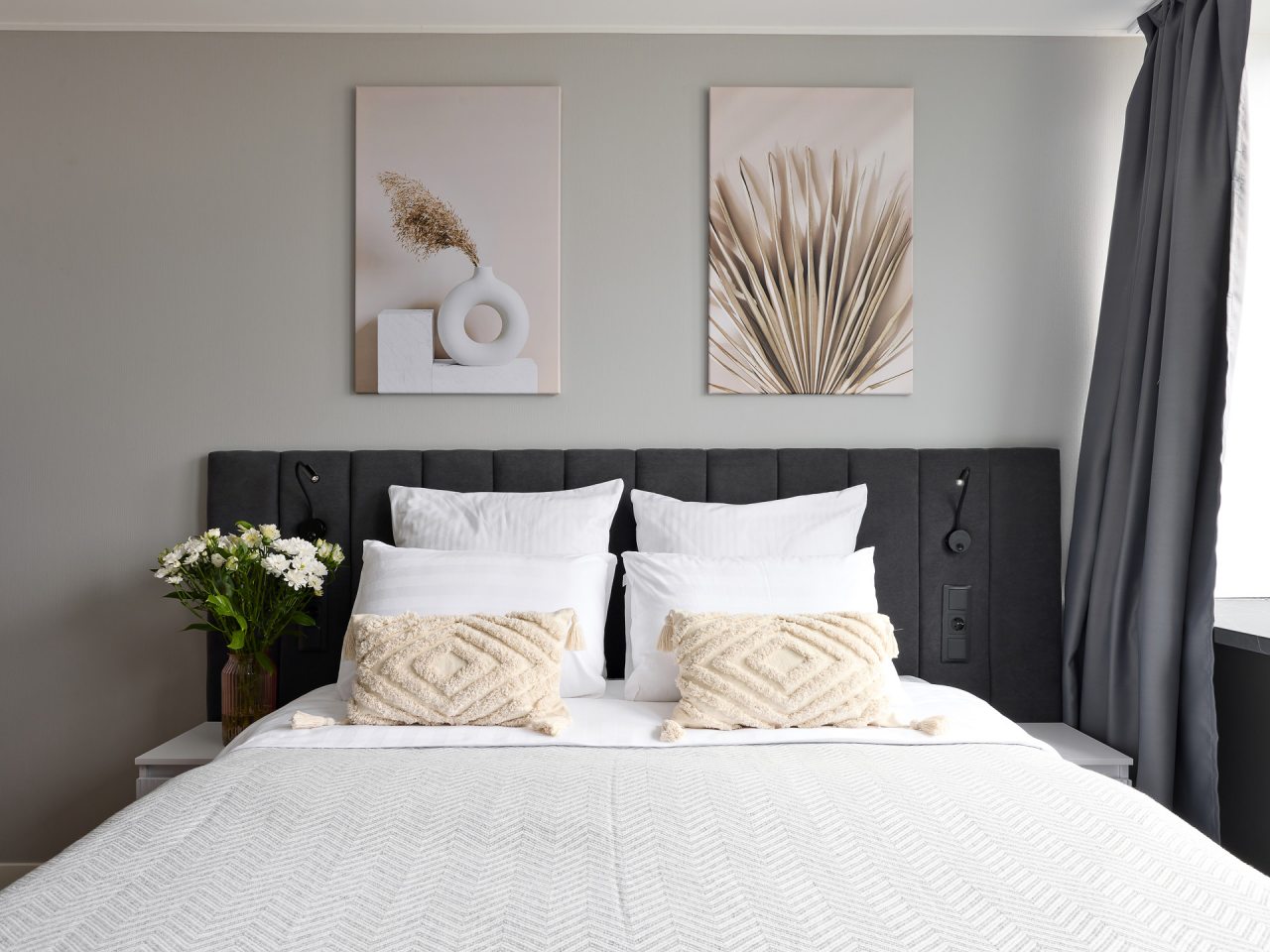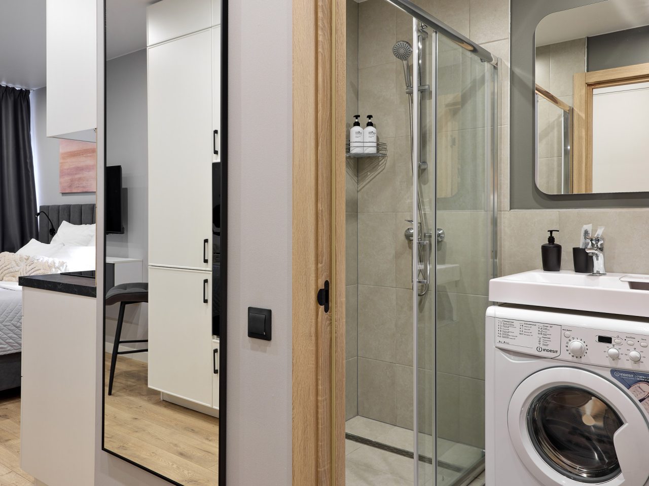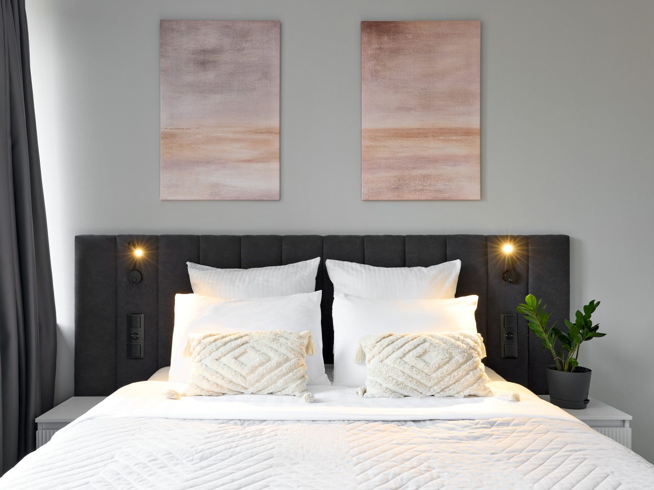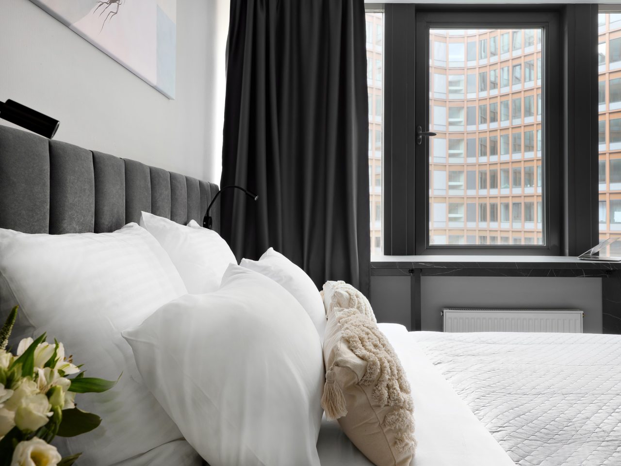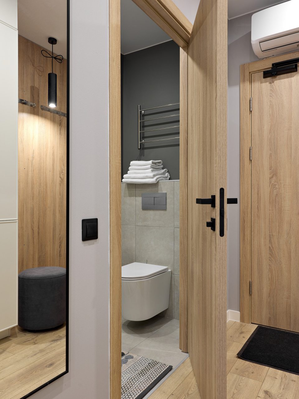 Внутри вас ожидает стильный дизайн, удобная двуспальная кровать с мягким изголовьем, затемнённые шторы, широкий подоконник, который может выступать рабочей и обеденной зоной, зеркало, сплит-система, ЖК-телевизор, а также санузел с необходимыми туалетно-косметическими средствами и стиральной машиной.