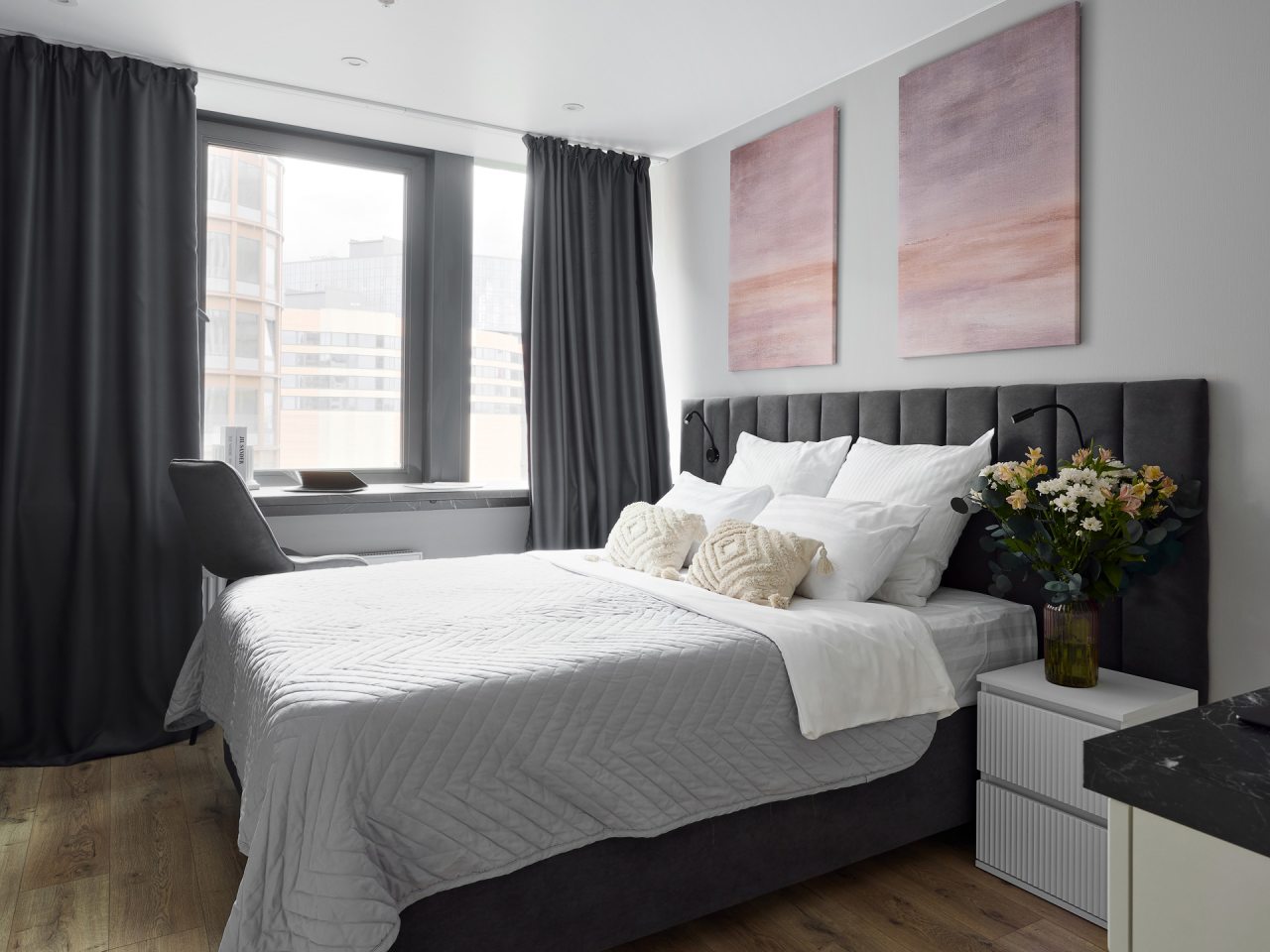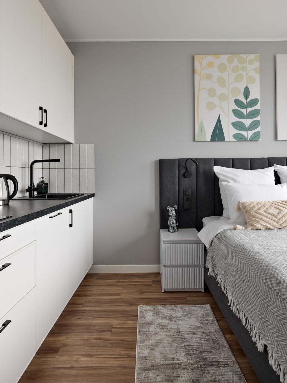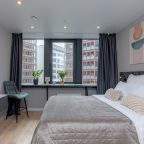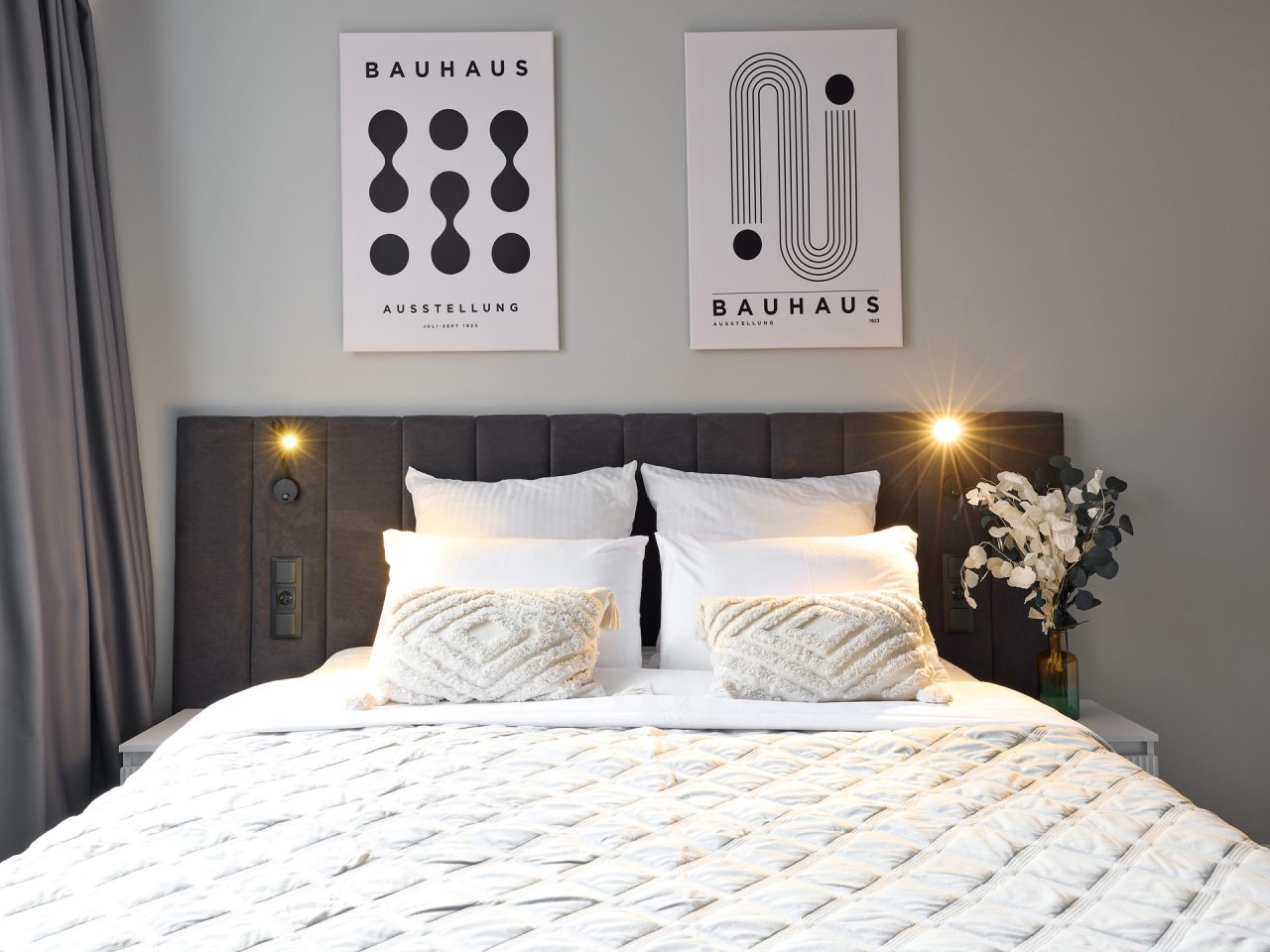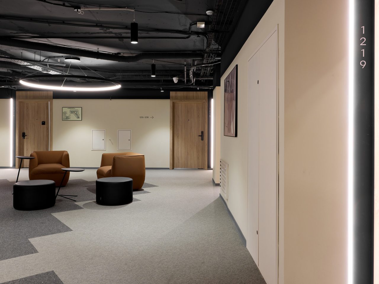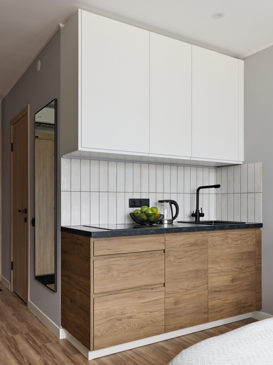 Внутри вас ожидает стильный дизайн, удобная двуспальная кровать с мягким изголовьем, затемнённые шторы, широкий подоконник, который может выступать рабочей и обеденной зоной, зеркало, сплит-система, ЖК-телевизор, а также санузел с необходимыми туалетно-косметическими средствами и стиральной машиной.