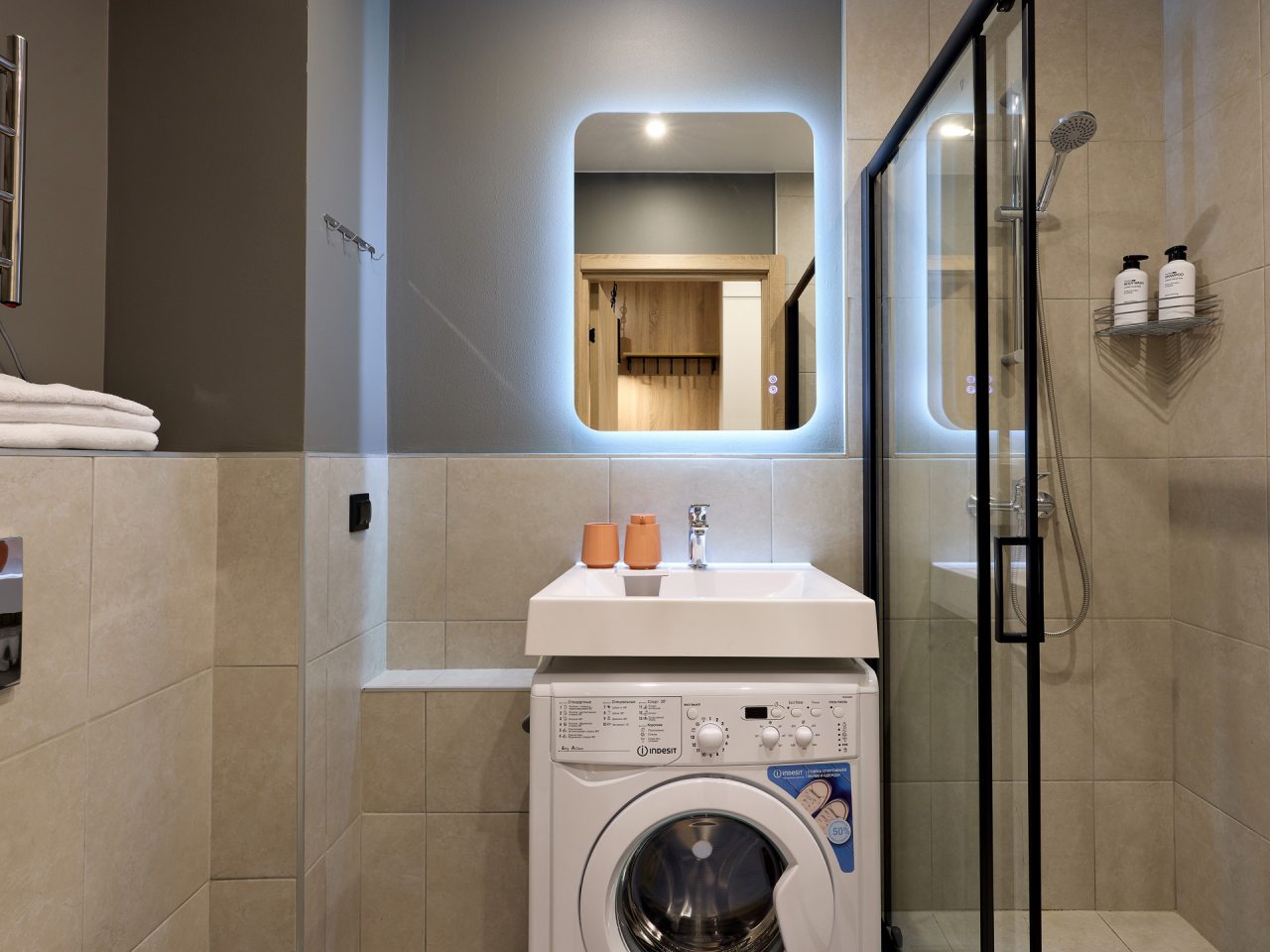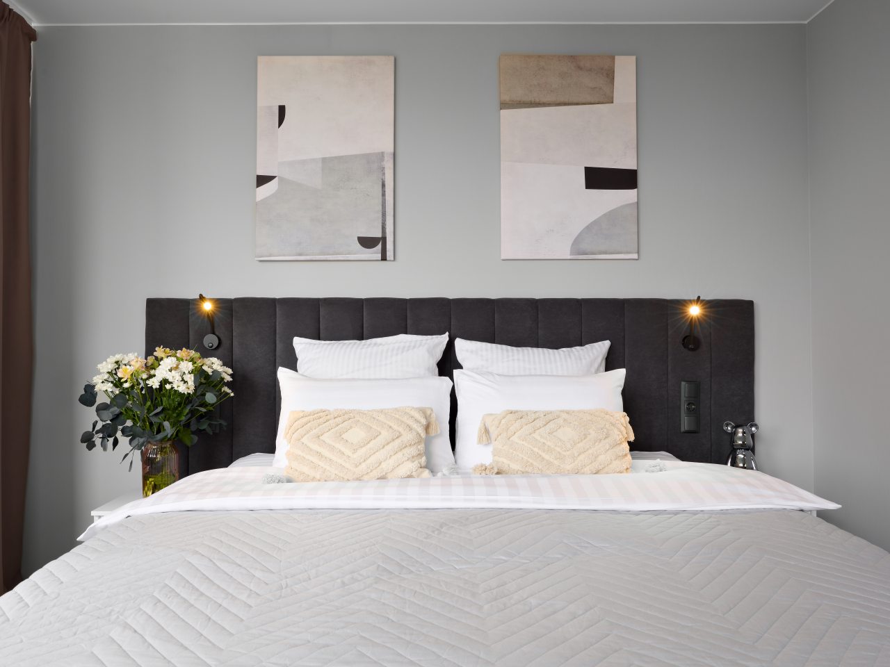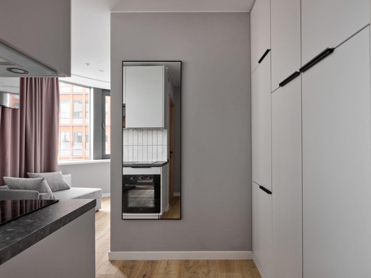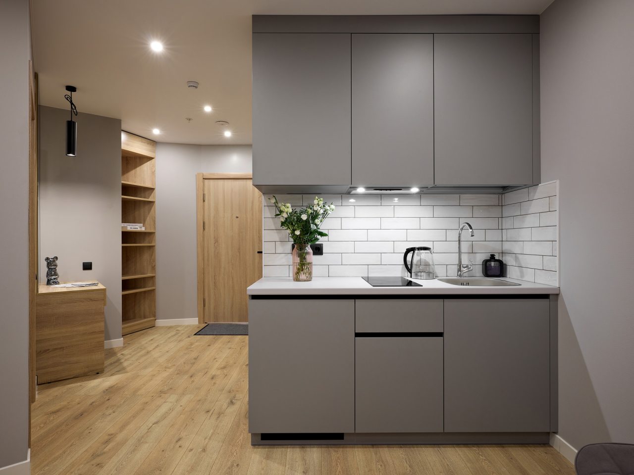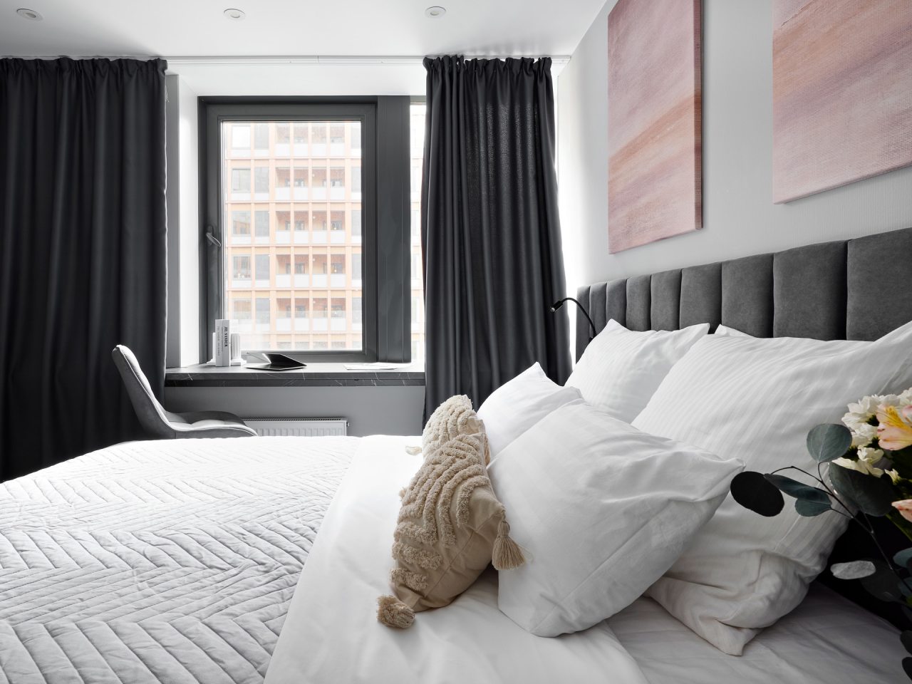Внутри вас ожидает стильный дизайн, удобная двуспальная кровать с мягким изголовьем, затемнённые шторы, широкий подоконник, который может выступать рабочей и обеденной зоной, зеркало, сплит-система, ЖК-телевизор, а также санузел с необходимыми туалетно-косметическими средствами и стиральной машиной.
