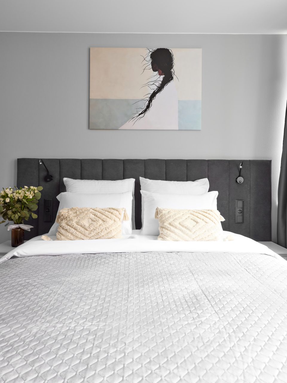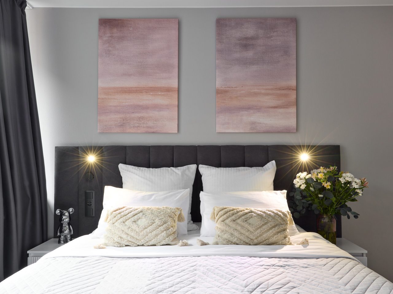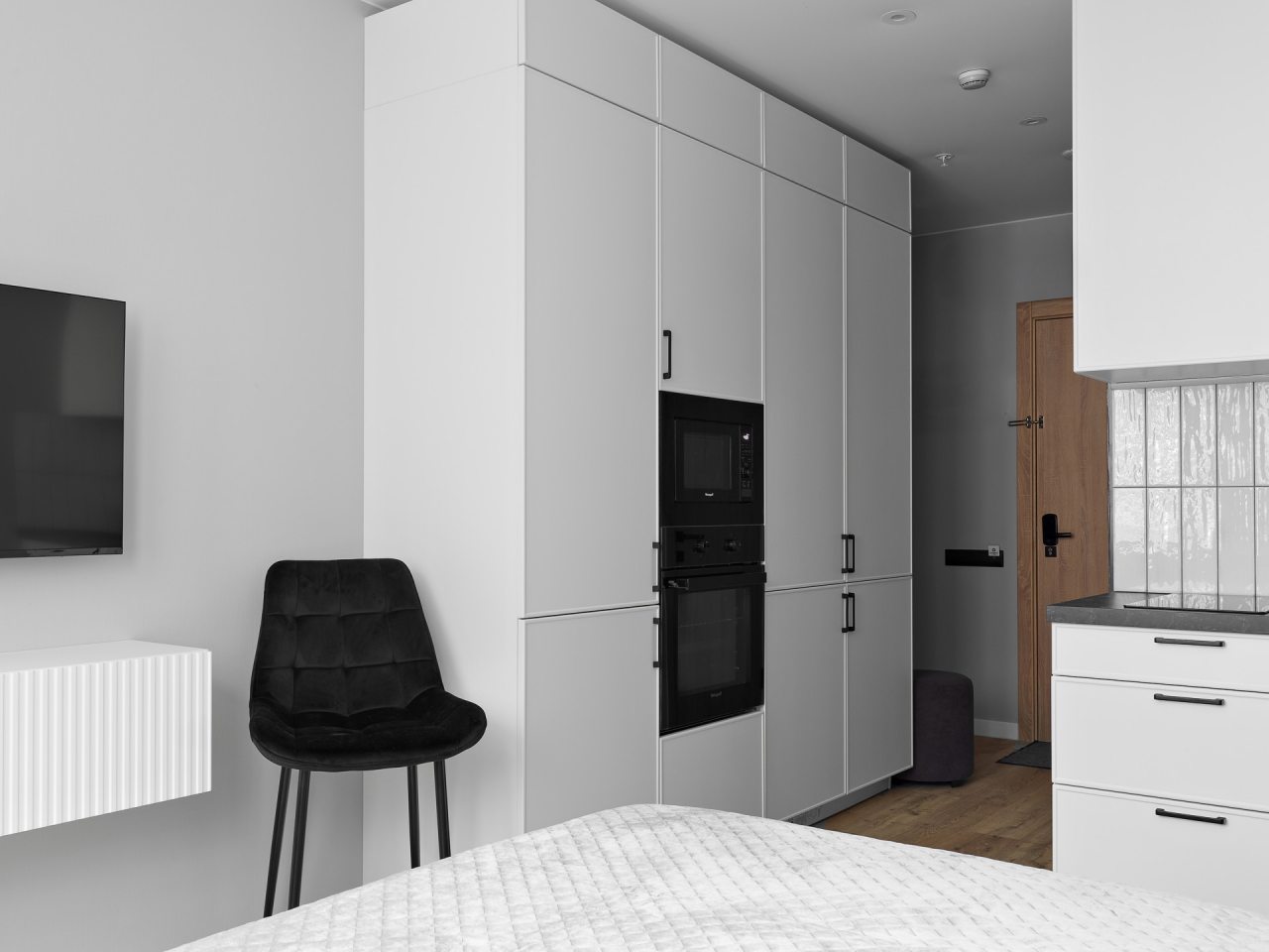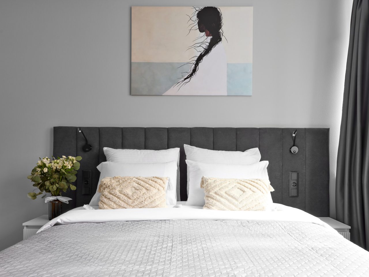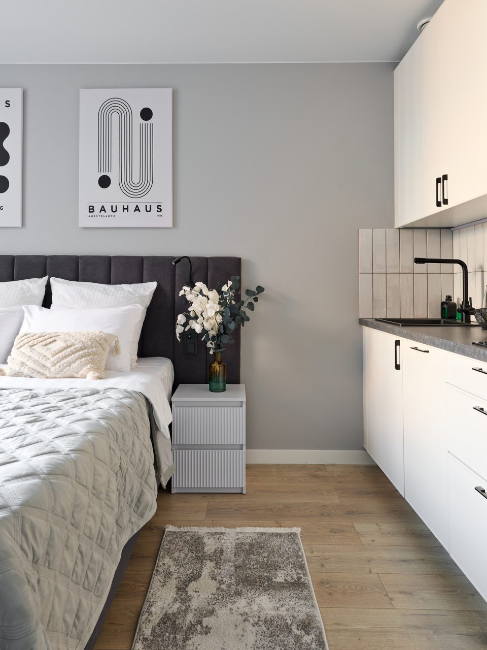 Внутри вас ожидает стильный дизайн, удобная двуспальная кровать с мягким изголовьем, затемнённые шторы, широкий подоконник, который может выступать рабочей и обеденной зоной, зеркало, сплит-система, ЖК-телевизор, а также санузел с необходимыми туалетно-косметическими средствами и стиральной машиной.