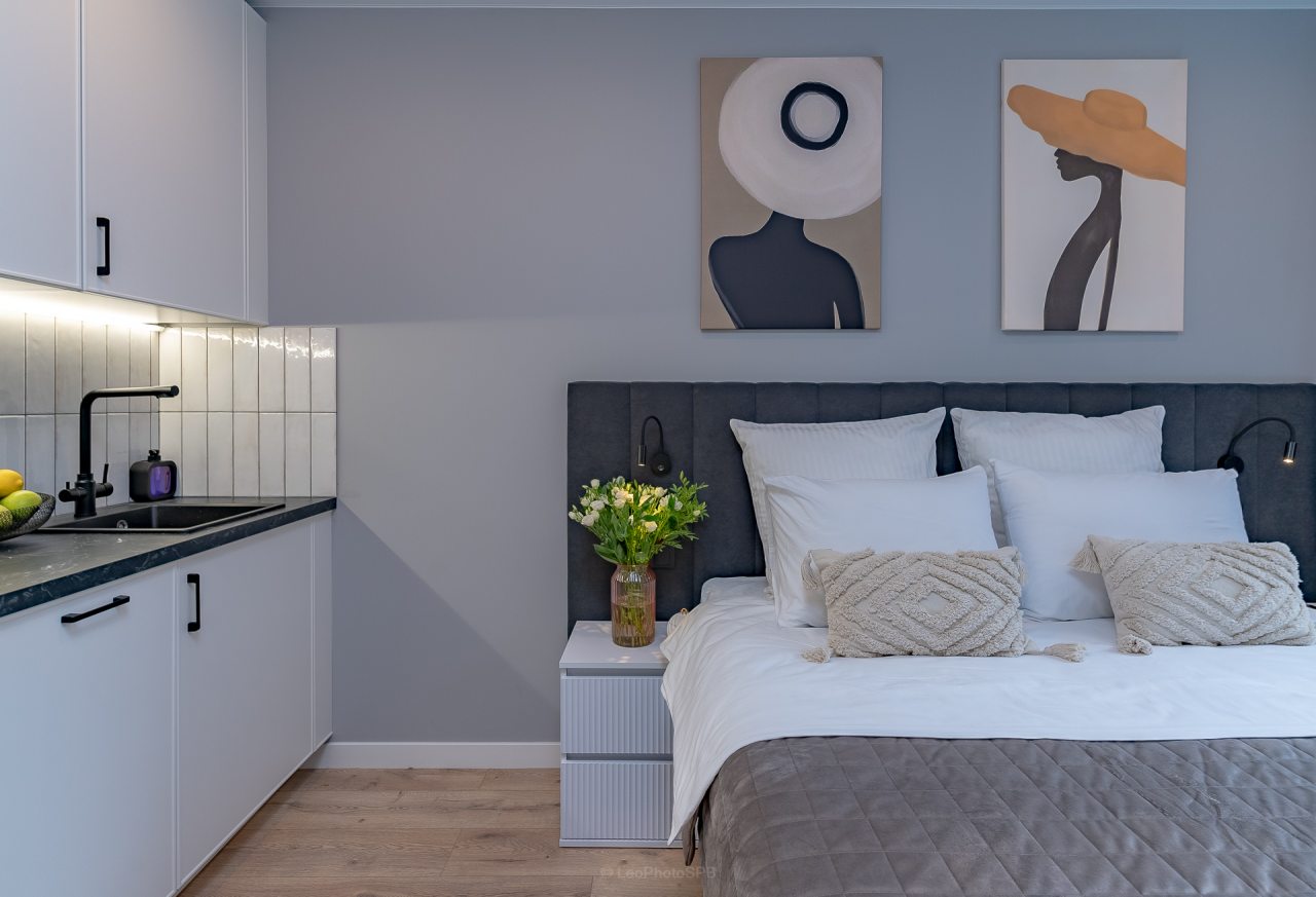 Современные апартаменты «Уютно и точка» территориально находятся в Санкт-Петербурге недалеко от реки Оккервиль.