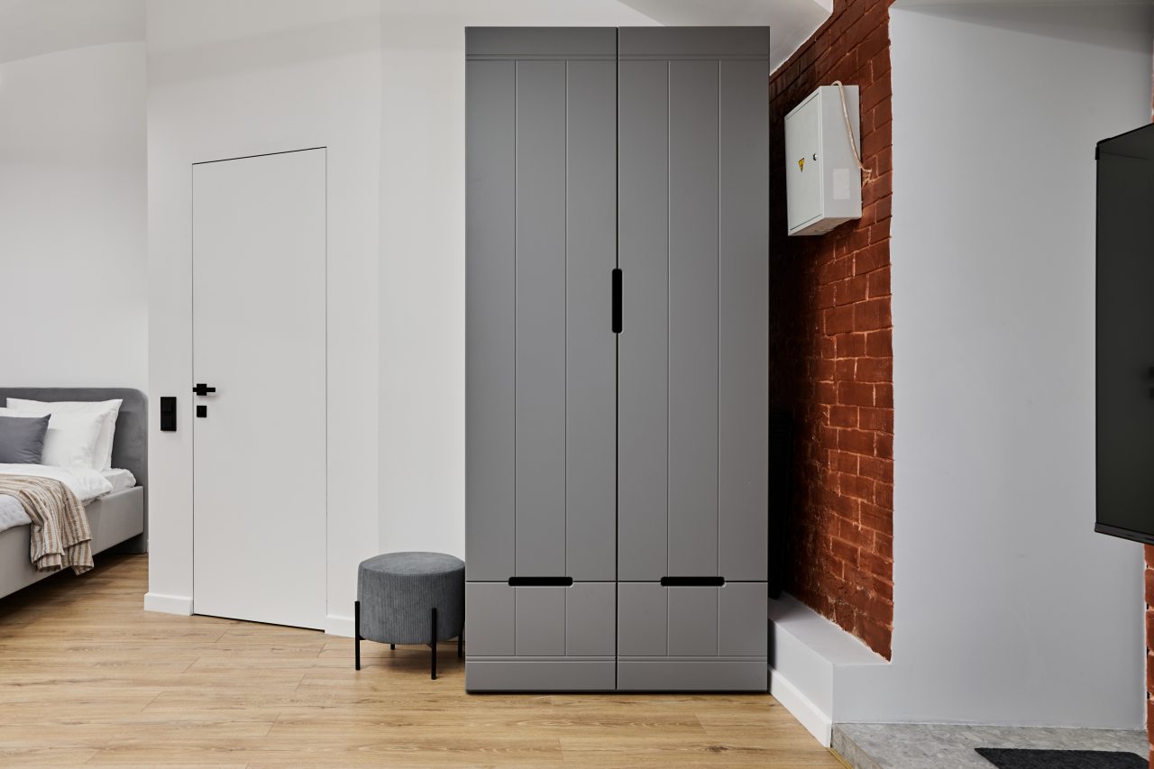 Внутри предусмотрены: большая и удобная двуспальная кровать, зеркало в полный рост, мягкий и удобный диван, ЖК-телевизор, различные сценарии освещения, вместительный шкаф, санузел с душевой и стиральной машиной.