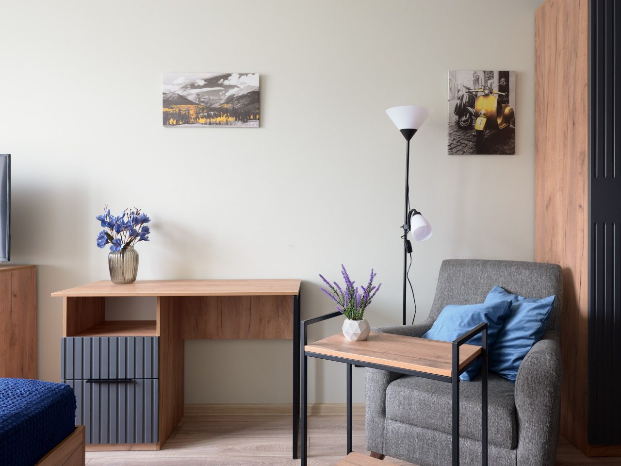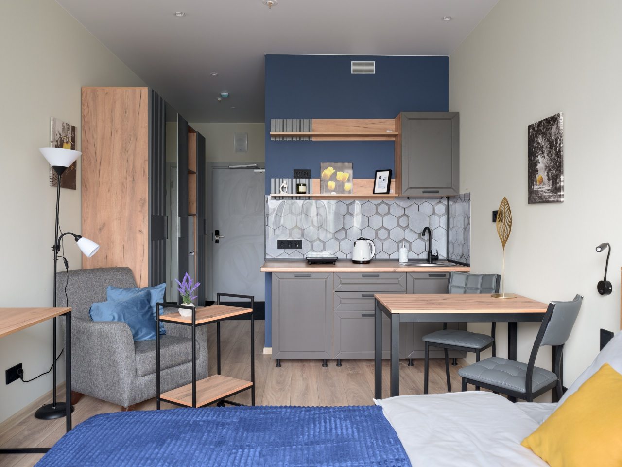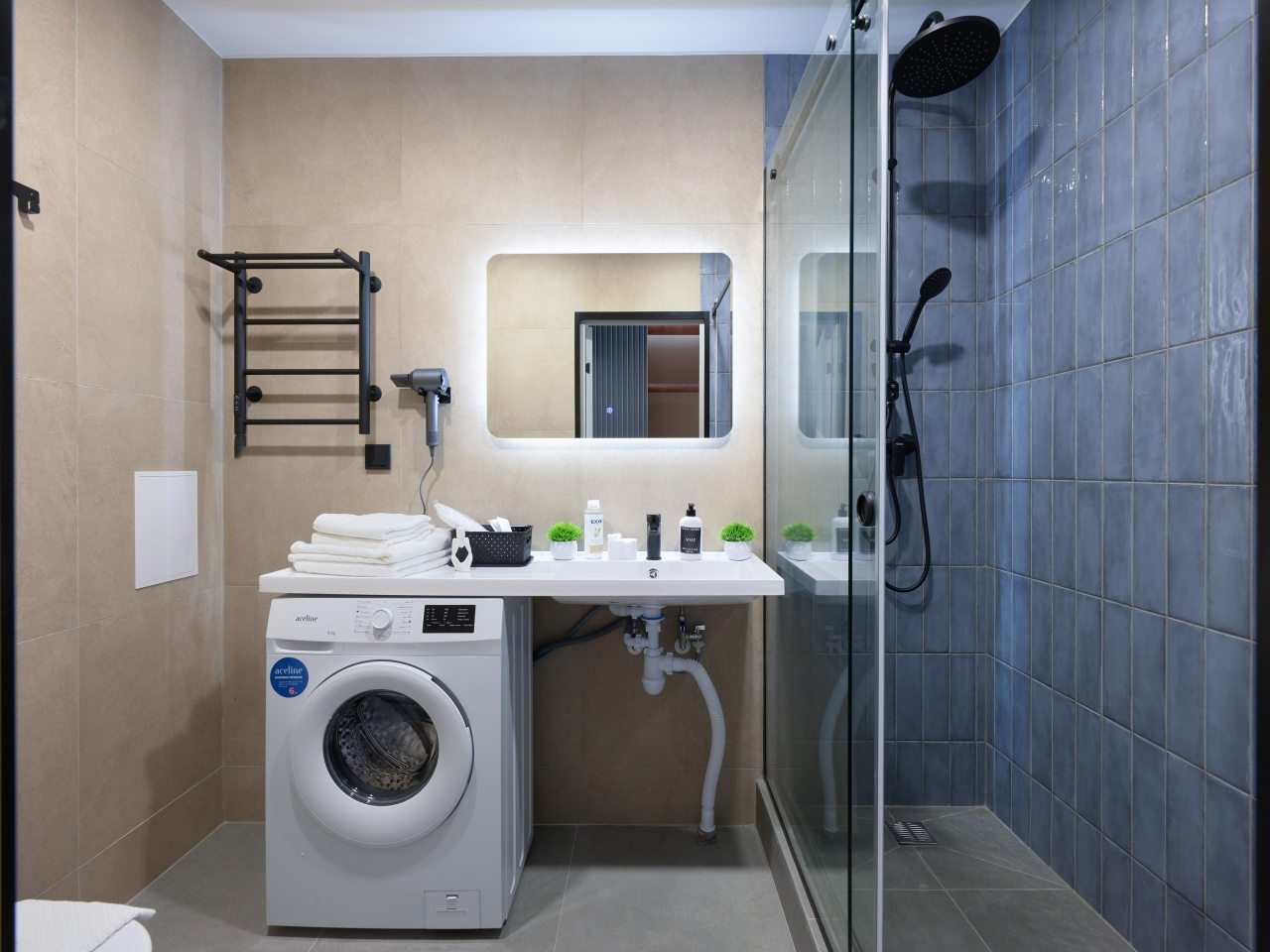 Современные апартаменты с ремонтом в приятных цветах подготовлены для пребывания гостей и укомплектованы качественной мебелью, техникой и собственной ванной комнатой с необходимым набором сантехники.