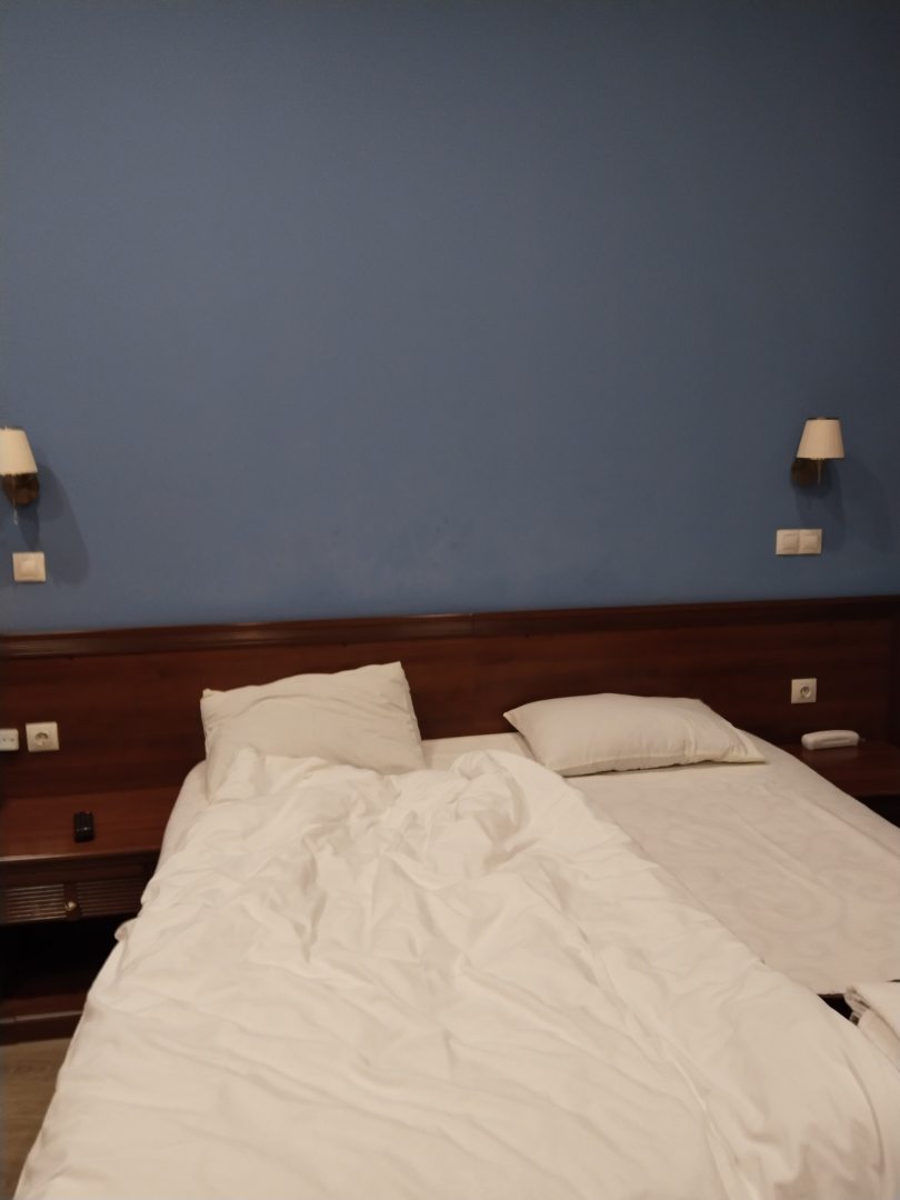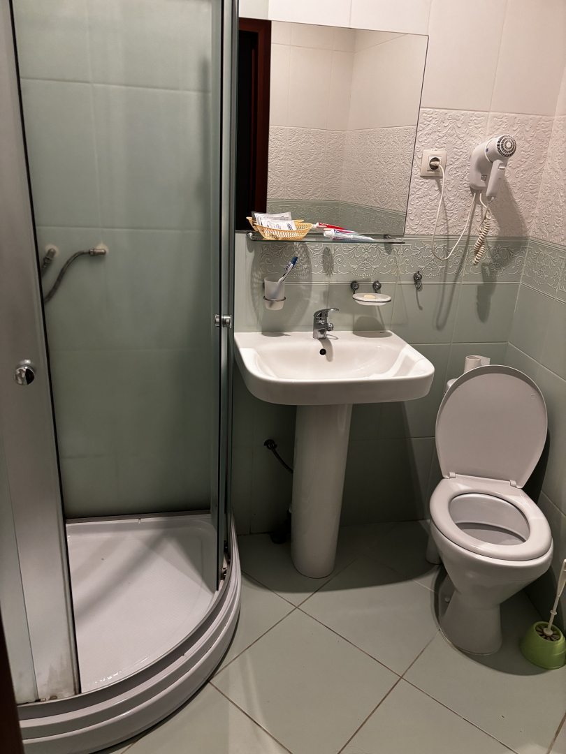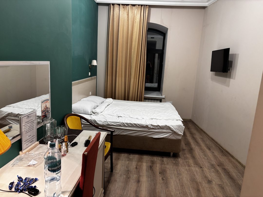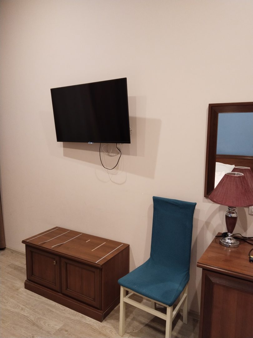 Из недостатков: в номере требуется косметический ремонт. У нас бегала мышь и лакомилась в мусорке. Спинка кровати, торшеры, телевизор в пыли.