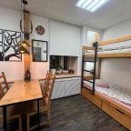 Номера предлагаются различные по вместимости. В каждом — удобная кровать, прикроватные лампы и тумбы, полотенца. Общий санузел укомплектован стандартным набором сантехники. Дополнительно предусмотрена стиральная машина.
