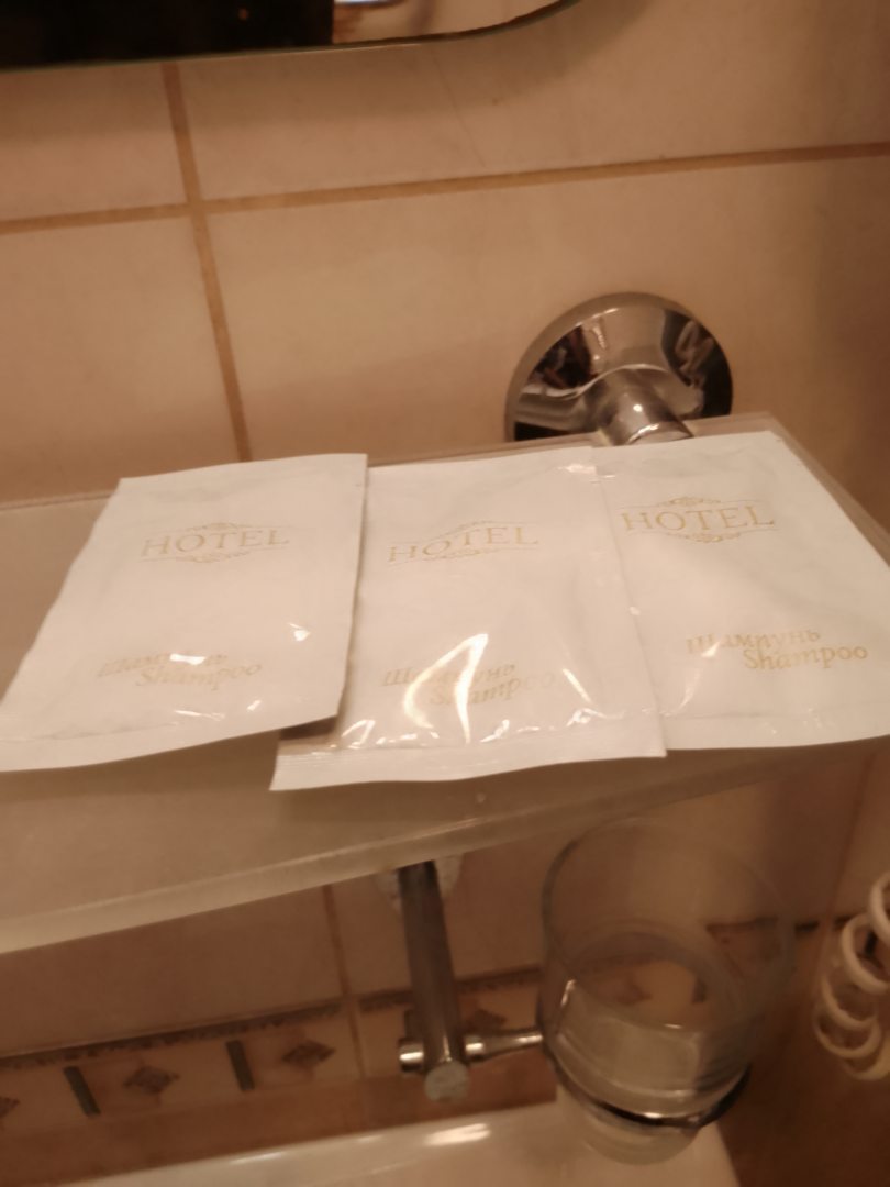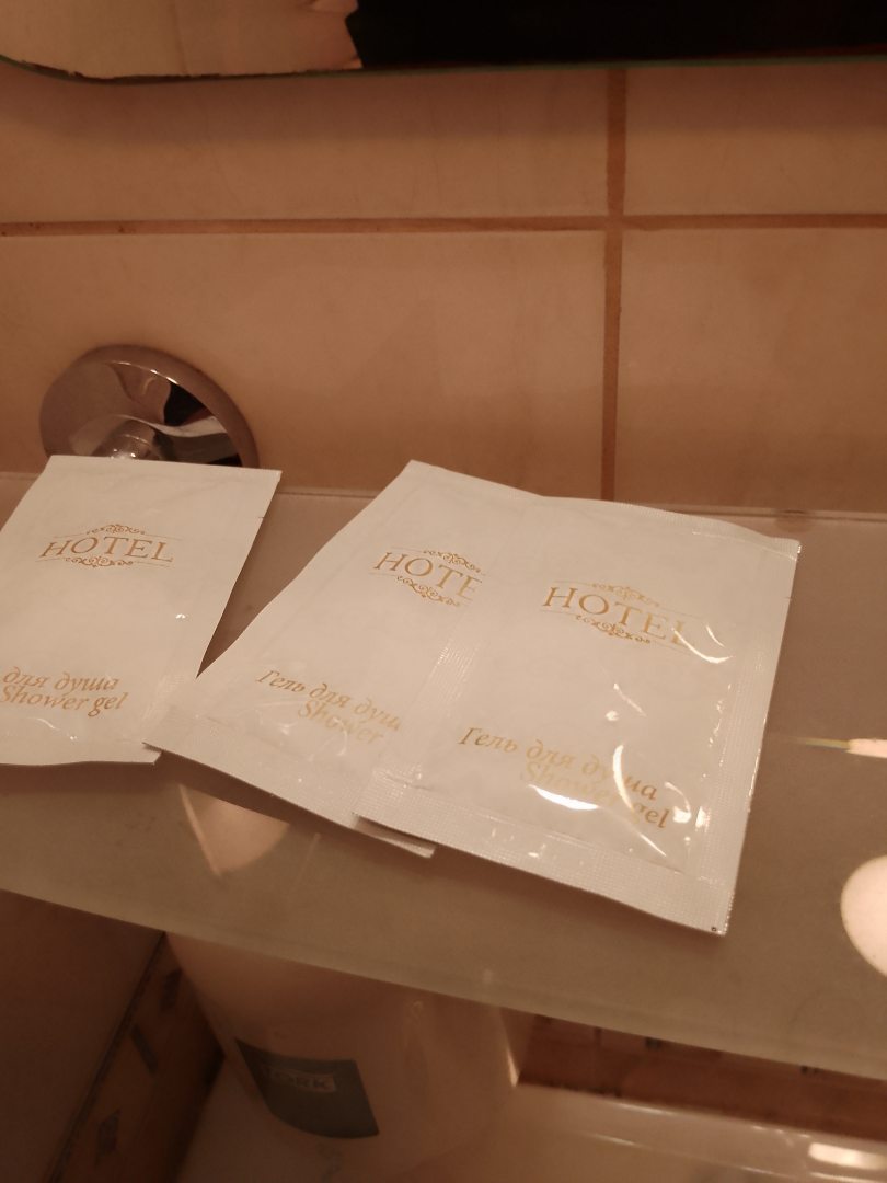 Из недостатков: в номере, конечно, не идеальная чистота. Телевизор был в пыли. Пришлось самой протирать. Можно было еще и стены помыть. Но, в общем, все устроило. Приходили только переночевать и помыться.