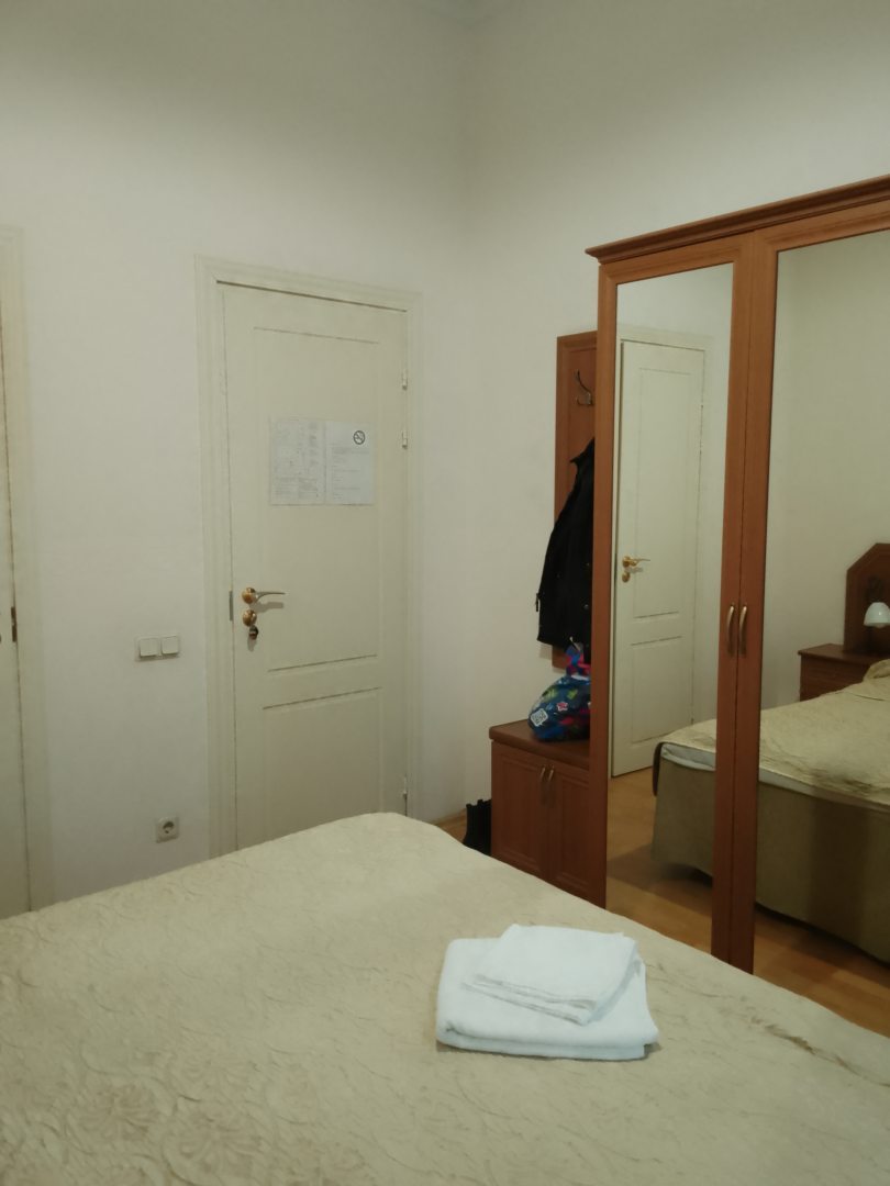 Близко к Невскому проспекту, Московскому вокзалу. 20 минут ходьбы до Михайловского замка, Летнего сада, Чижика-пыжика, Марсово поля. В номере есть полотенца, телевизор, обогреватель. Матрасы очень удобные (прижинные). Постельное белье 100 хлопок (приятное к телу). Вид из окна на улицу. Двухместный номер эконом за шикарную цену 2500 руб. за ночь на двоих в центре города в праздничные дни с 01 по 04 мая. На кухне кулер с горячей и холодной водой. Есть посуда, чайник, микроволновка, холодильник Предлагается пакетированный чай, кофе растворимый в банке, сахар бесплатно. Пожалуйста пользуйтесь.